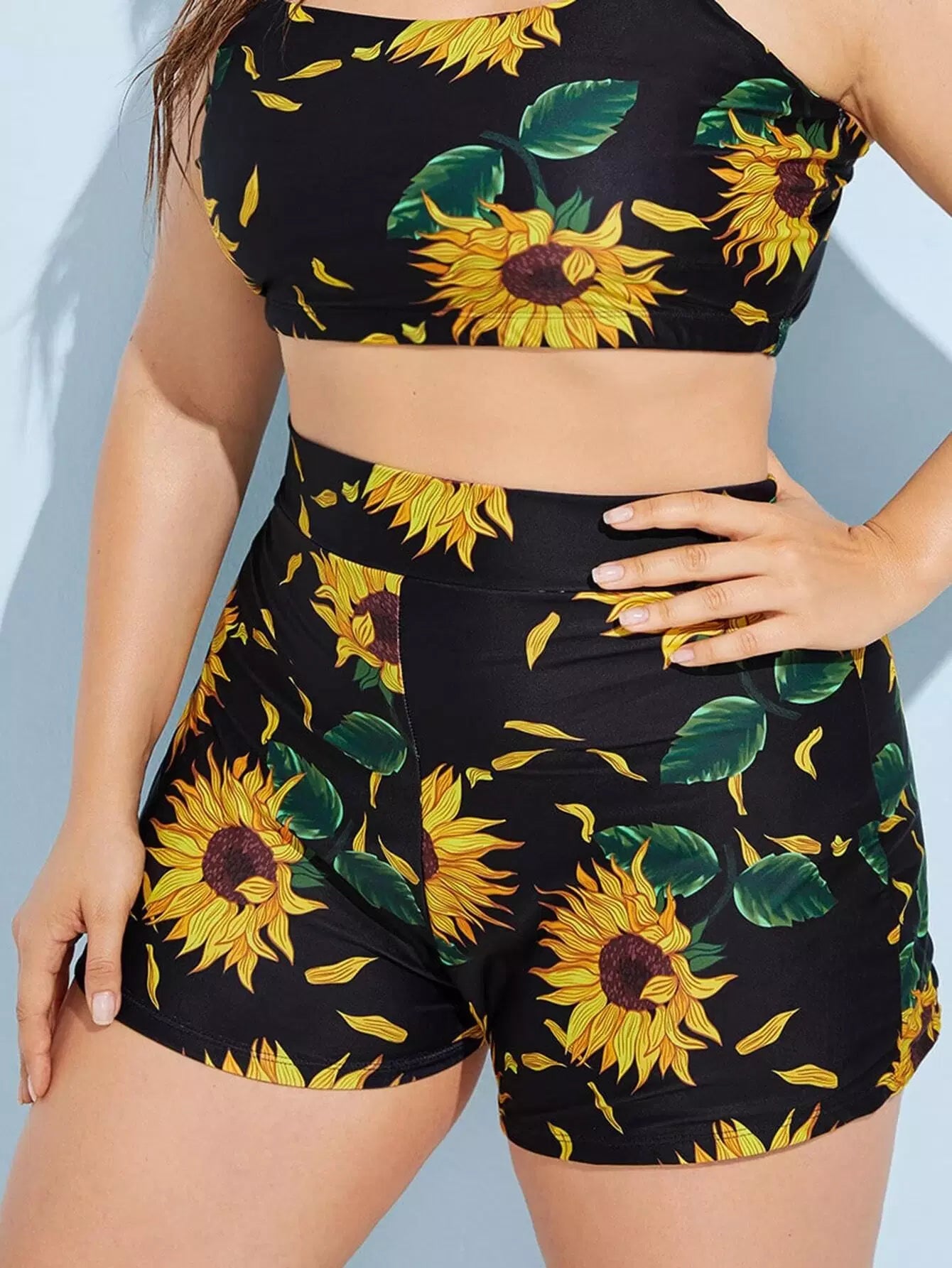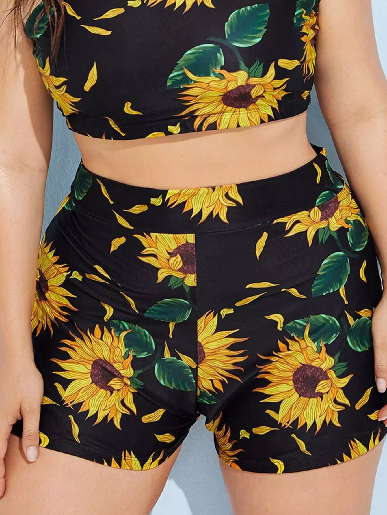 Plus Sunflower Pattern Bikini Shorts