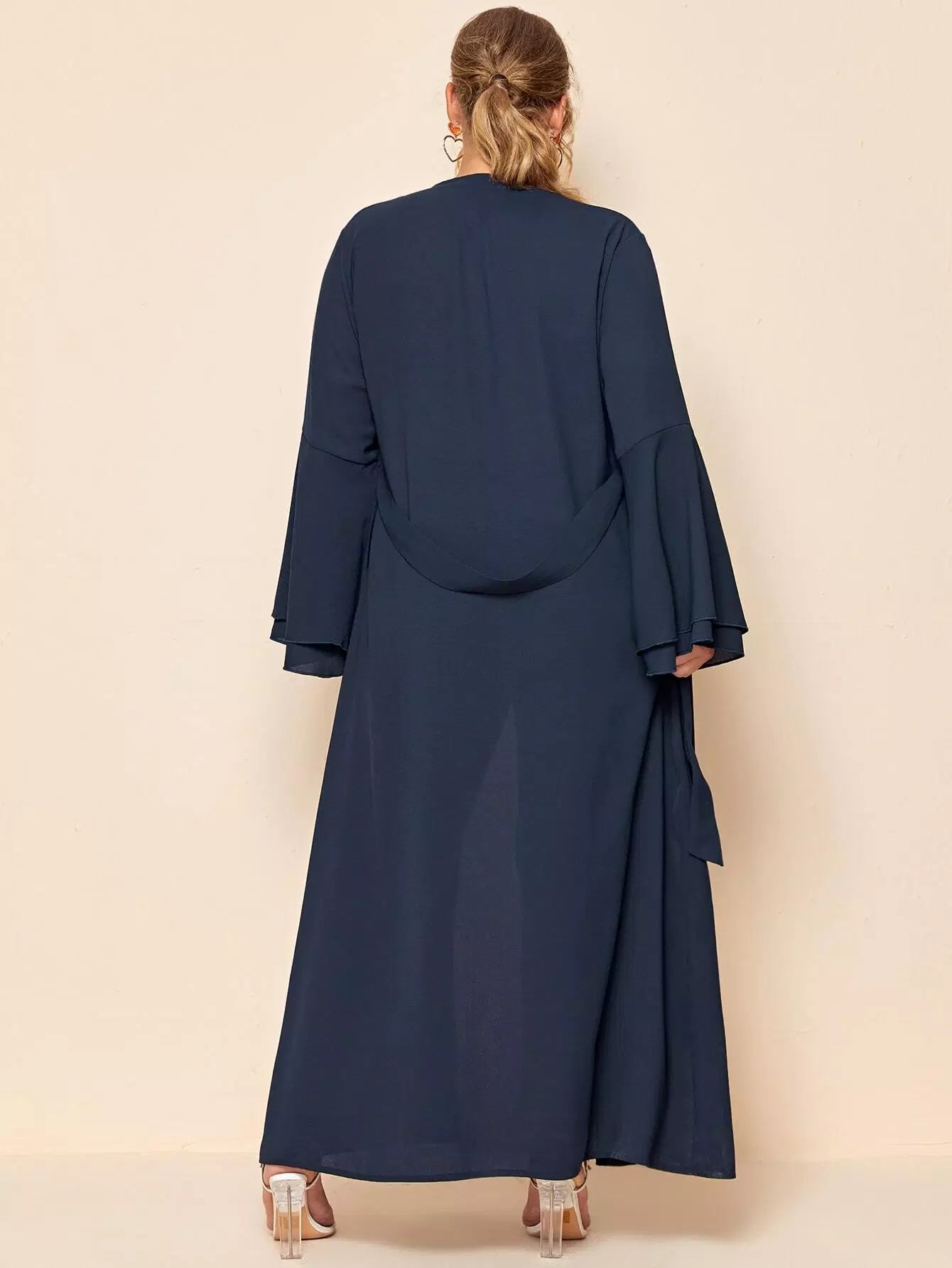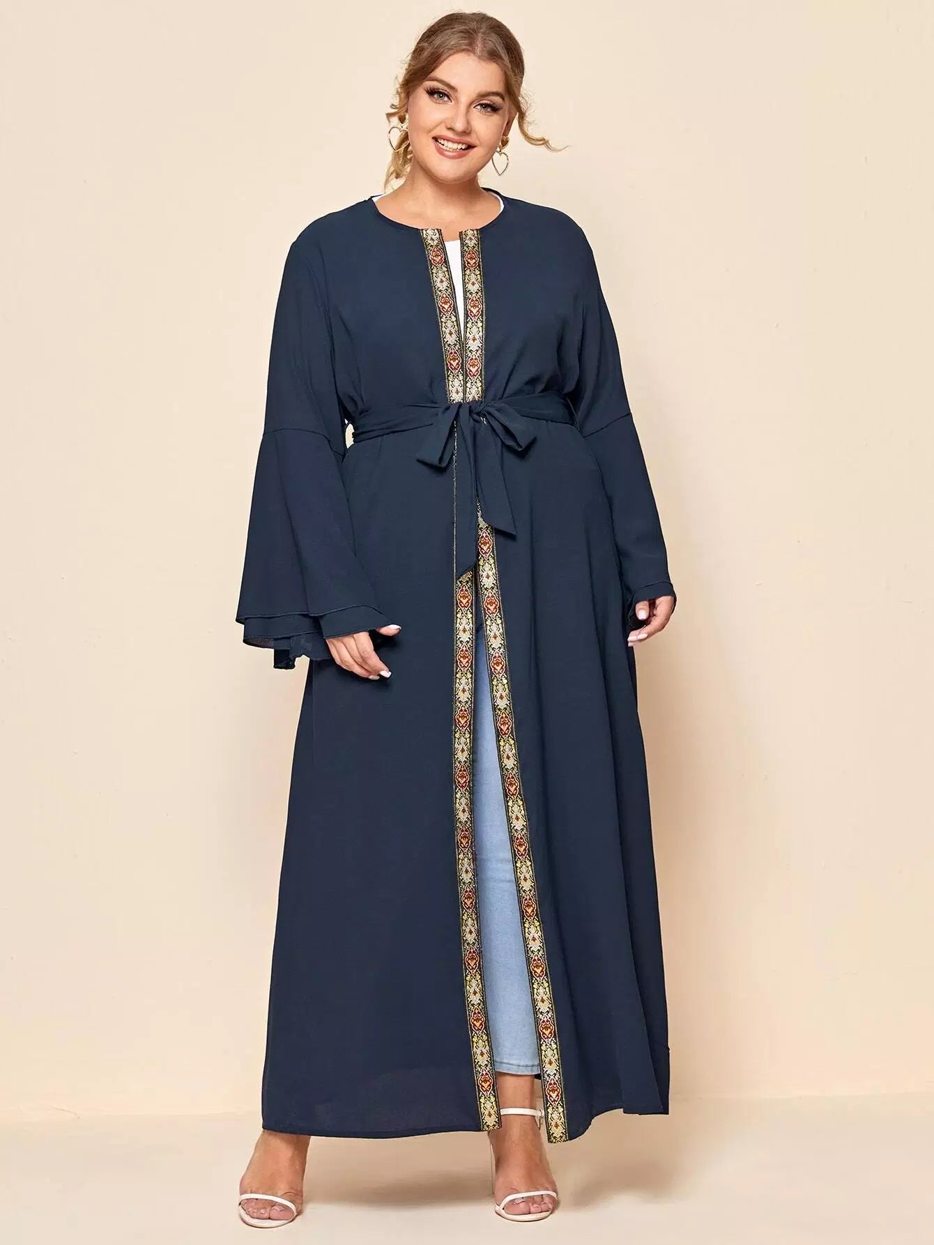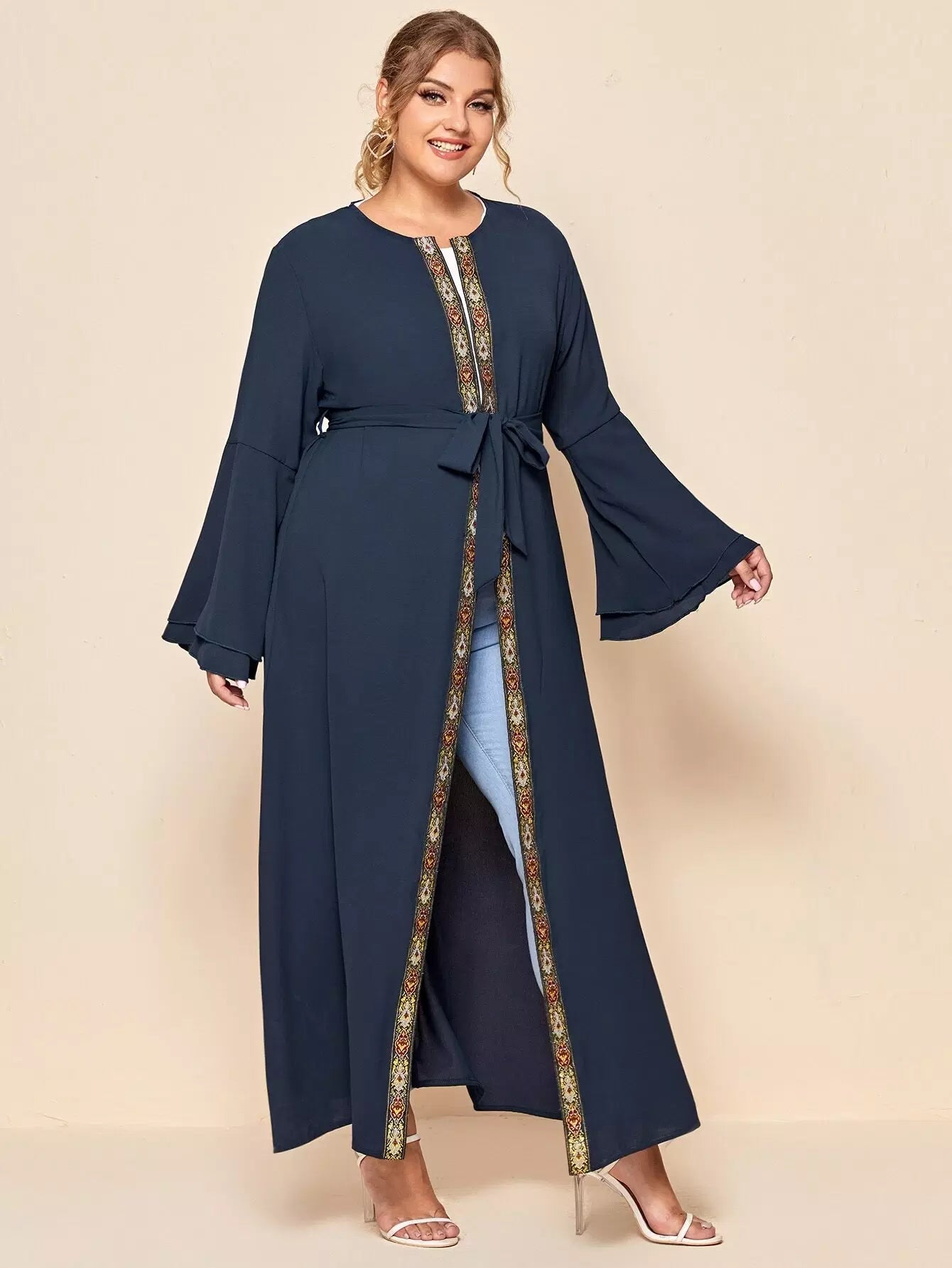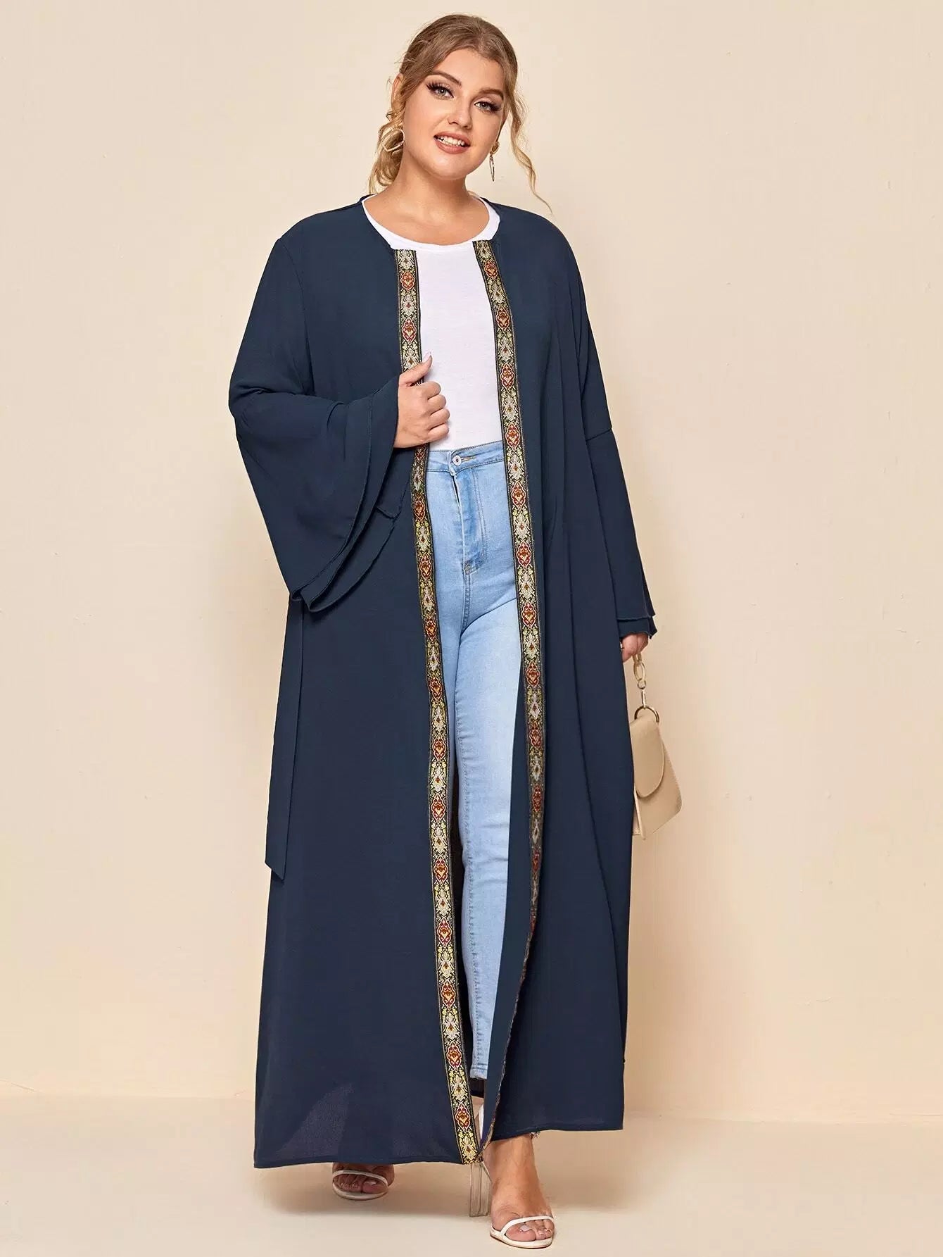 Plus Contrast Tape Layered Flounce Sleeve Kimono Without Belt