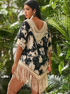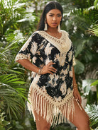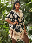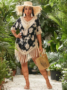 Plus Floral Print Contrast Crochet Cover Up