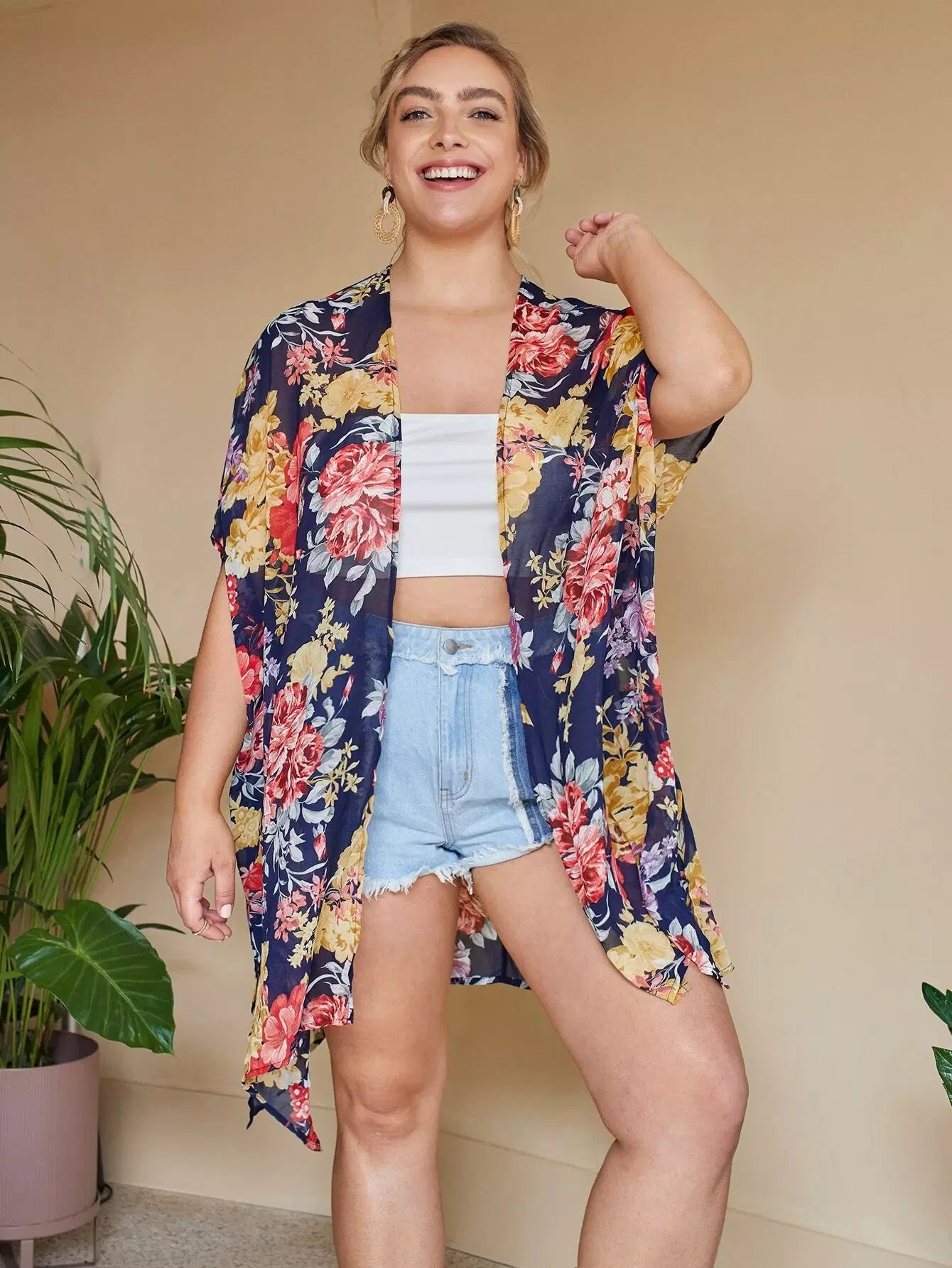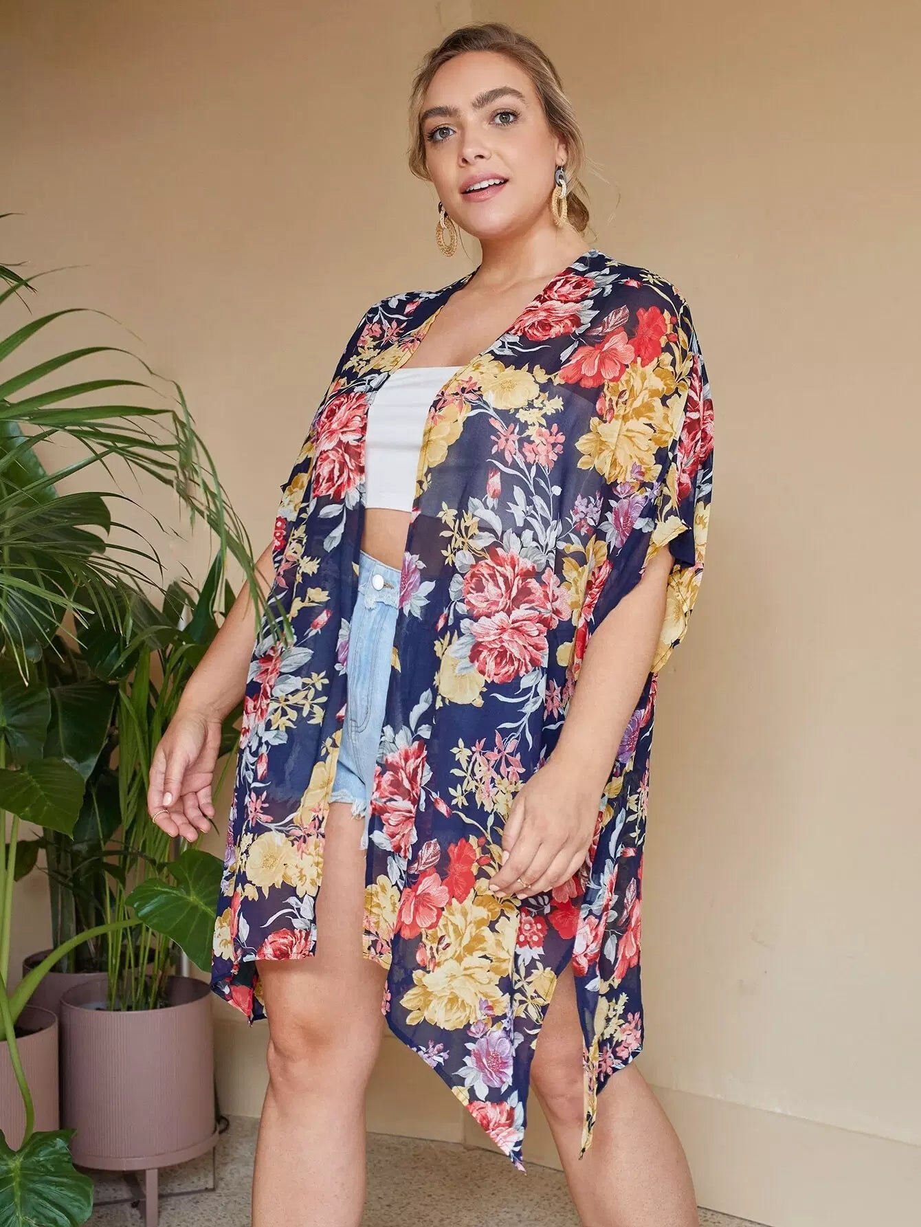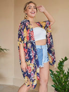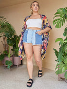 Plus Split Side Floral Print Kimono