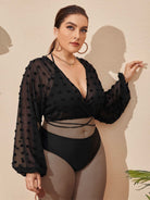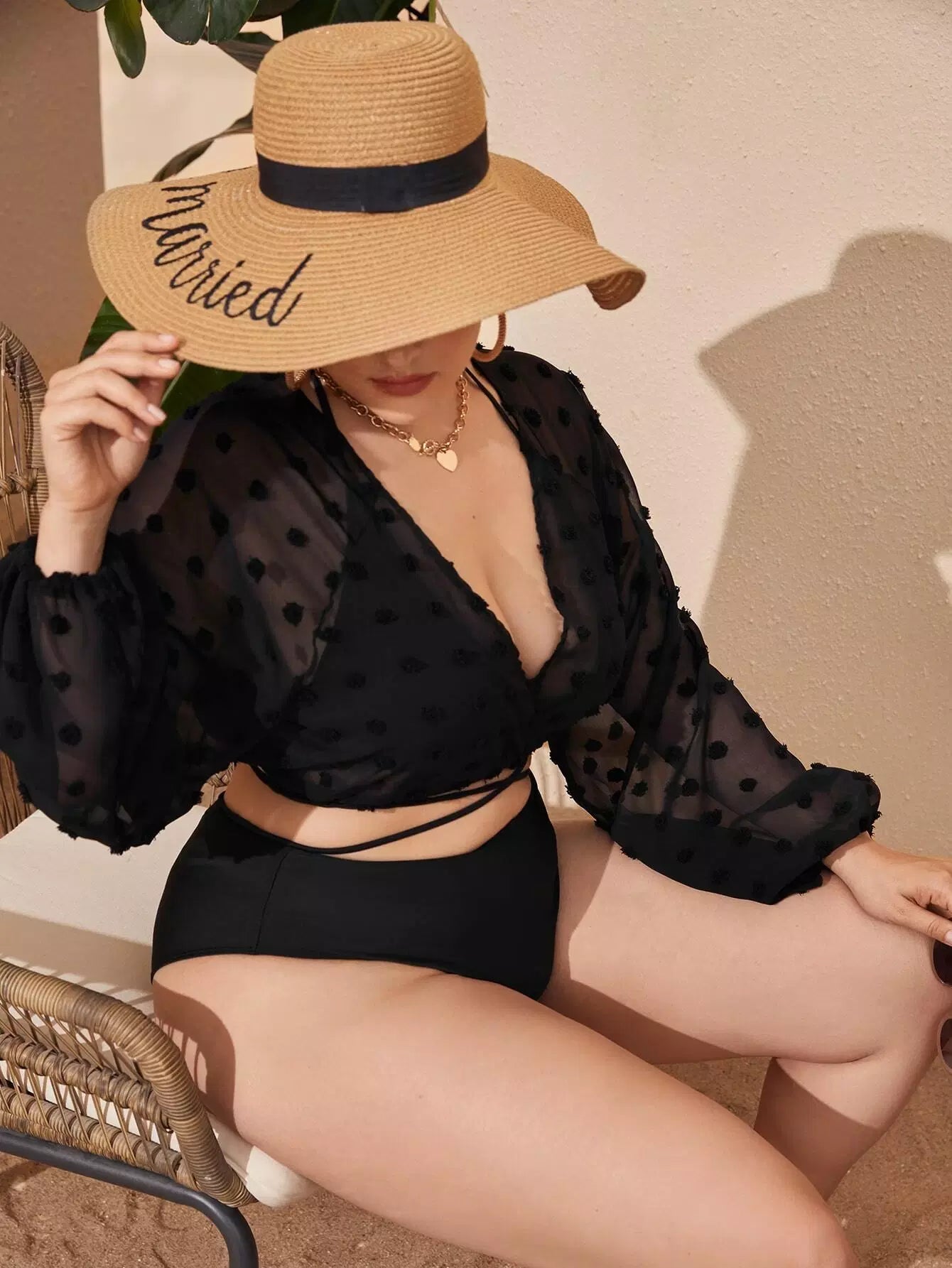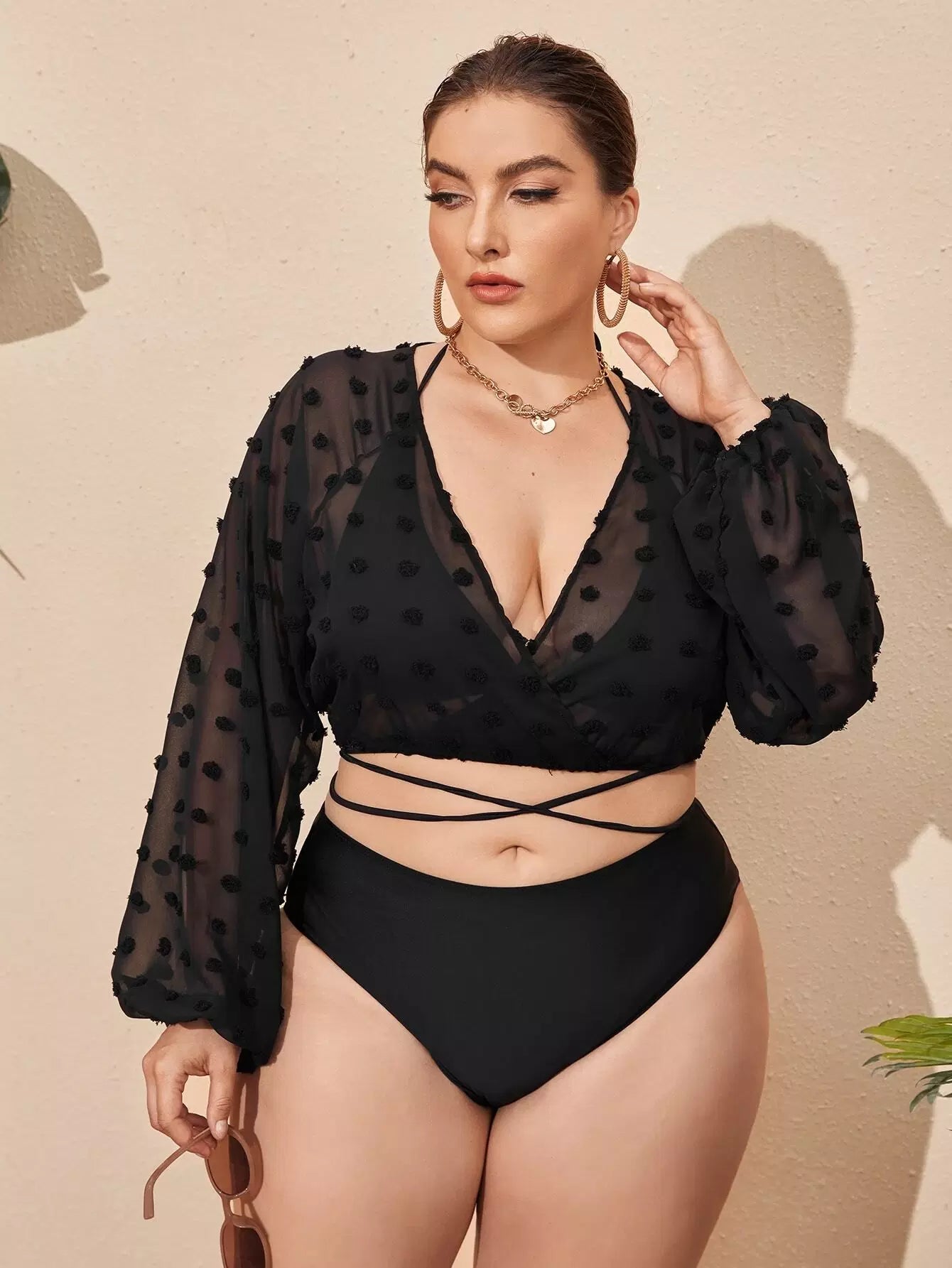 3pack Plus Halter Bikini Swimsuit & Swiss Dot Mesh Top
