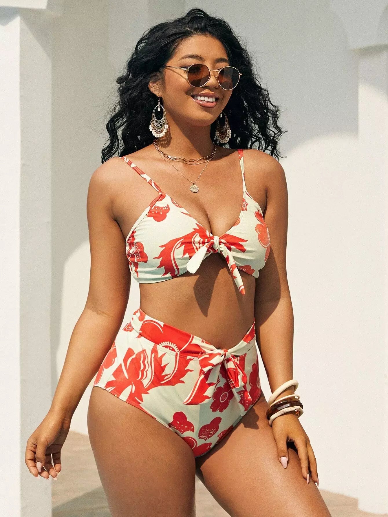 Plus Floral Knot Bikini Swimsuit