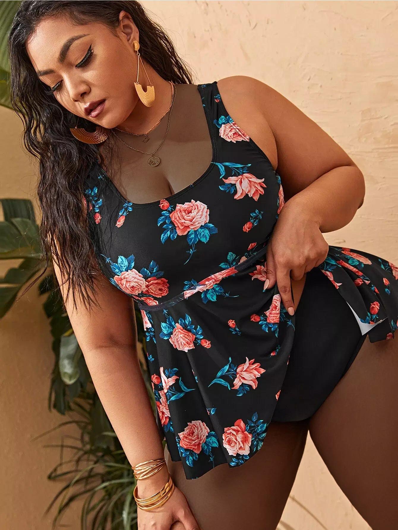 Plus Floral Ruffle Hem Bikini Swimsuit