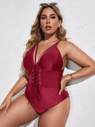 Plus Lace-up Harness One Piece Swimsuit