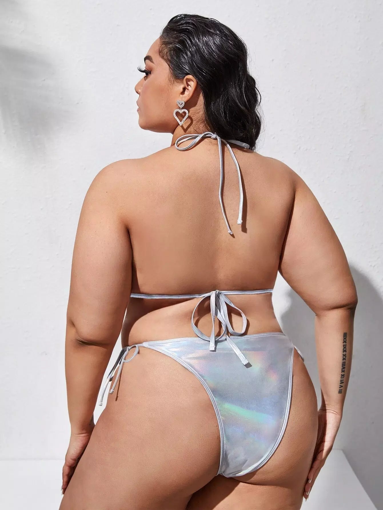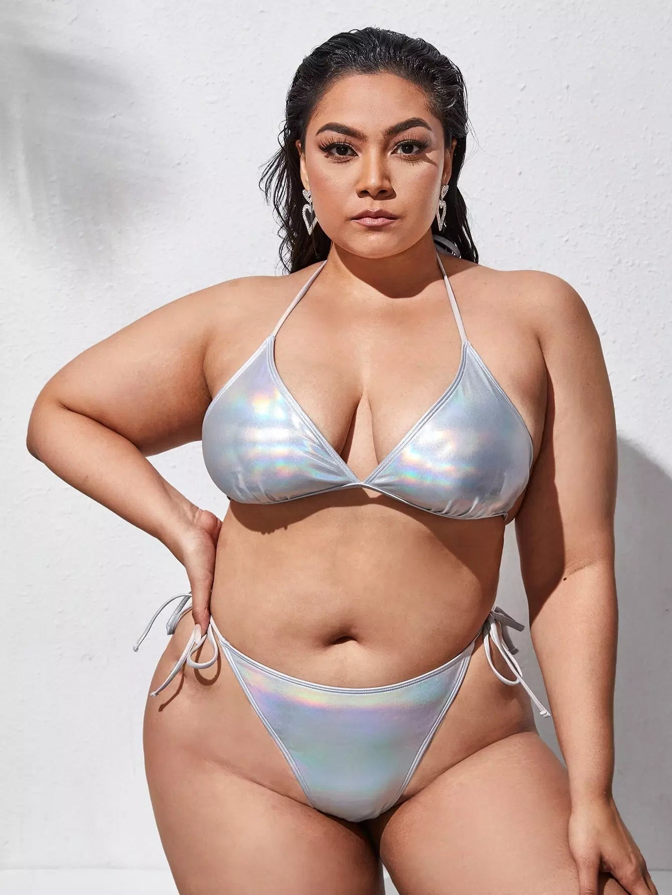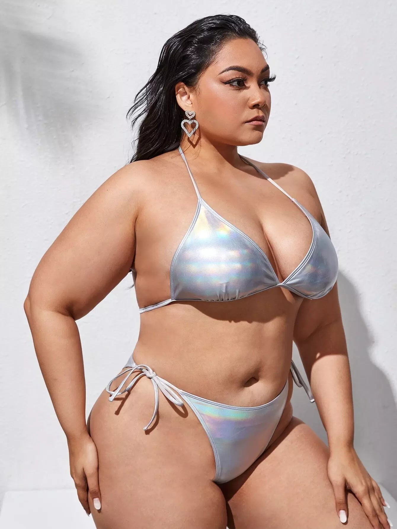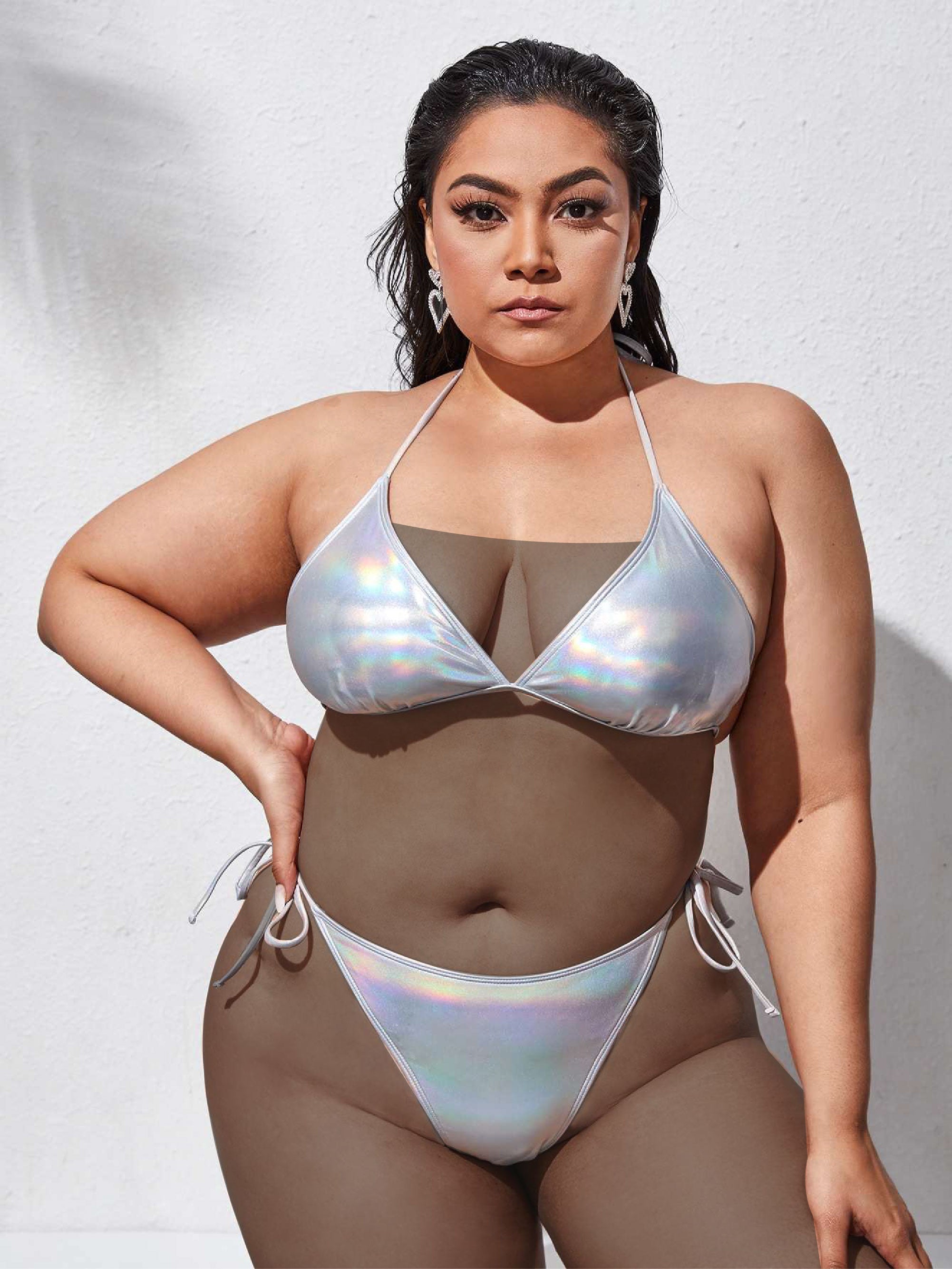 Plus Metallic Triangle Tie Side Bikini Swimsuit