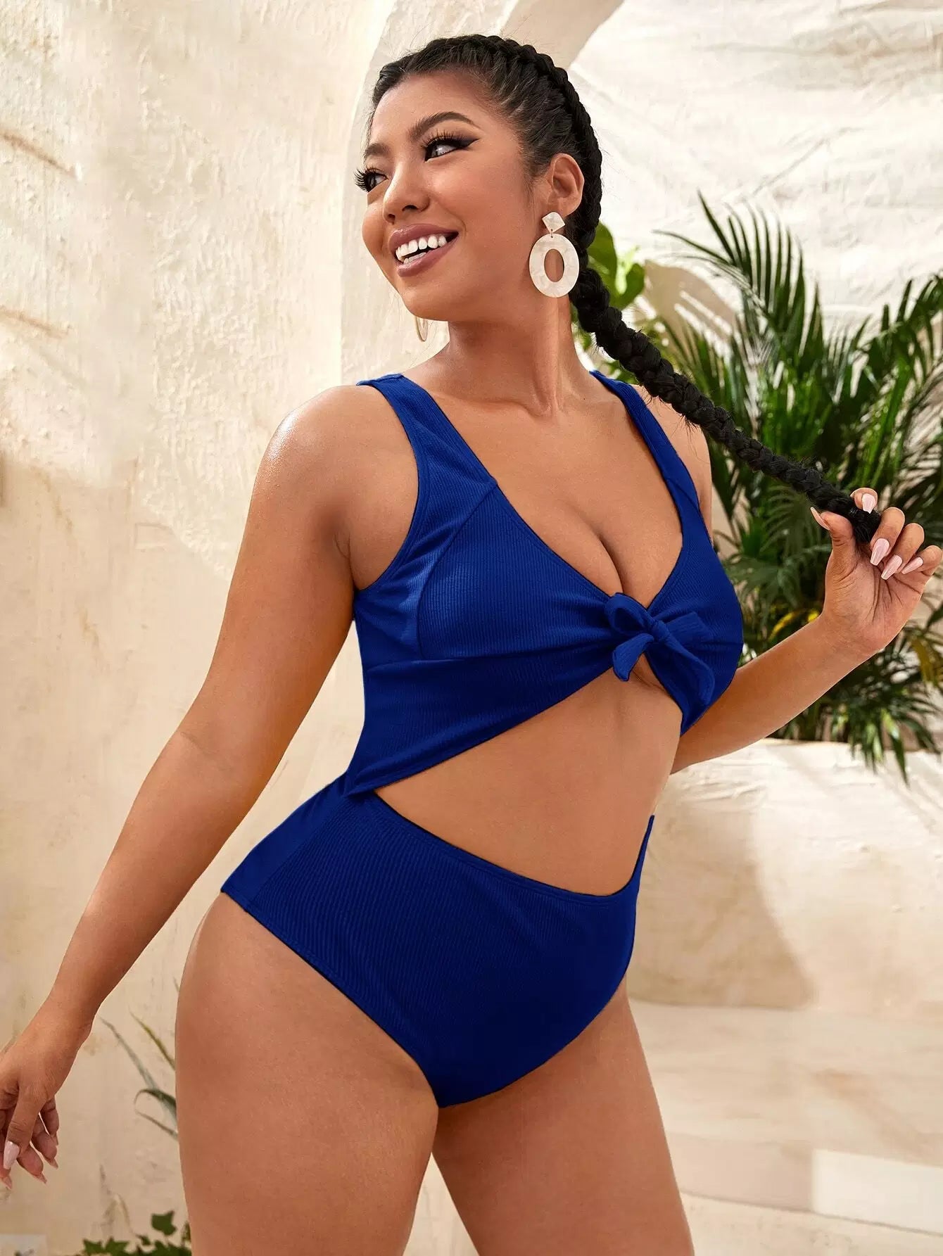 Plus Rib Knot Front One Piece Swimsuit