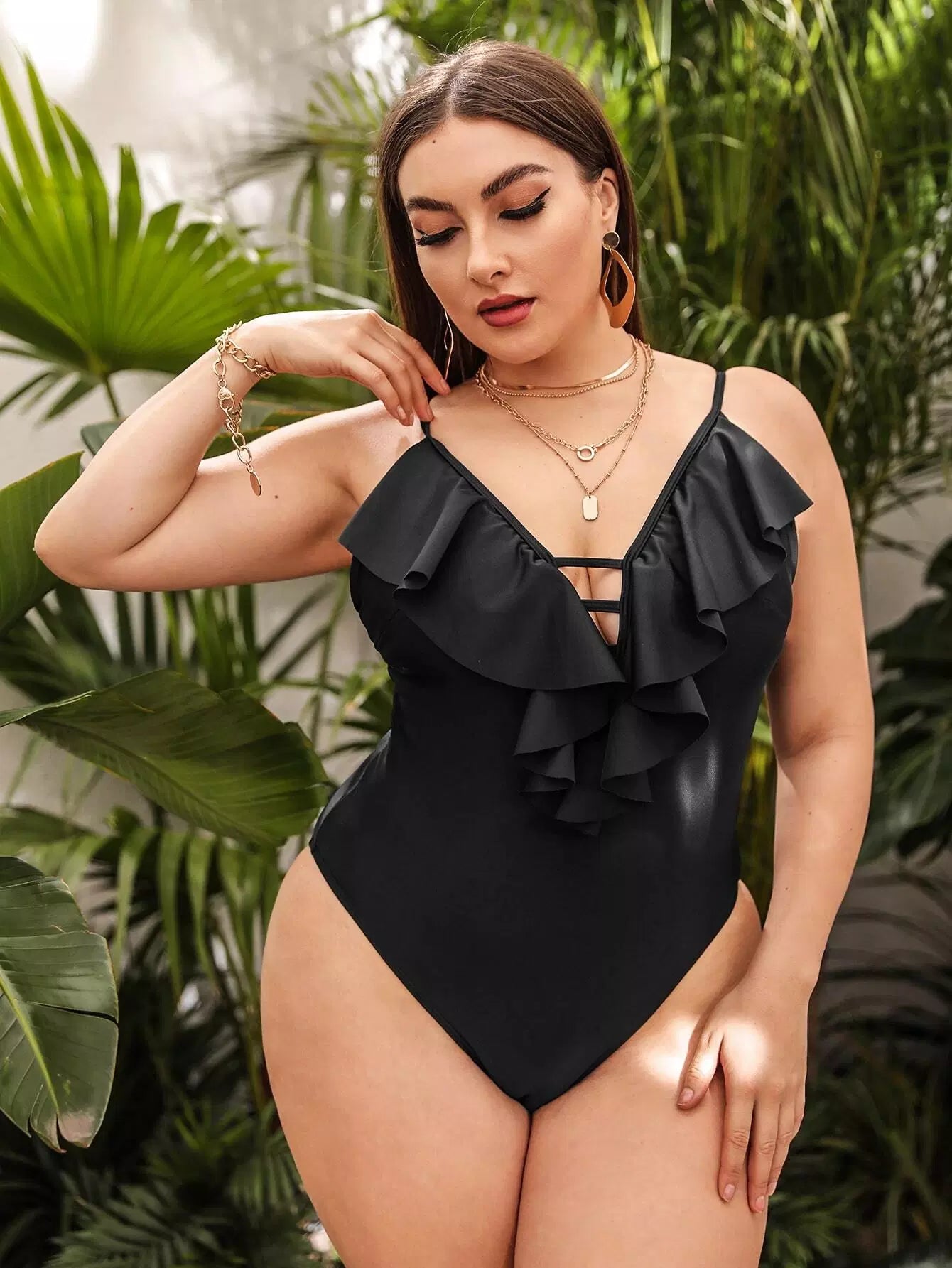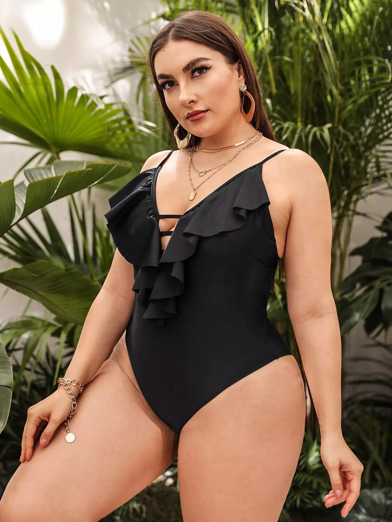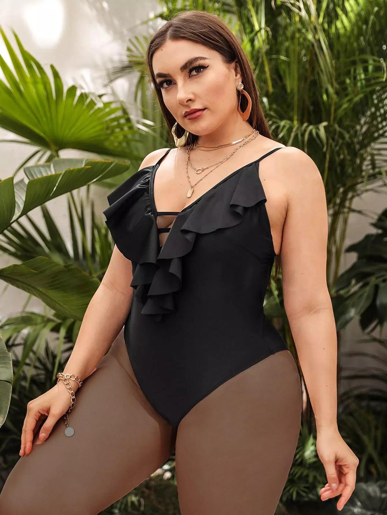 Plus Ruffle Plunging One Piece Swimsuit