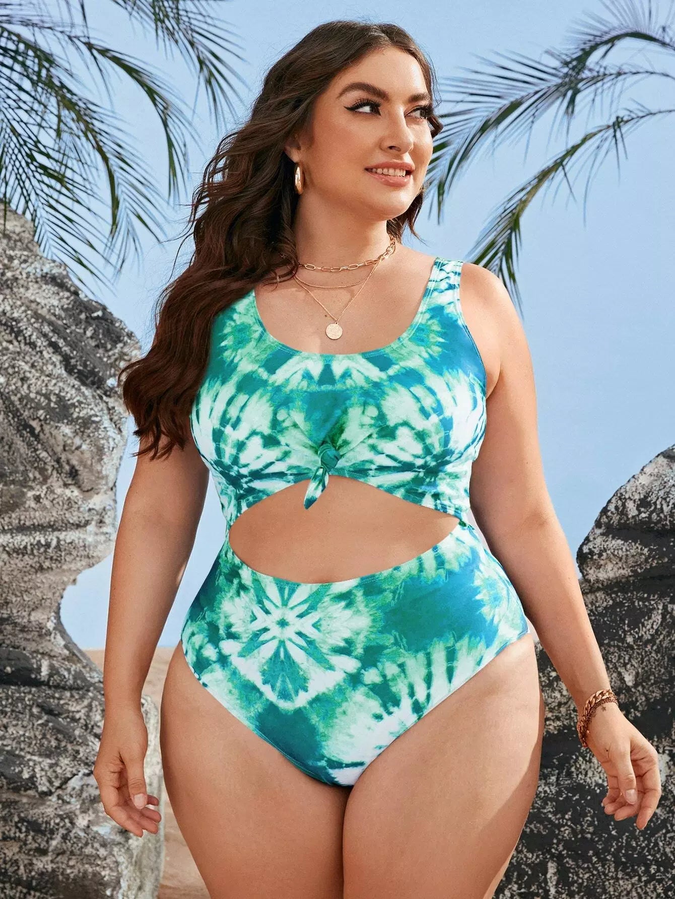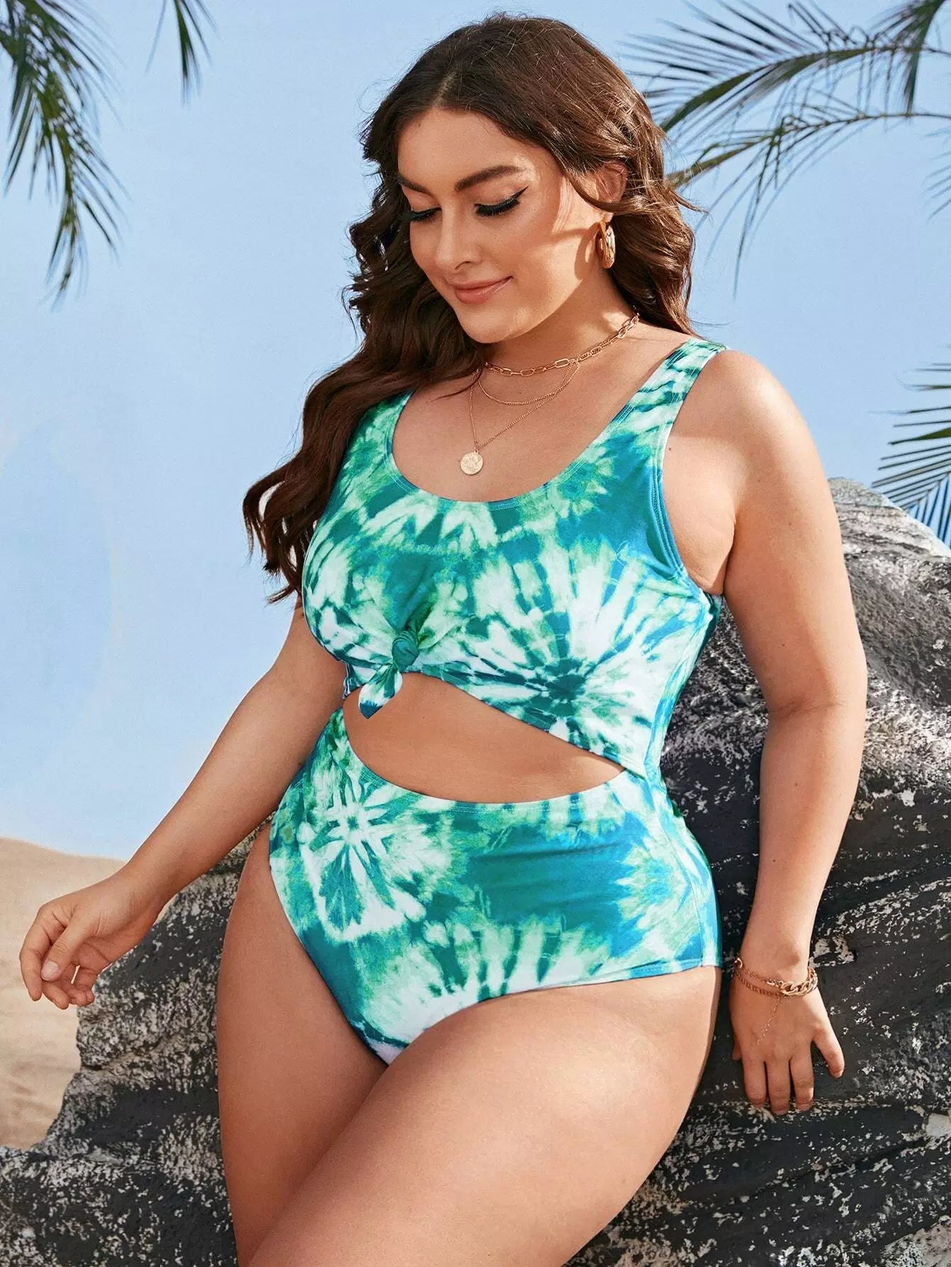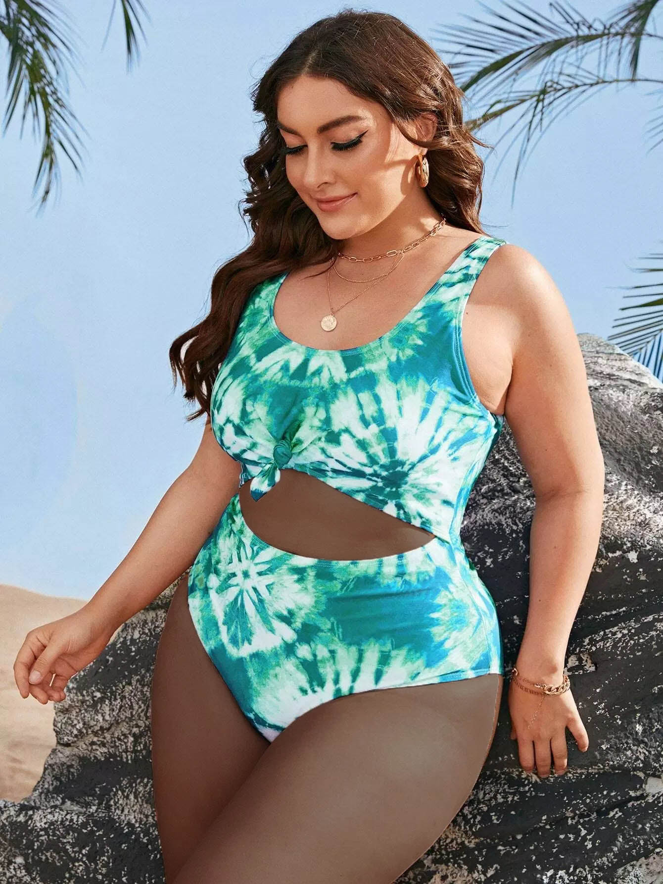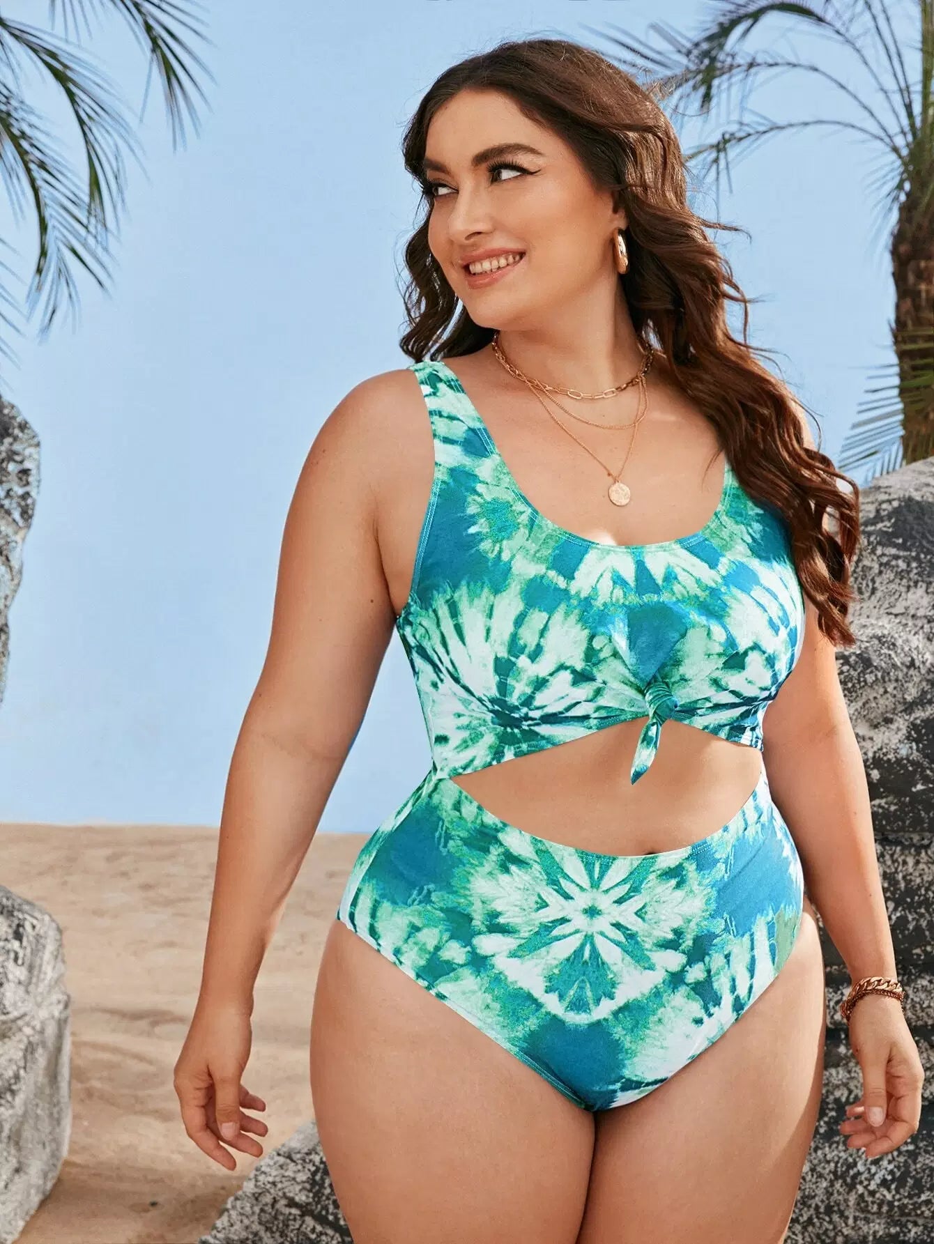 Plus Tie Dye Knot Front One Piece Swimsuit