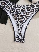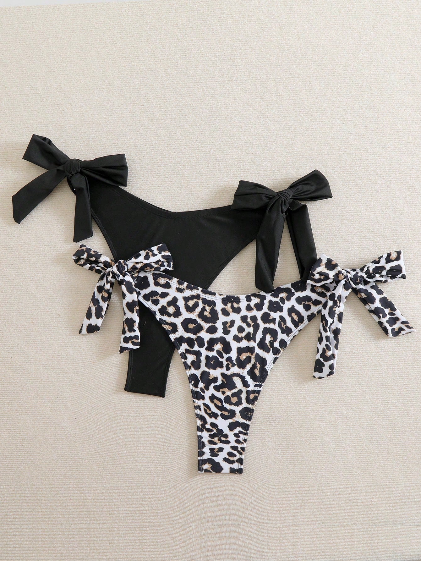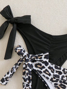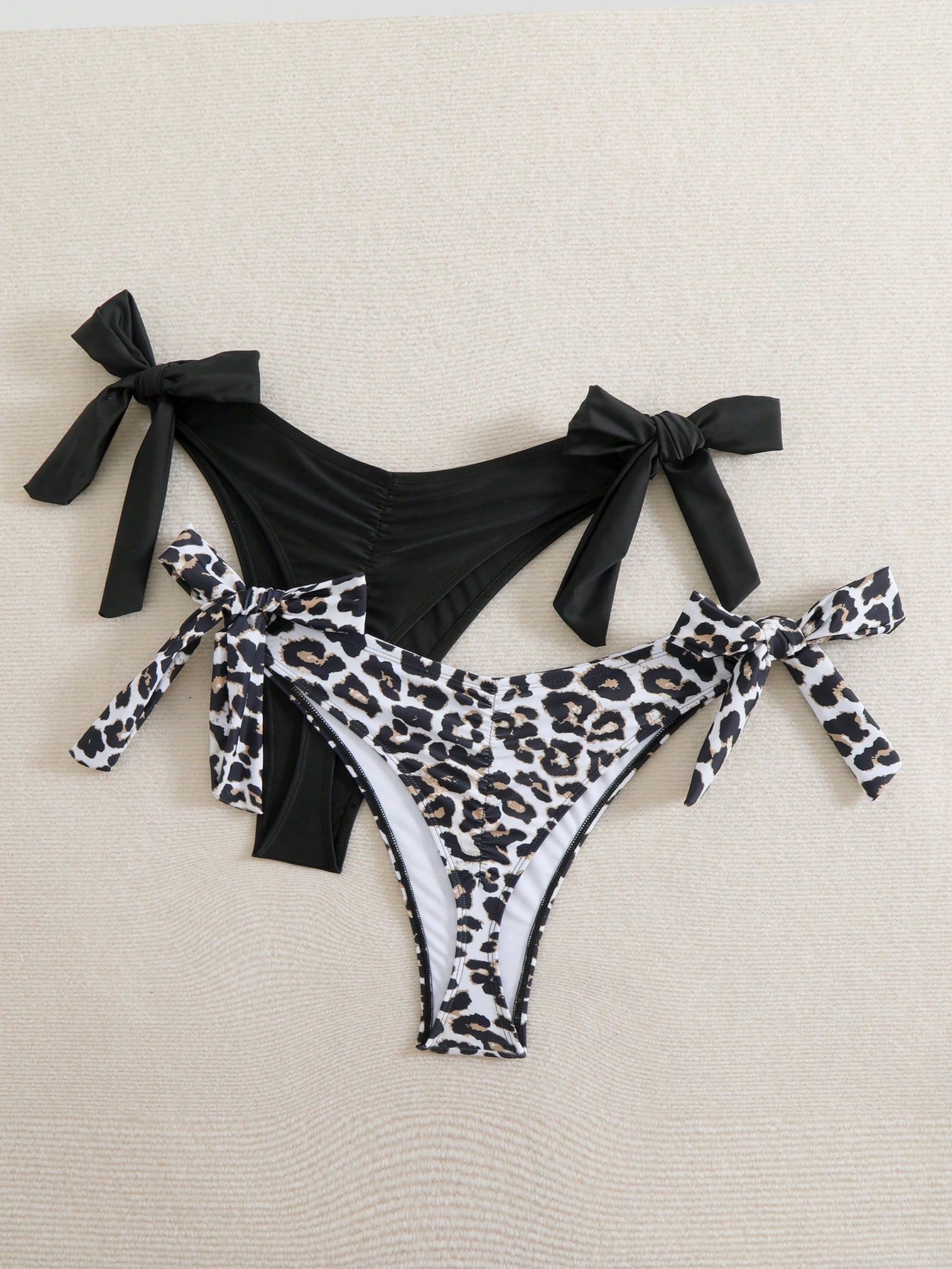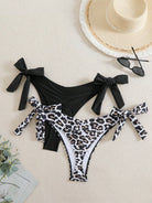 Swim Curve 2pcs/Set Plus Size Women Black & Leopard Print Ruffled Tie-Side Bikini Bottom Summer