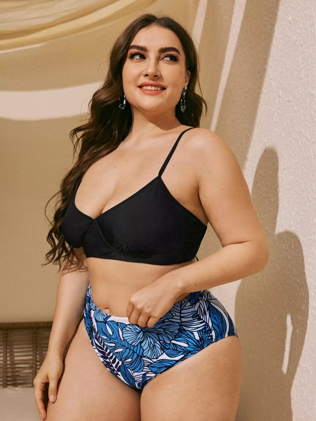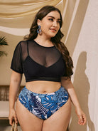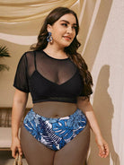 3pack Plus Tropical Bikini Swimsuit & Mesh Cover Up