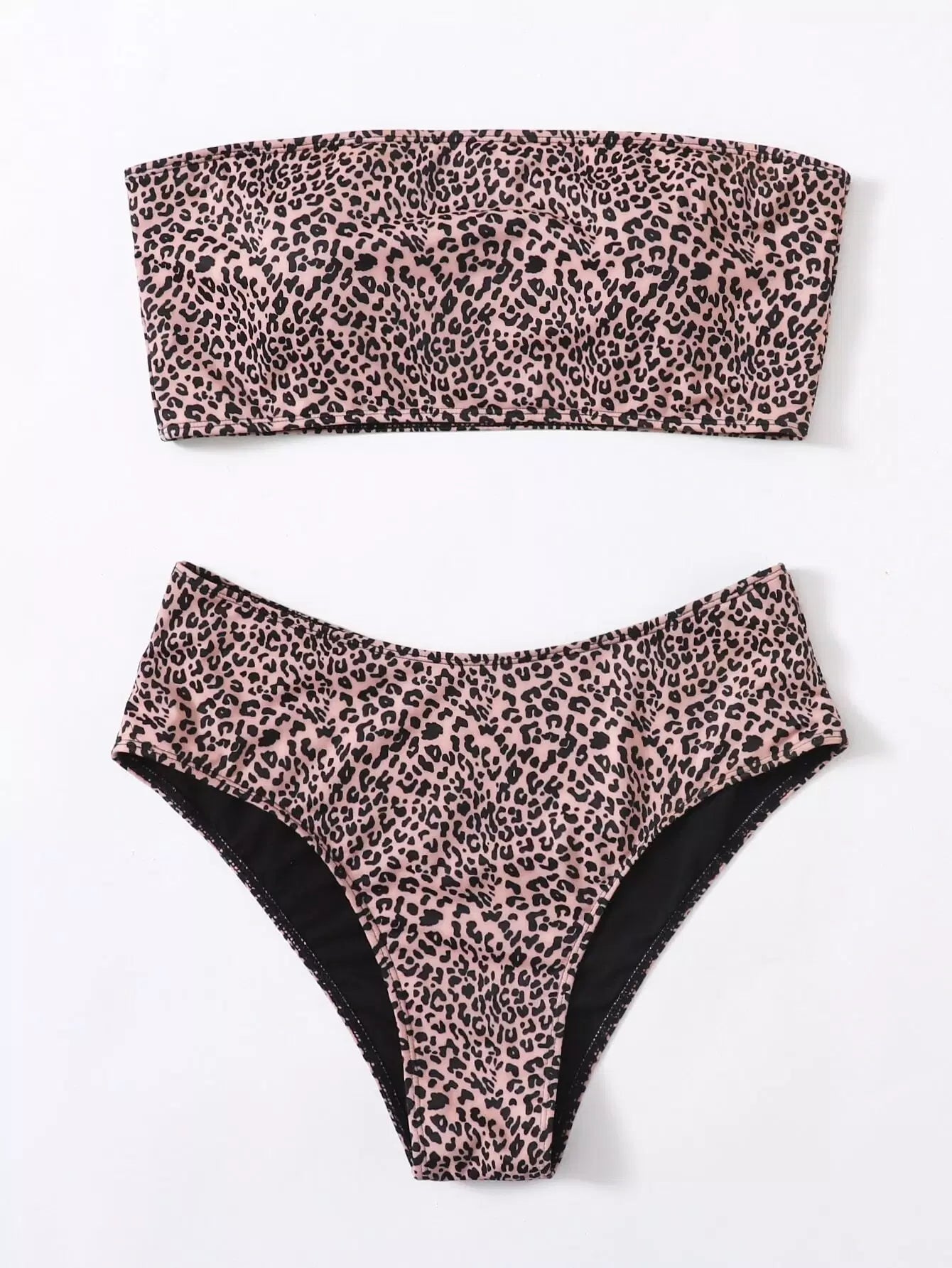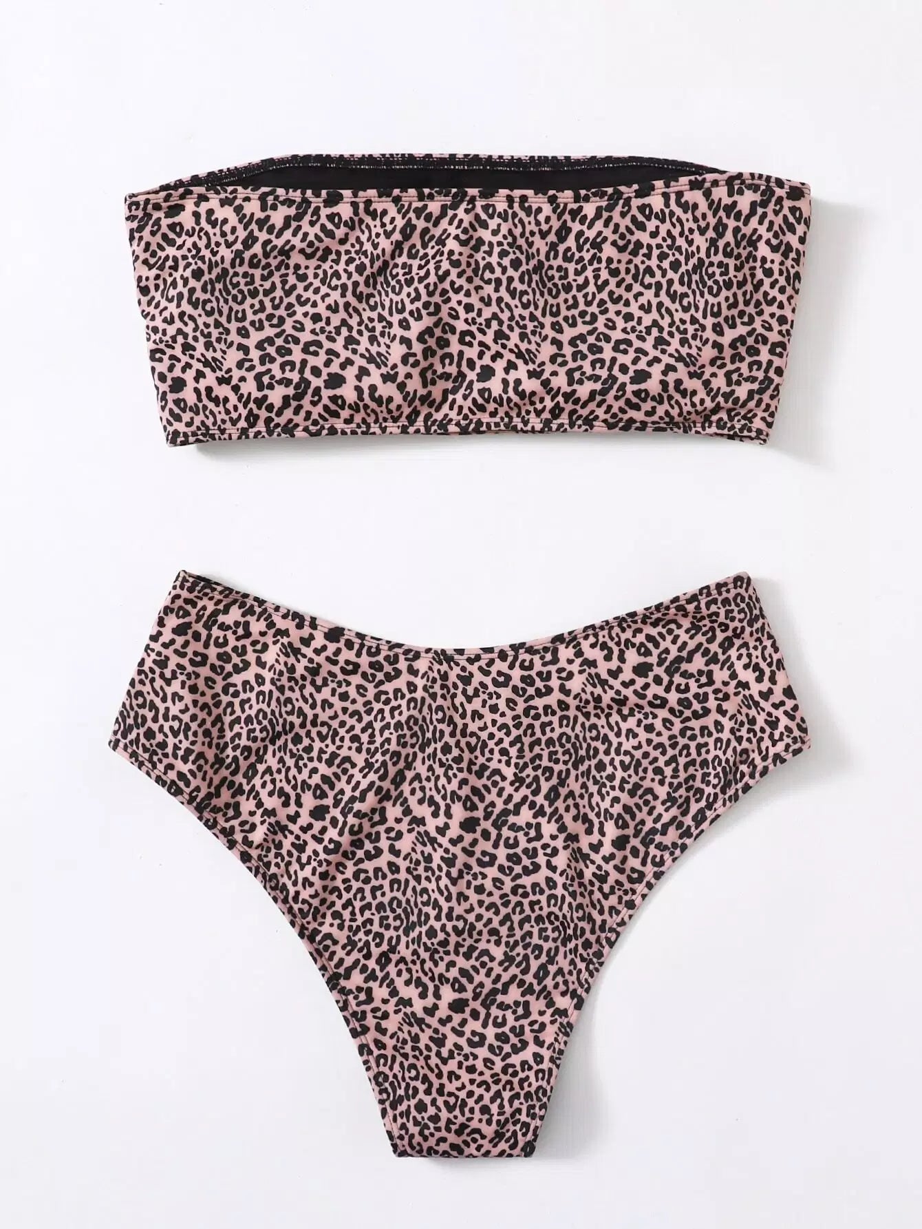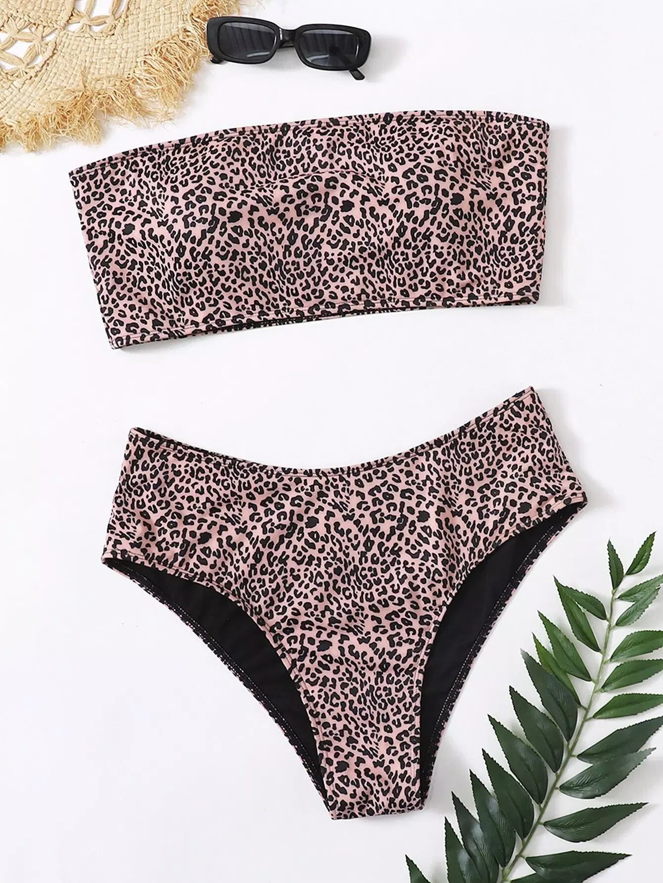 Plus Allover Graphic Bandeau Bikini Swimsuit