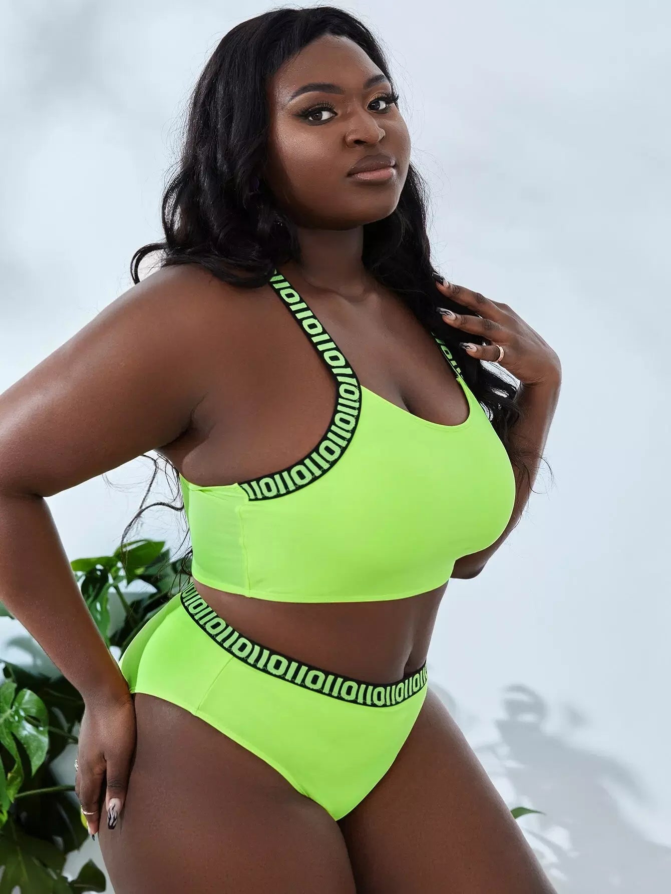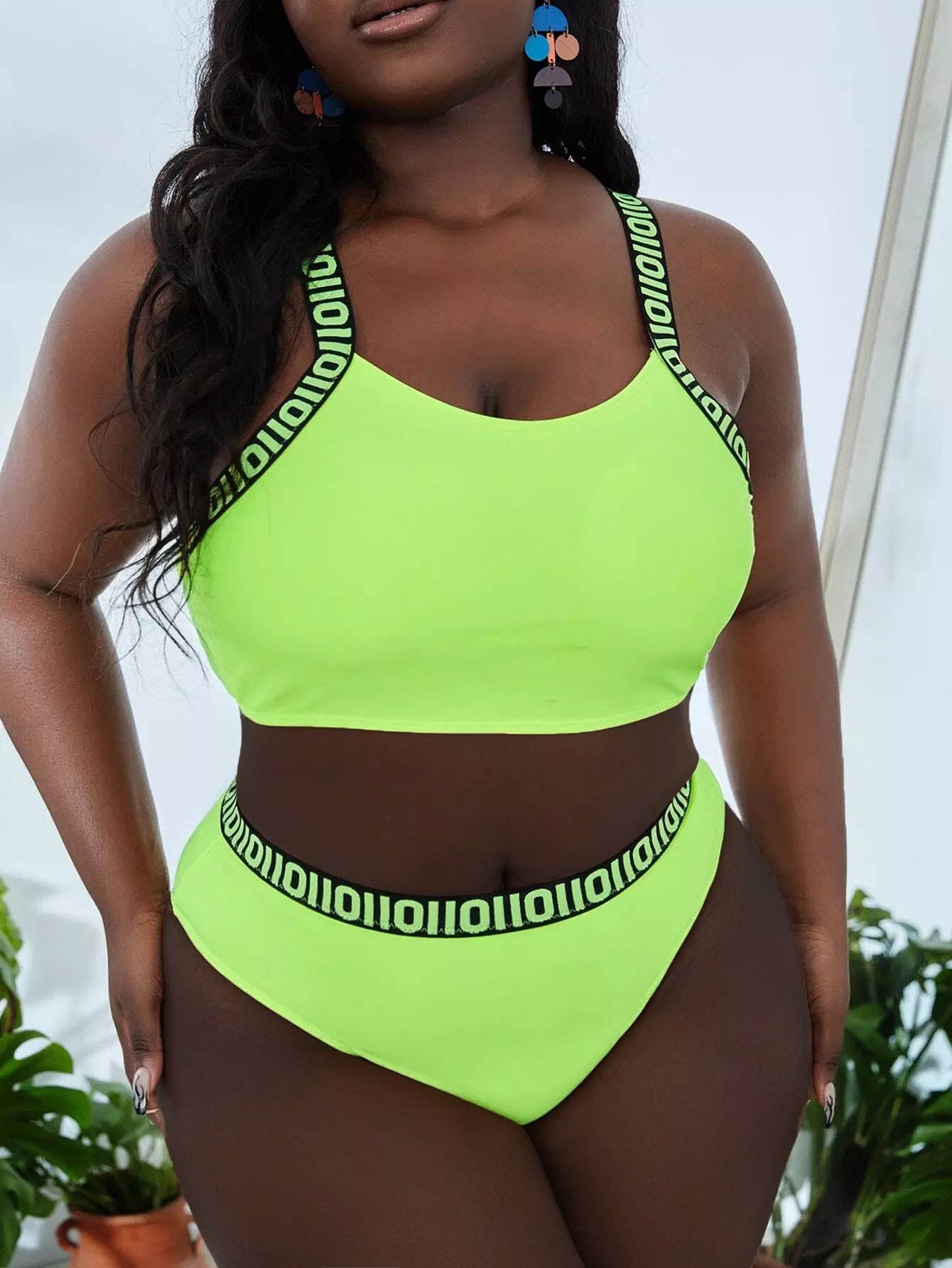 Plus Letter Tape Bikini Swimsuit