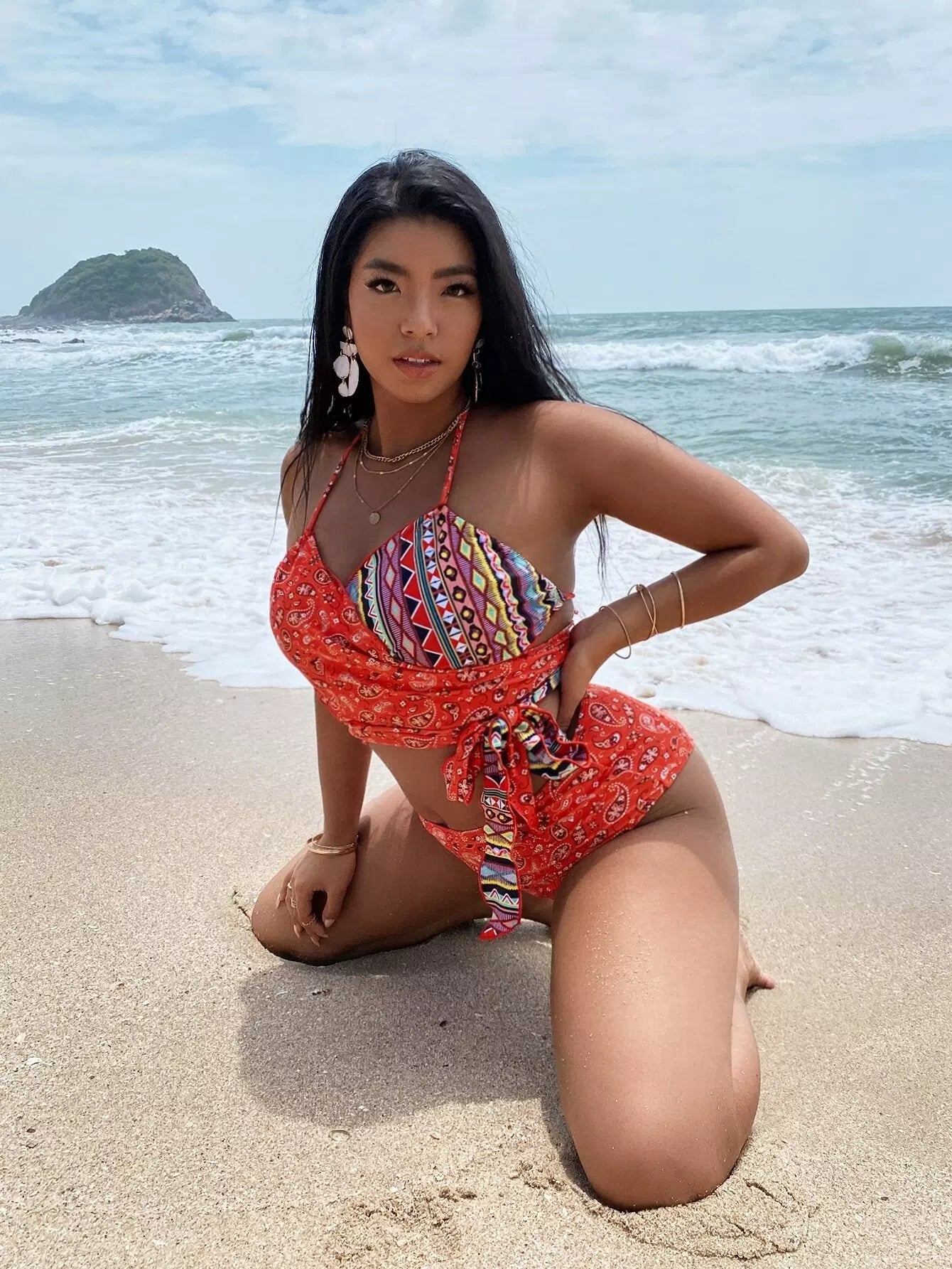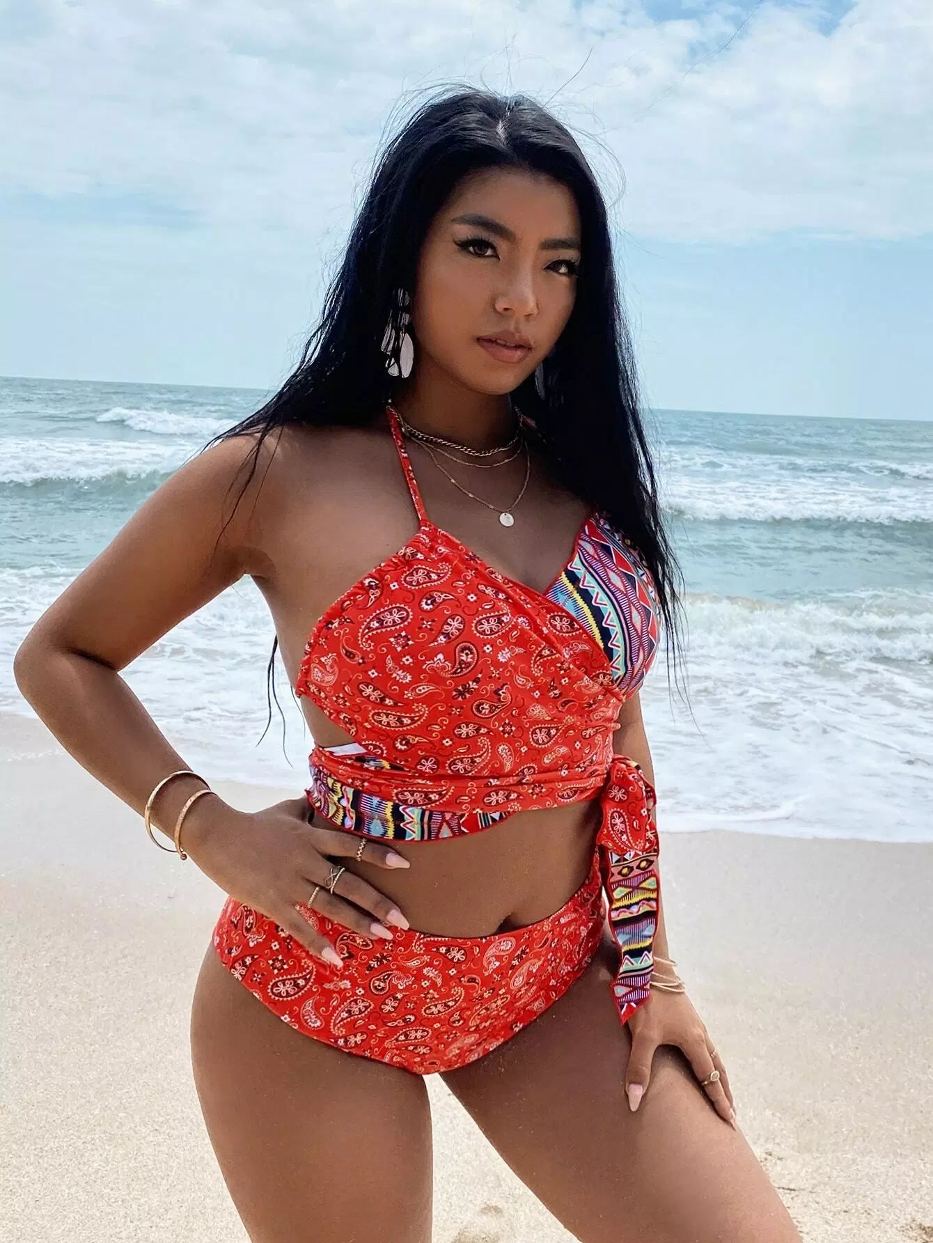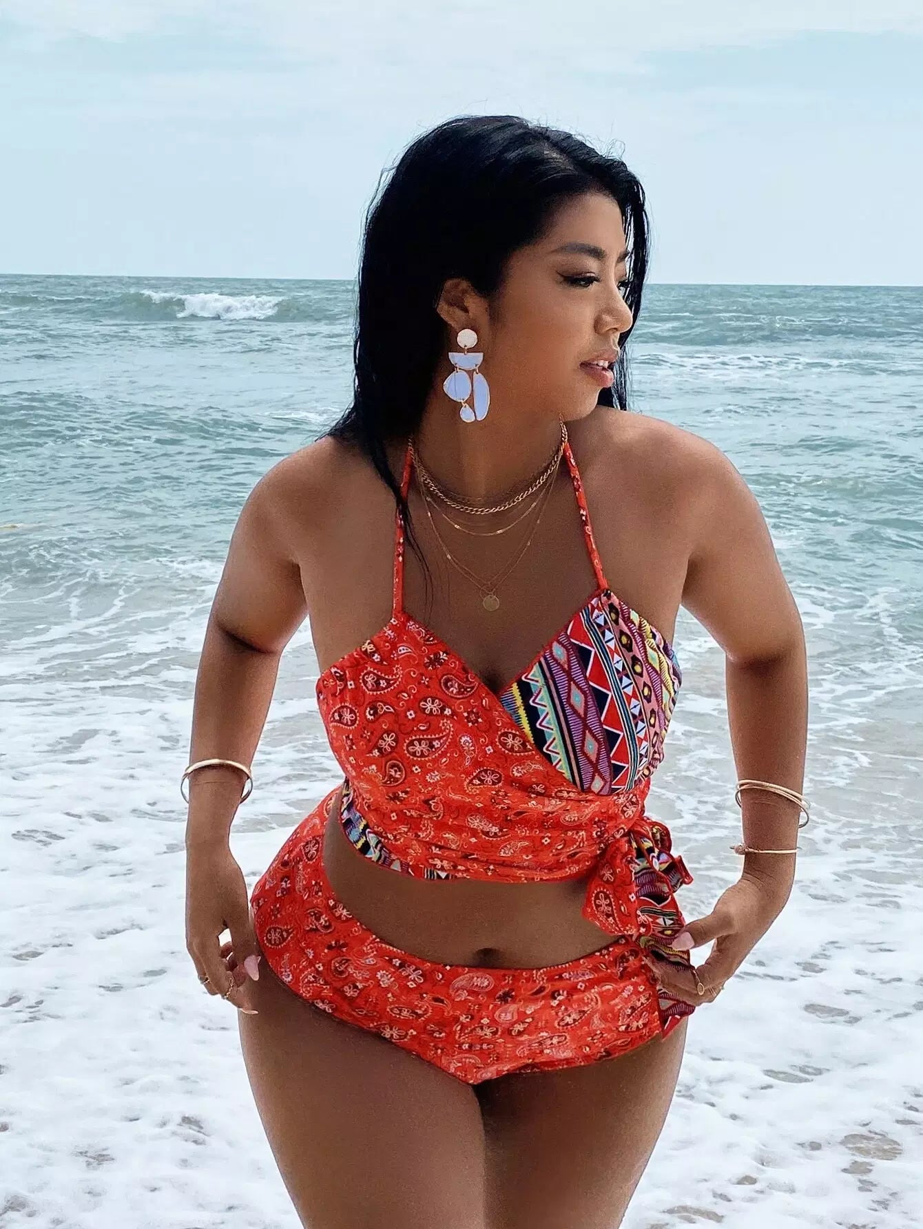 Plus Paisley Print Knot Waist Bikini Swimsuit