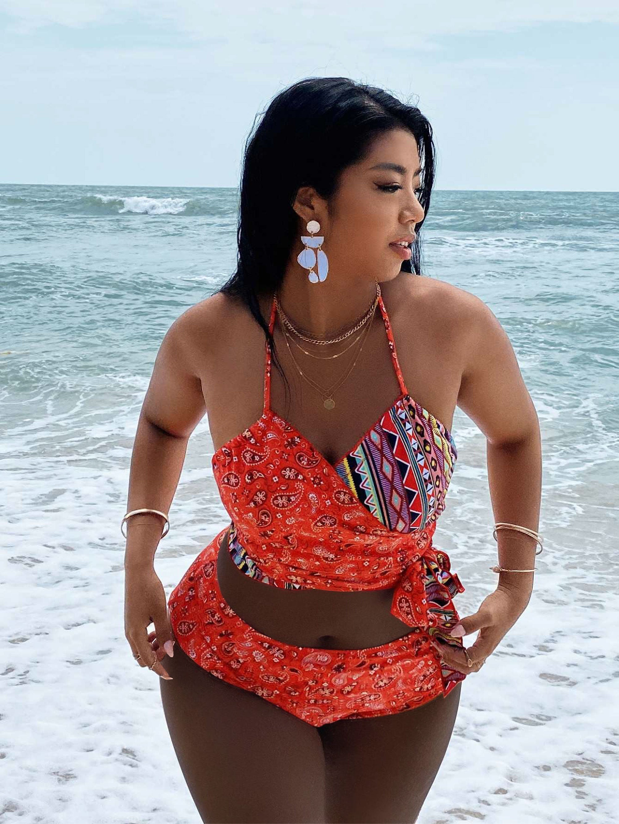 Women - Plus Paisley Print Knot Waist Bikini Swimsuit