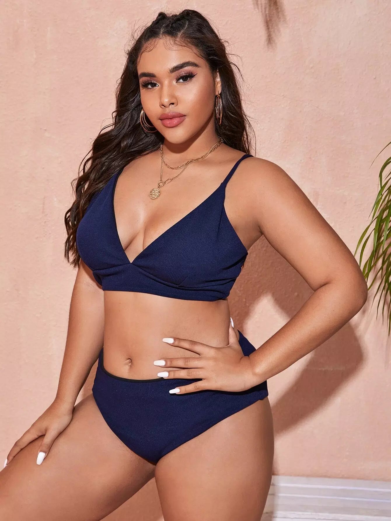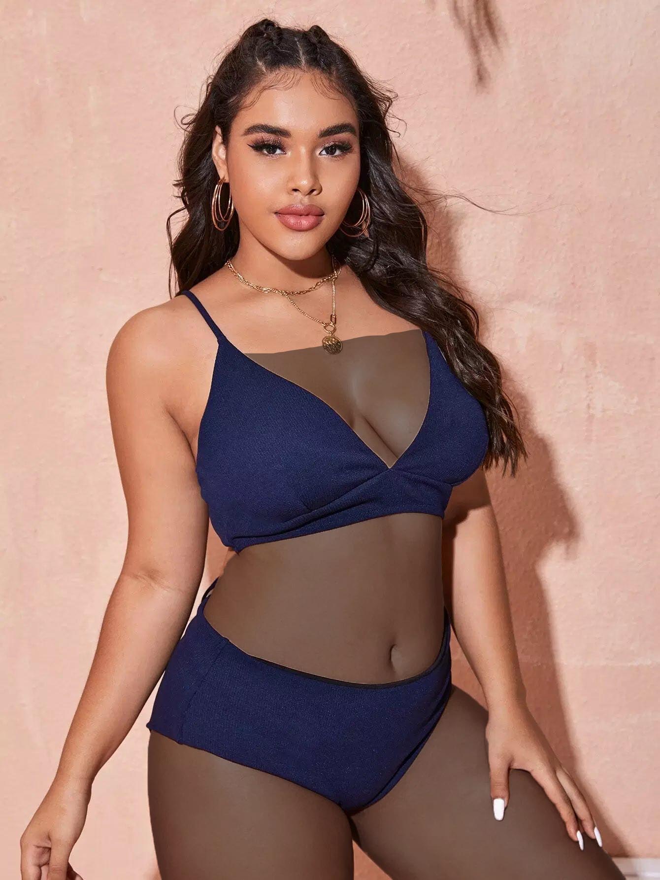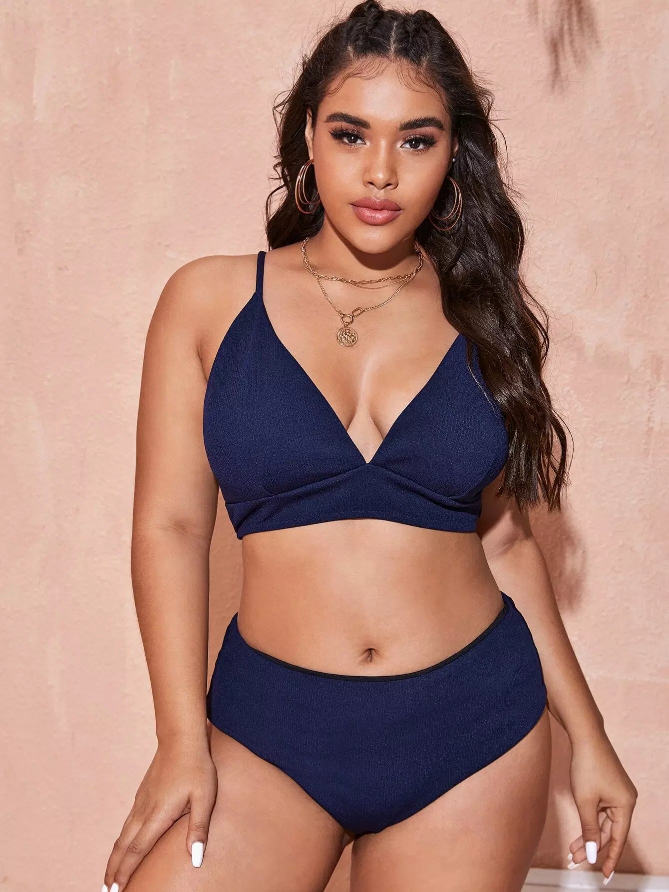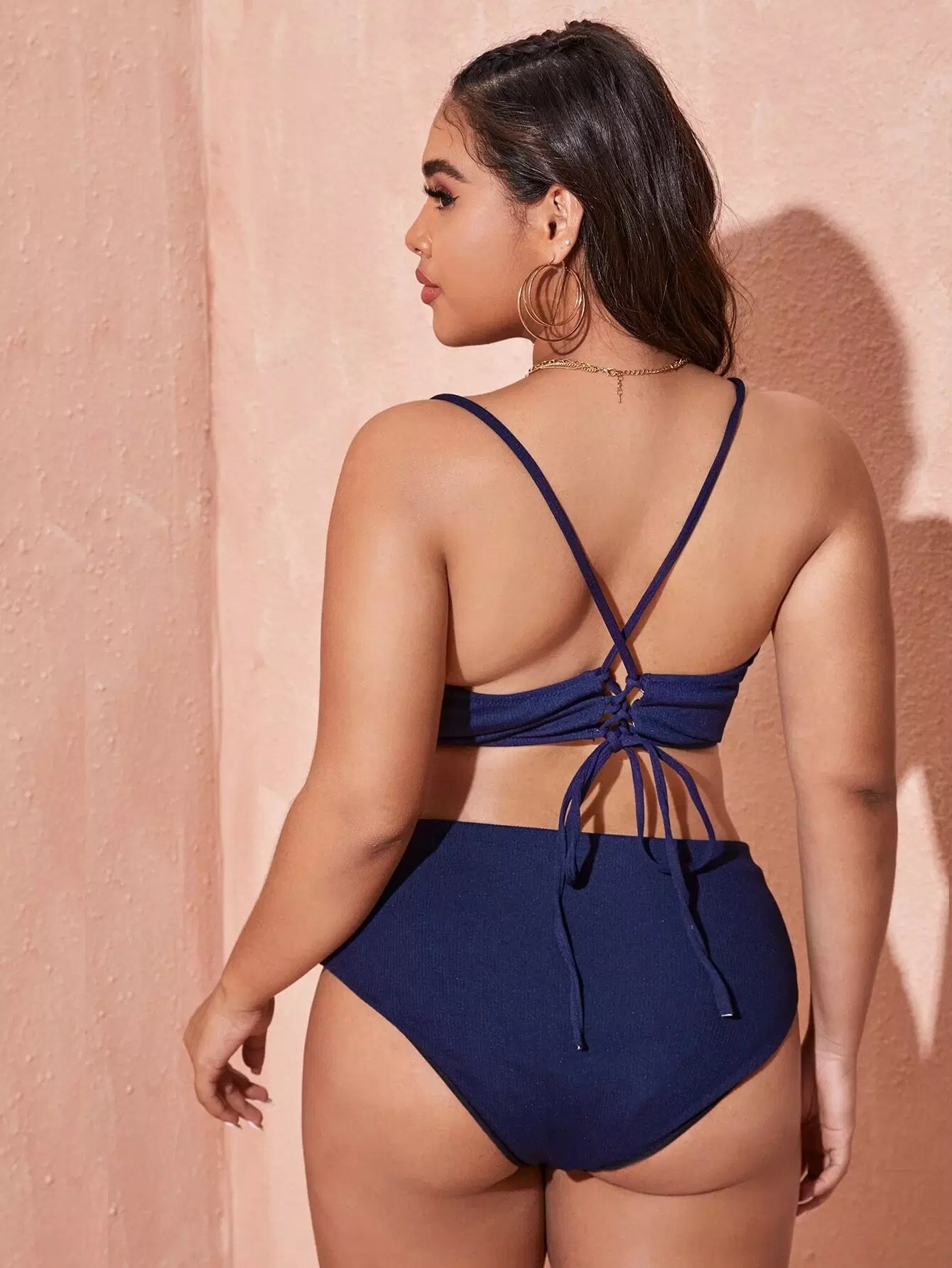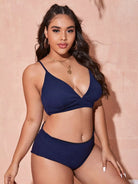 Plus Rib Tie Back High Waisted Bikini Swimsuit