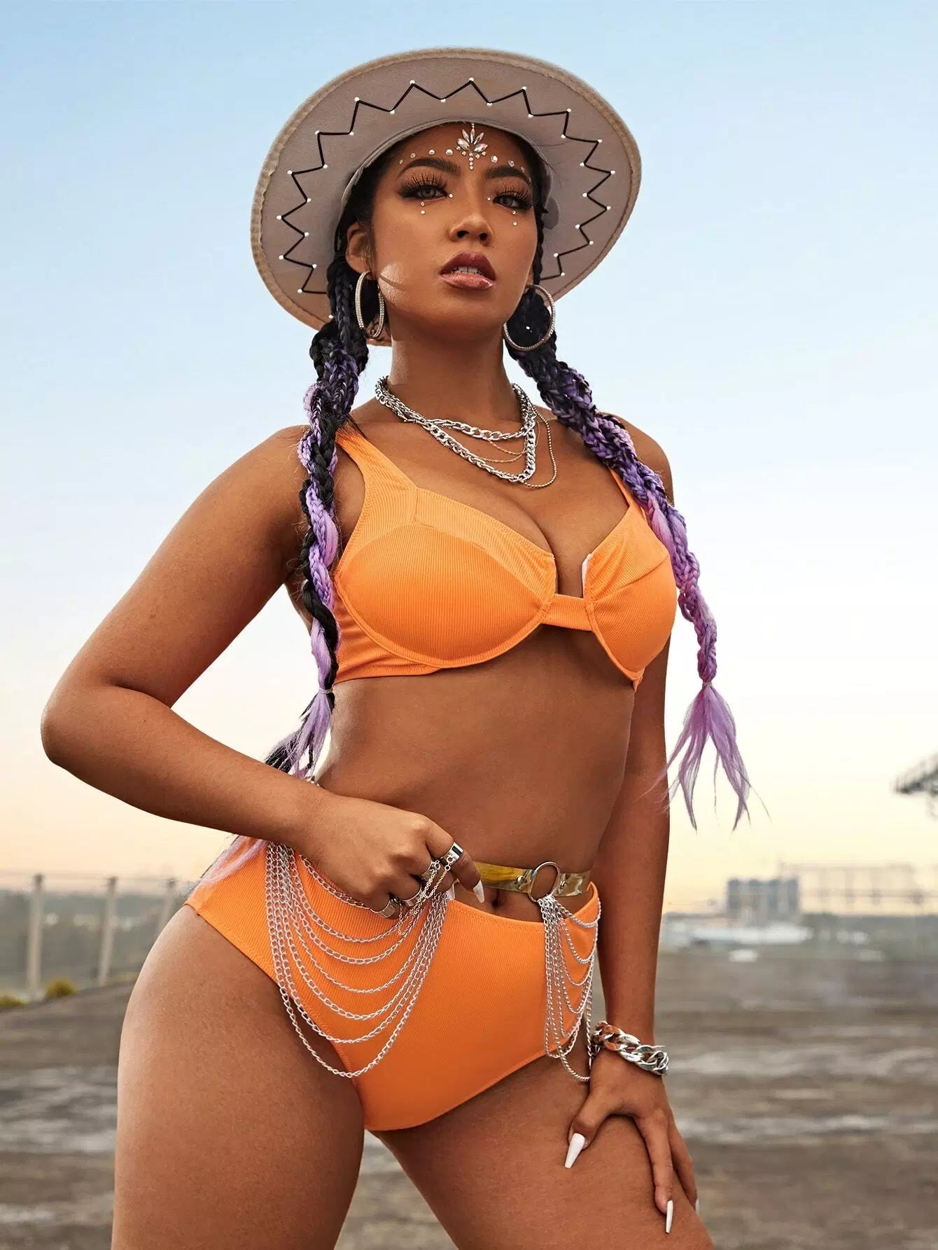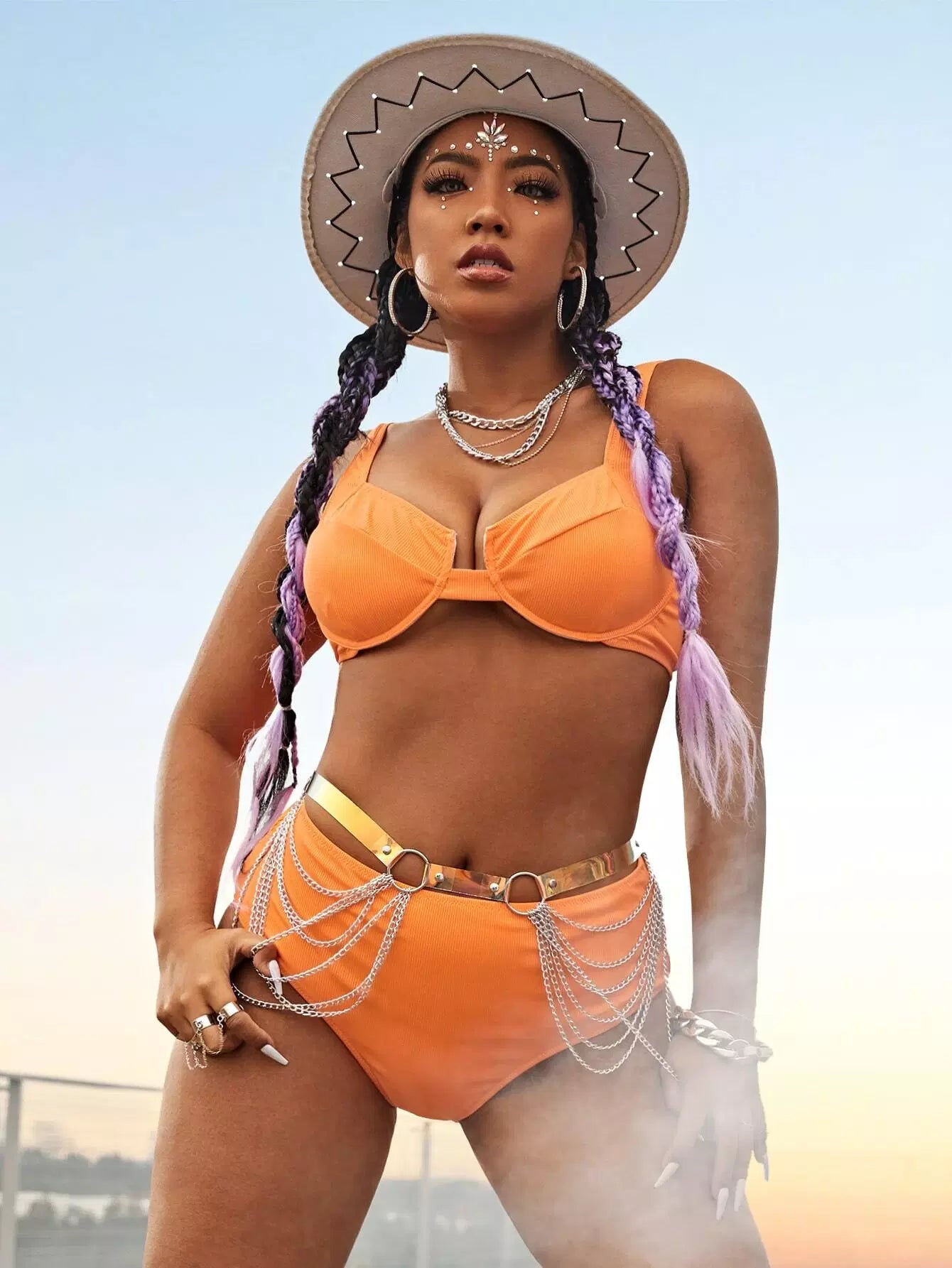 Plus Rib Underwire High Waisted Bikini Swimsuit