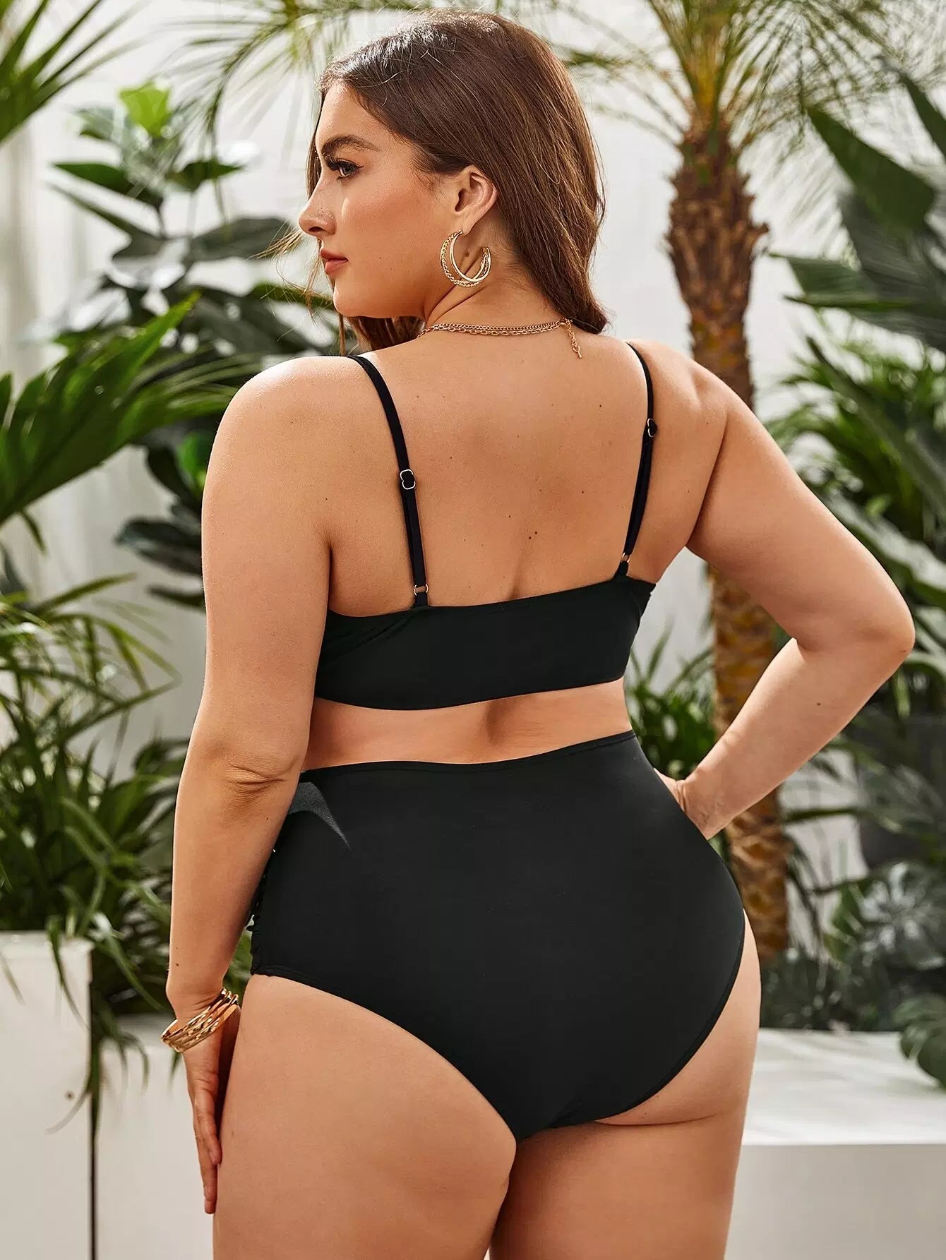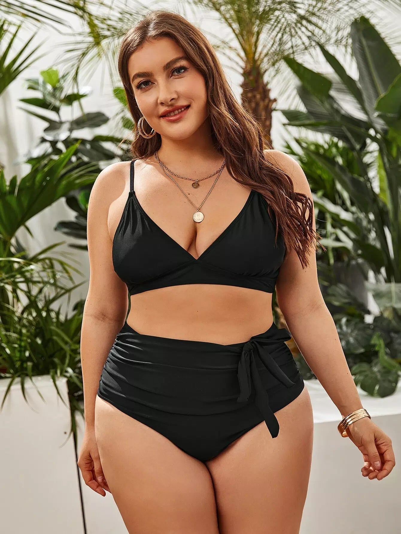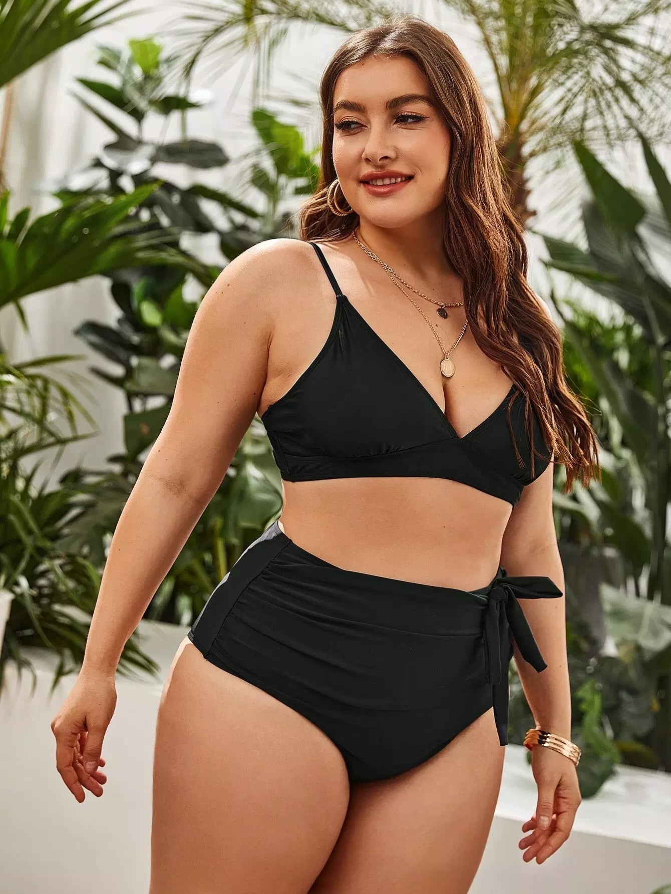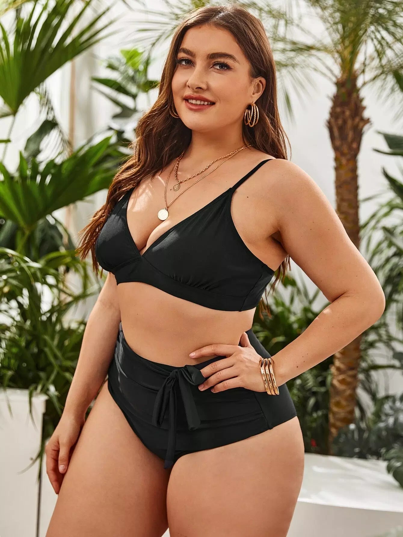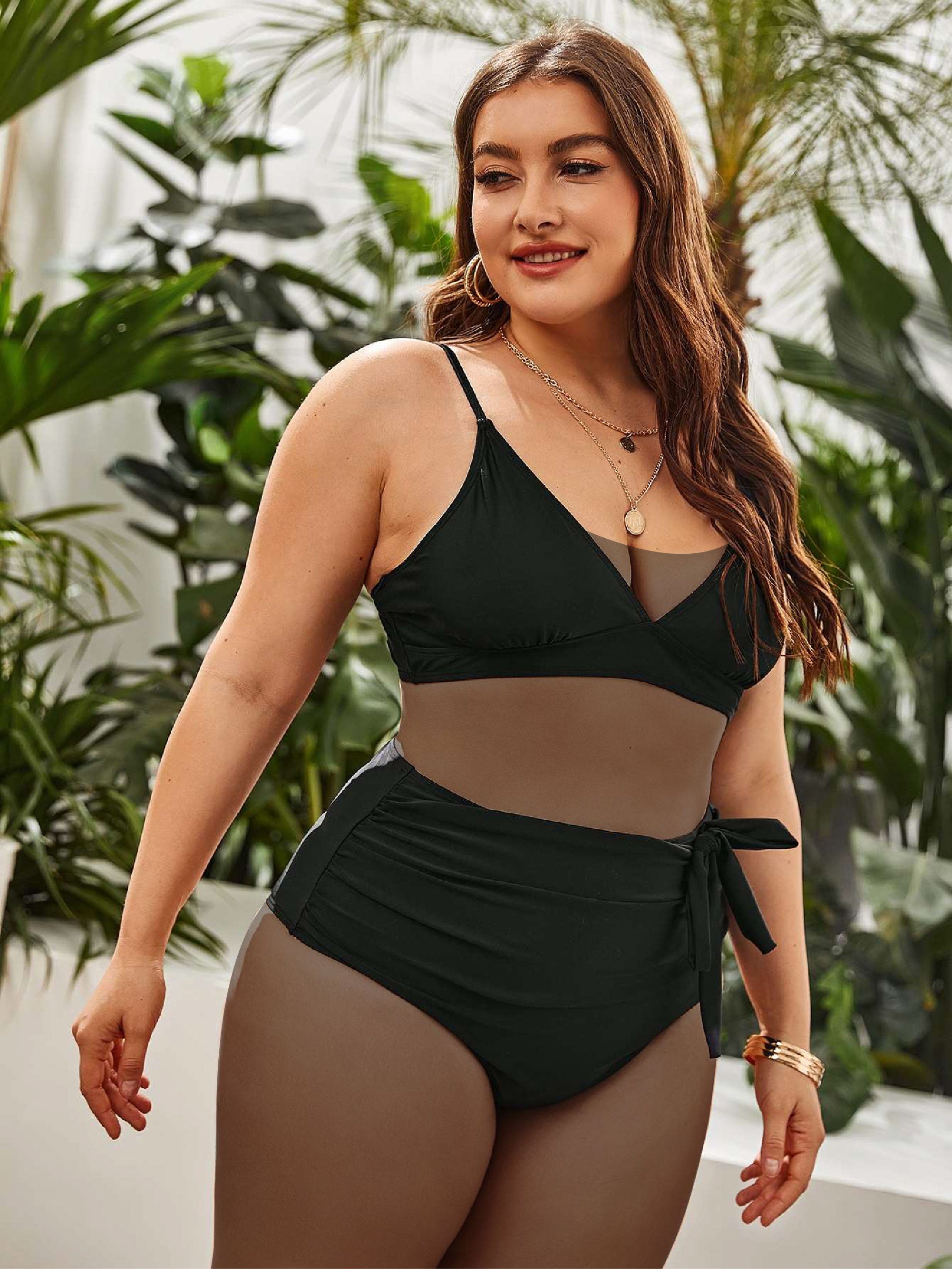 Plus Solid Knot Bikini Swimsuit