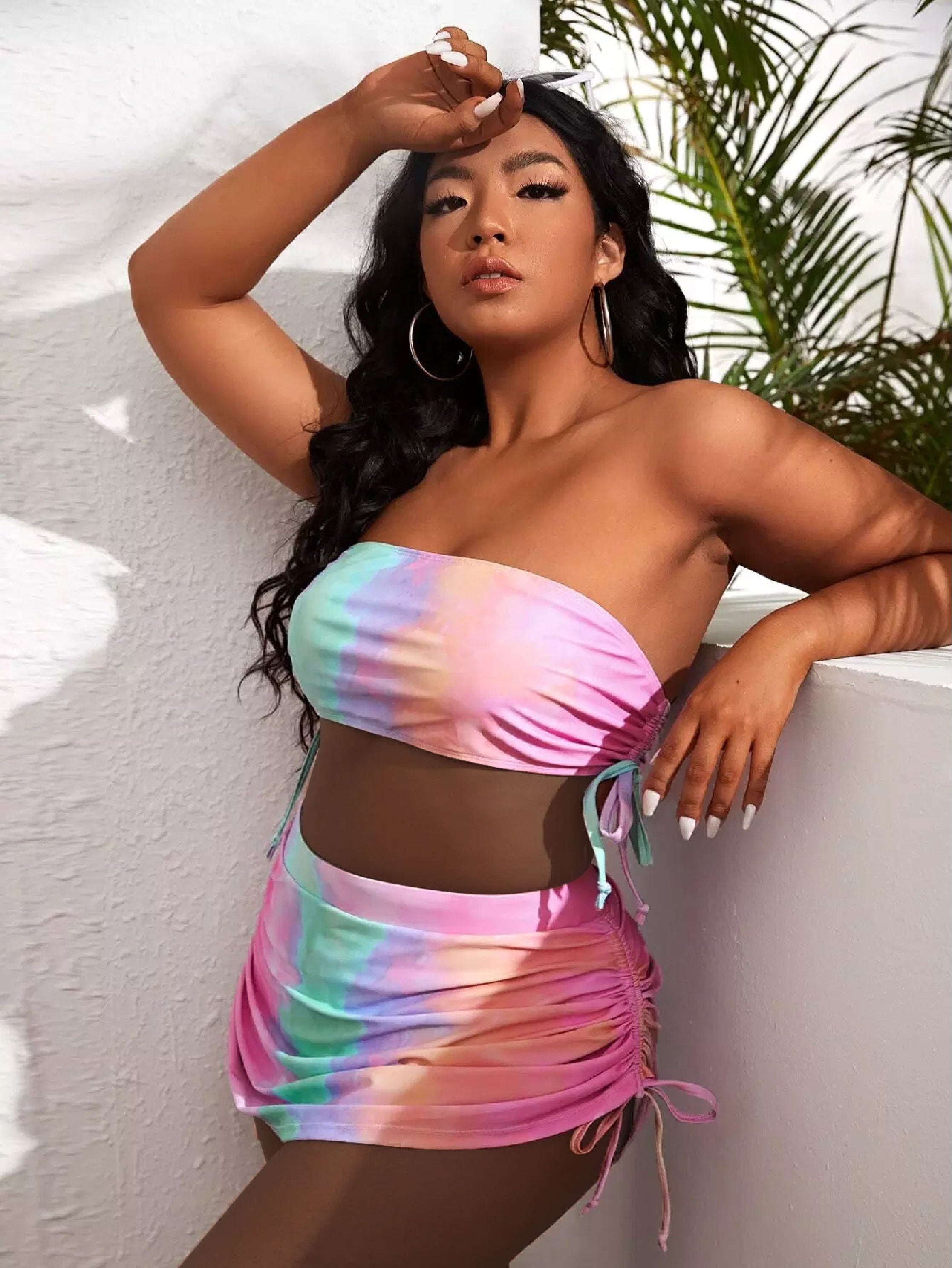 Plus Tie Dye Bandeau Bikini Swimsuit