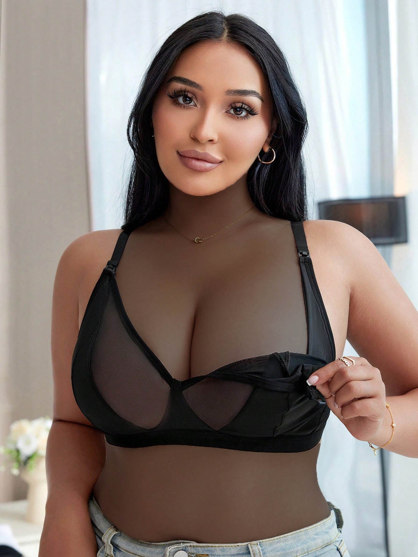 Curvy Comfy Soft Simple Wireless Sheer Lingerie Bralette Triangle Cup Plus Size Maternity Nursing Lingerie Bra