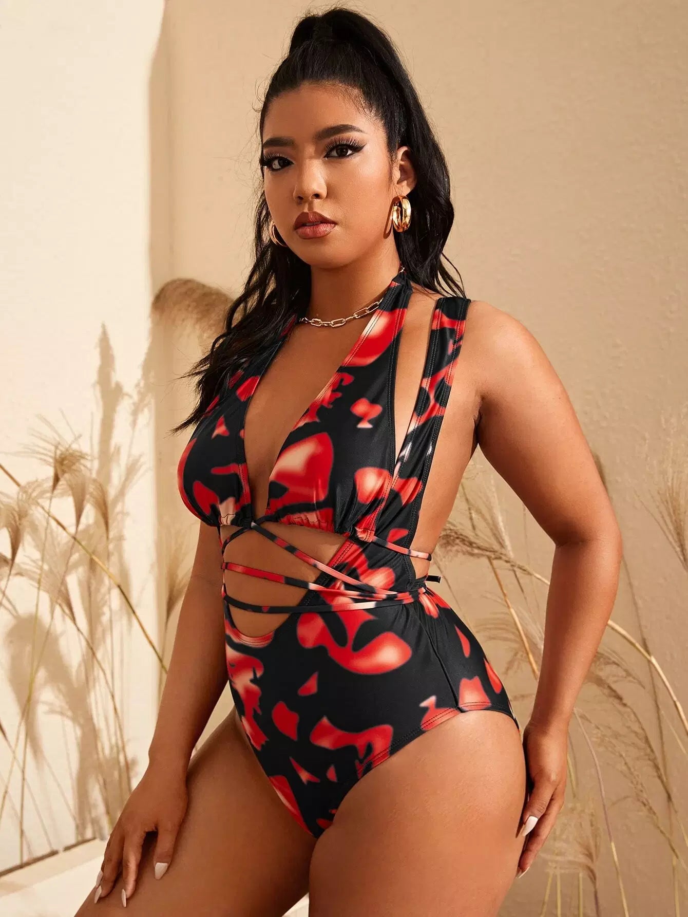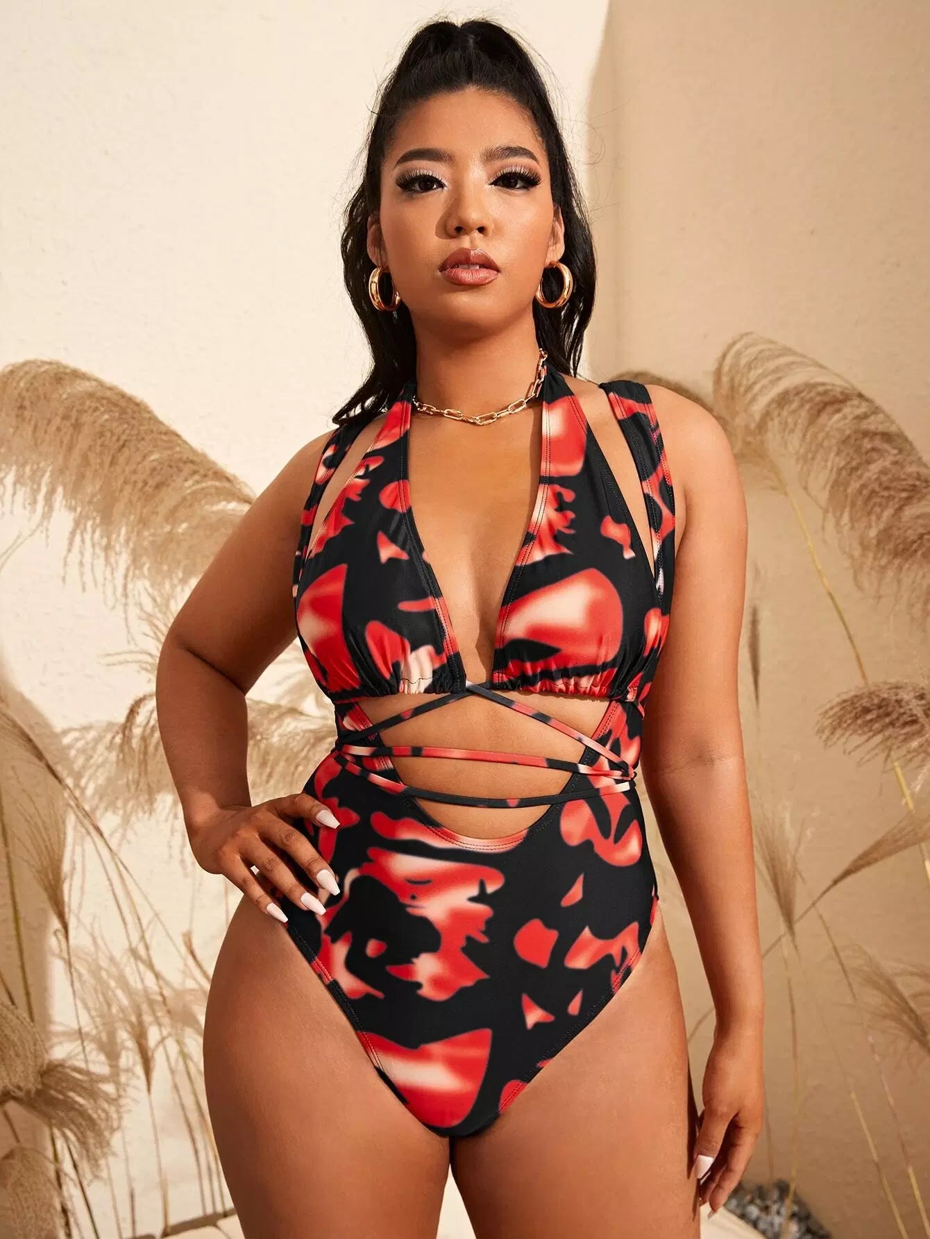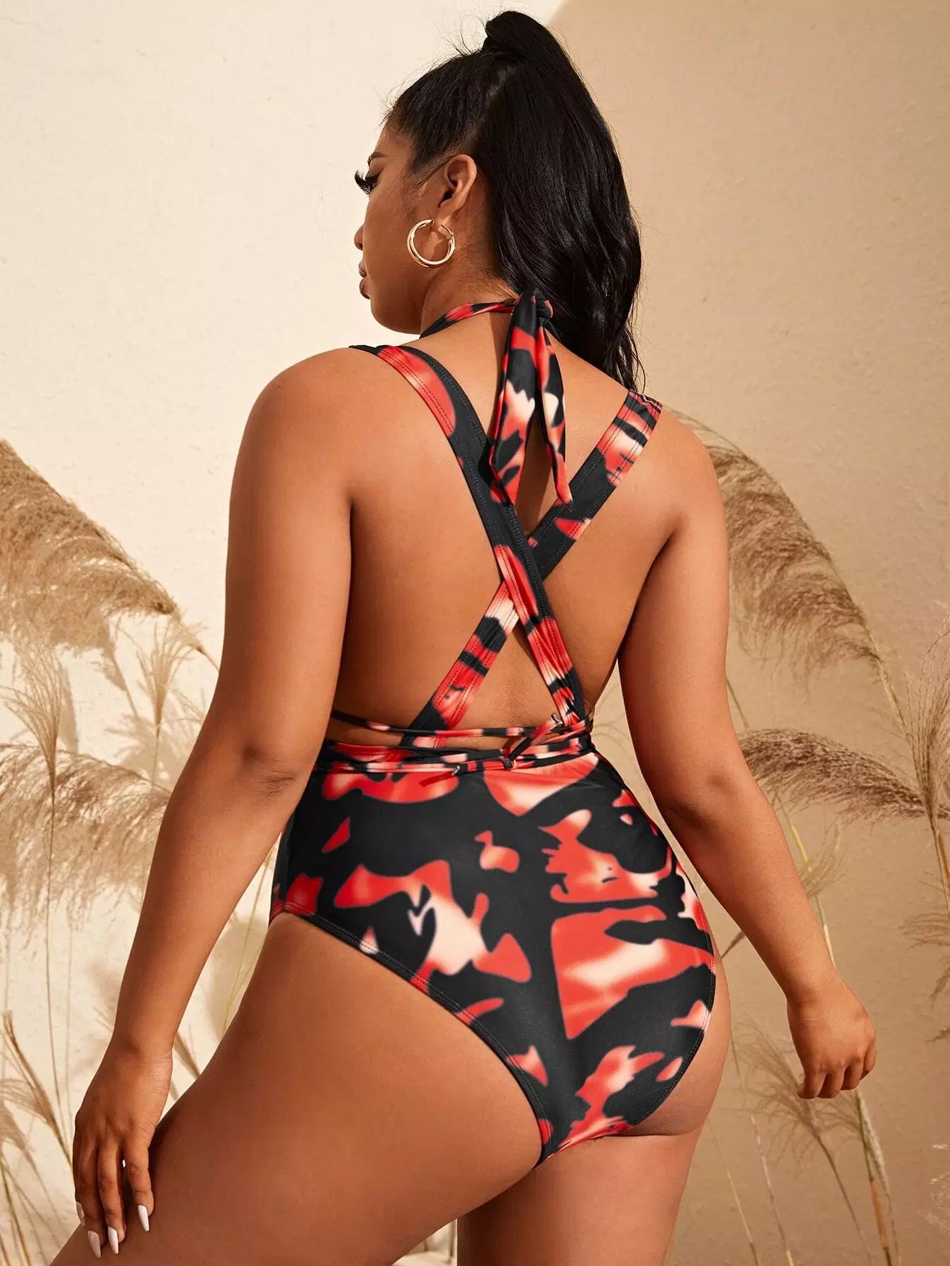 2pack Plus Allover Graphic Halter One Piece Swimsuit