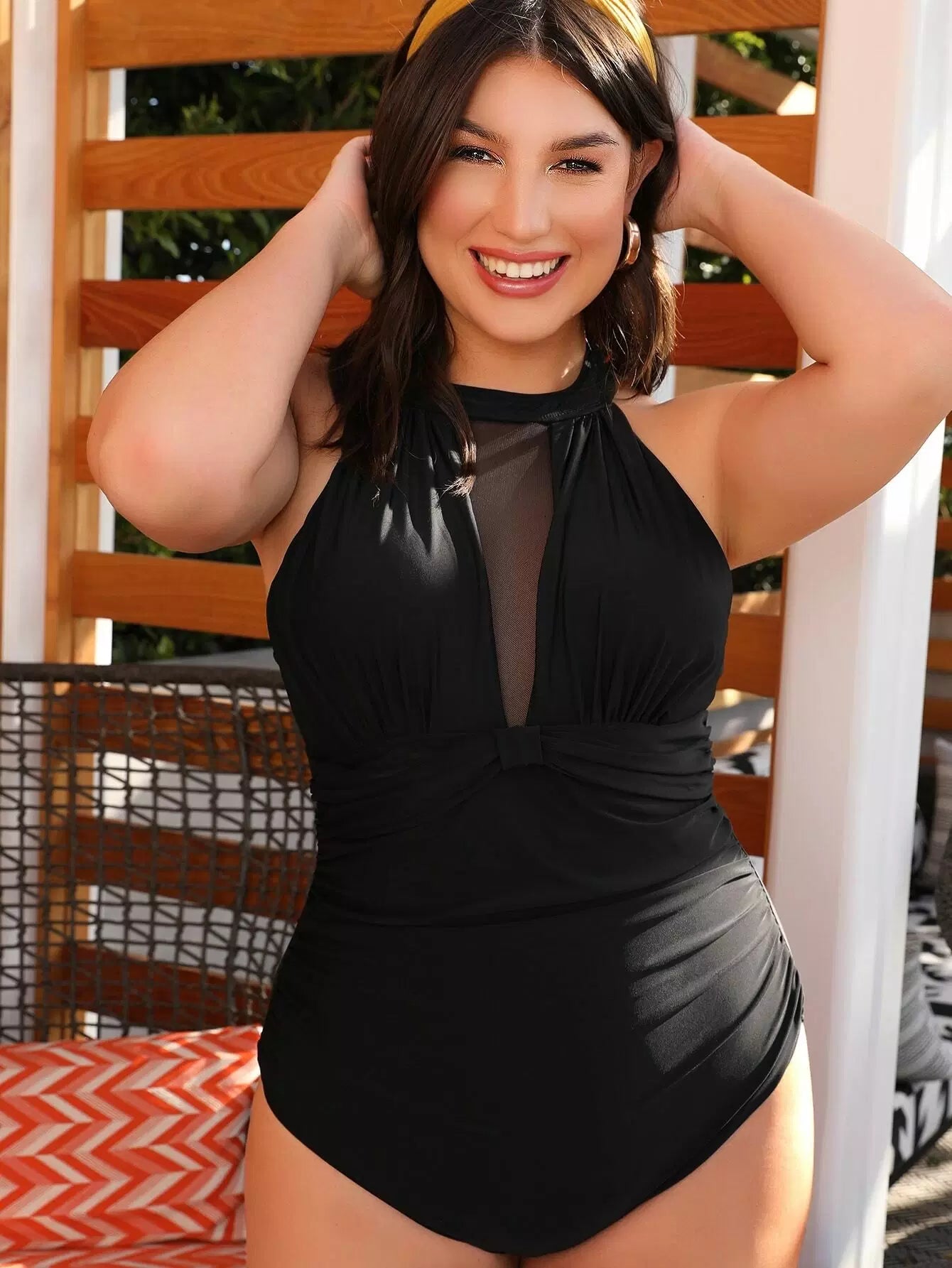 Plus Contrast Mesh Ruched One Piece Swimsuit