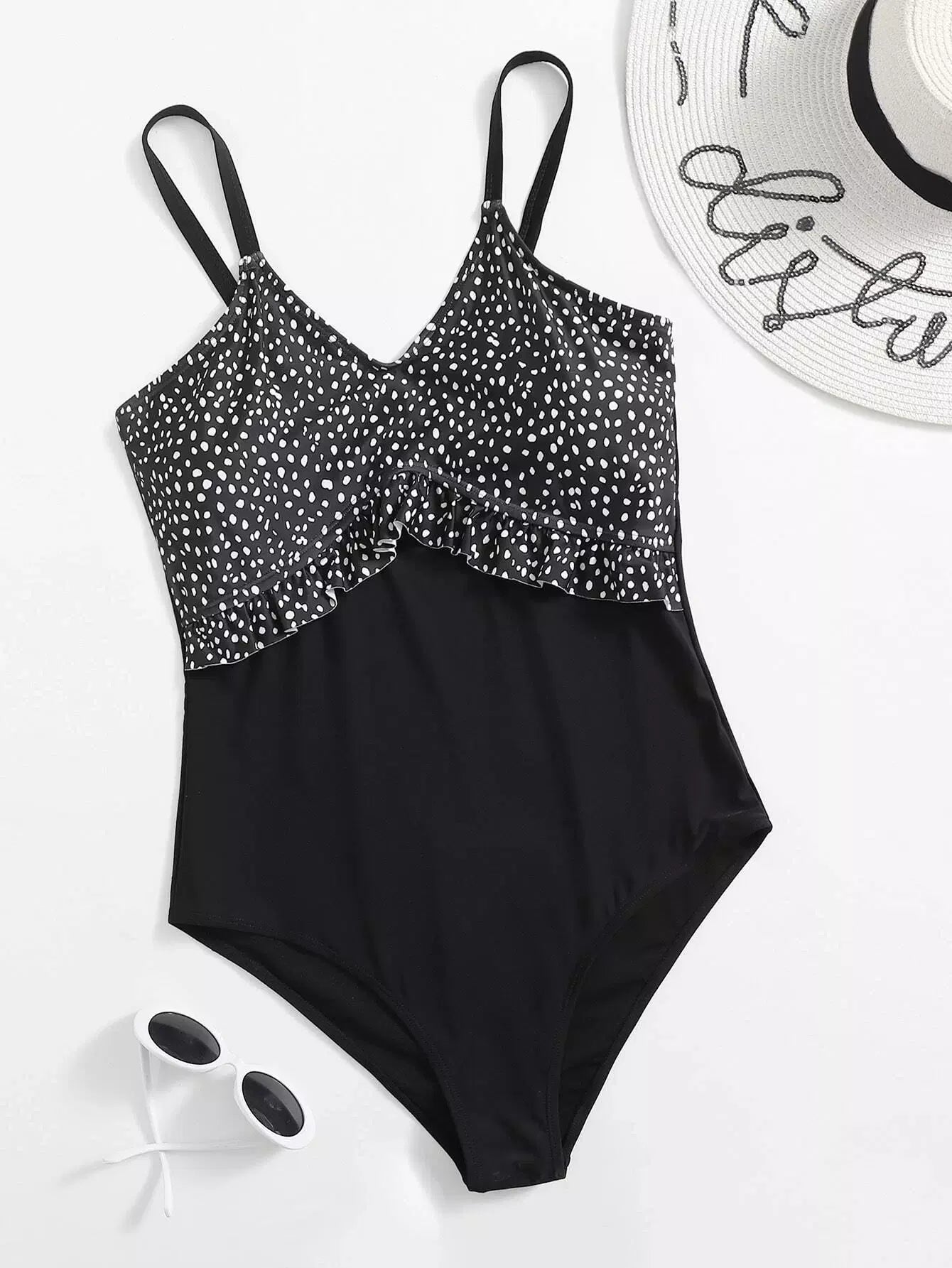 Plus Dalmatian Ruffle One Piece Swimsuit