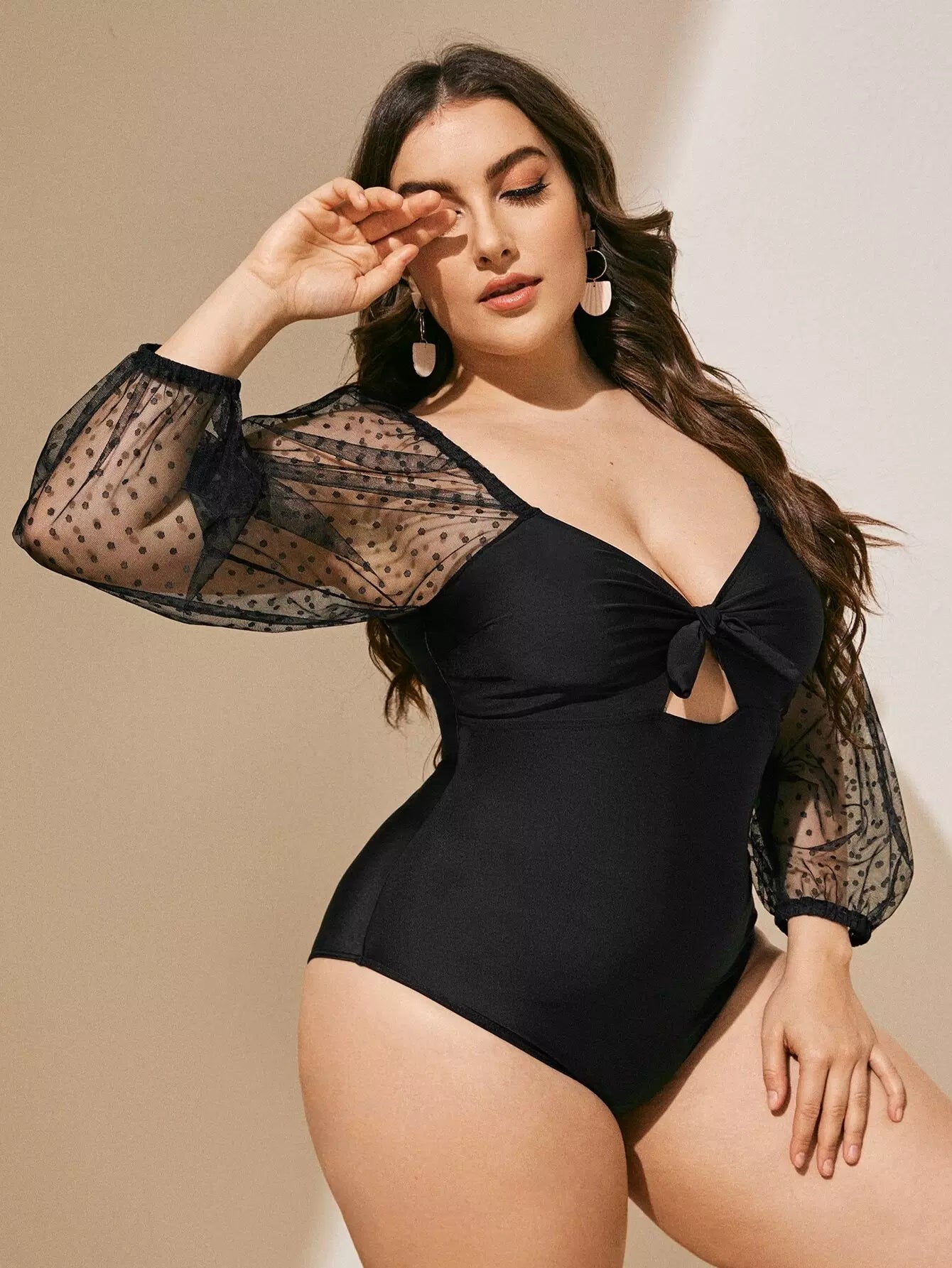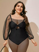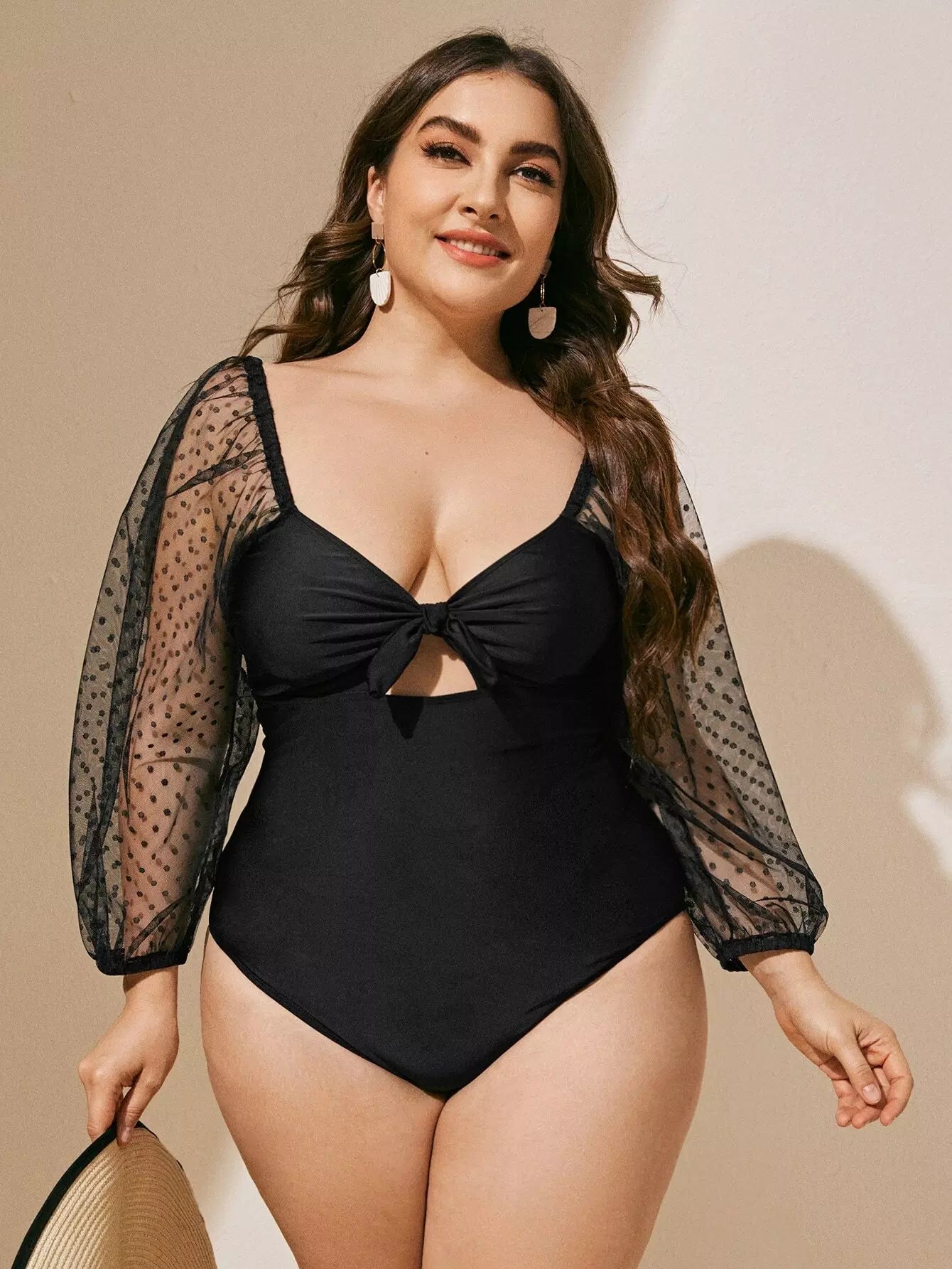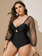 Plus Dobby Mesh Sleeve One Piece Swimsuit