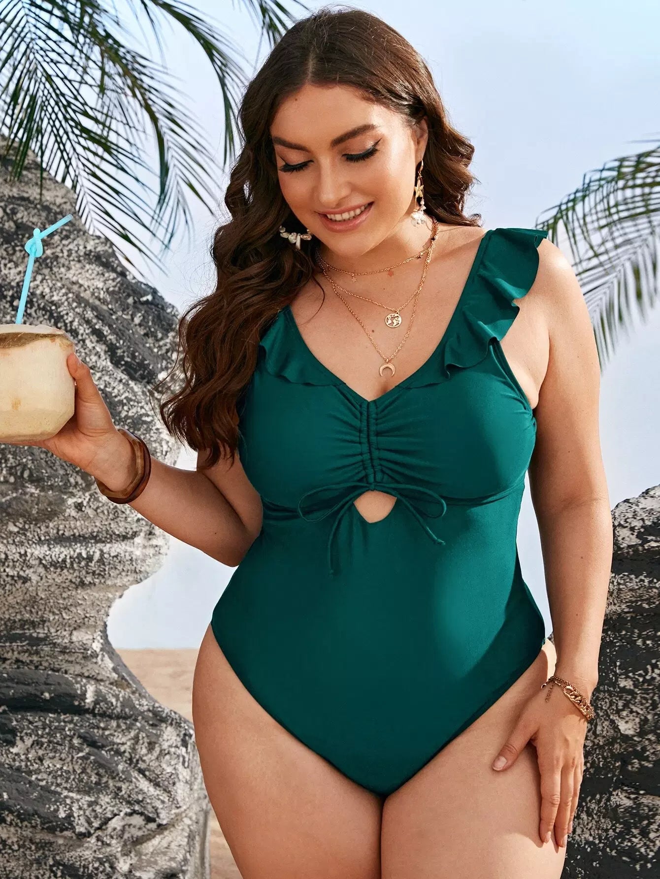 Plus Drawstring Front Ruffle One Piece Swimsuit
