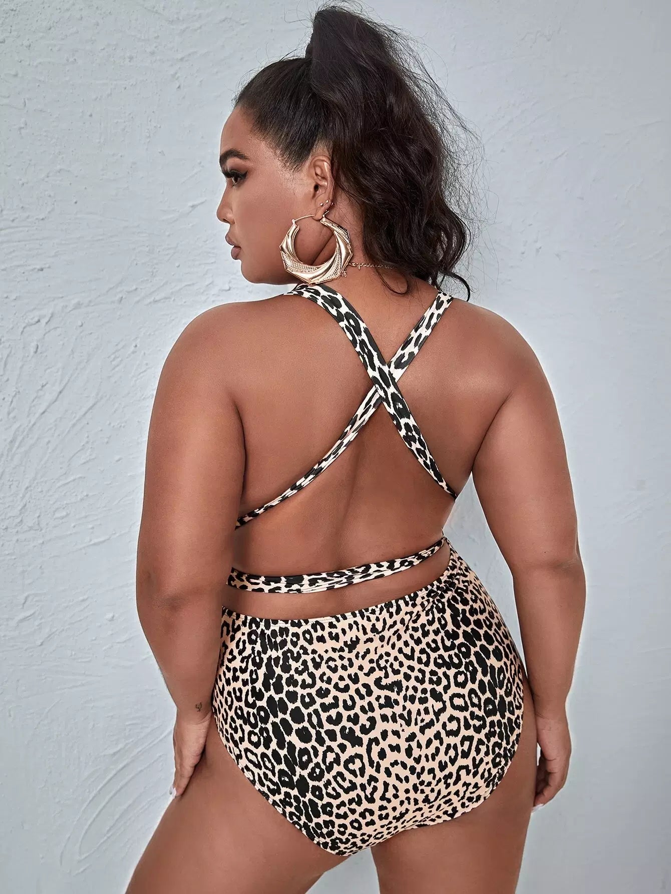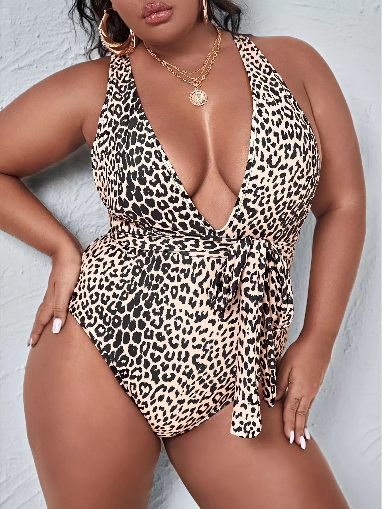 Women - Plus Leopard Tie Front One Piece Swimsuit