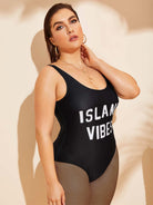 Plus Letter Graphic Low Back One Piece Swimwear