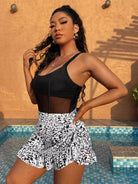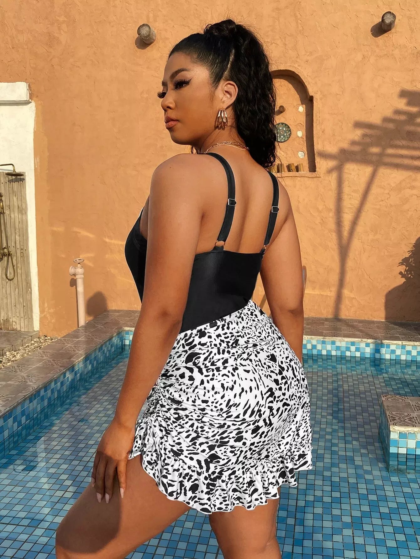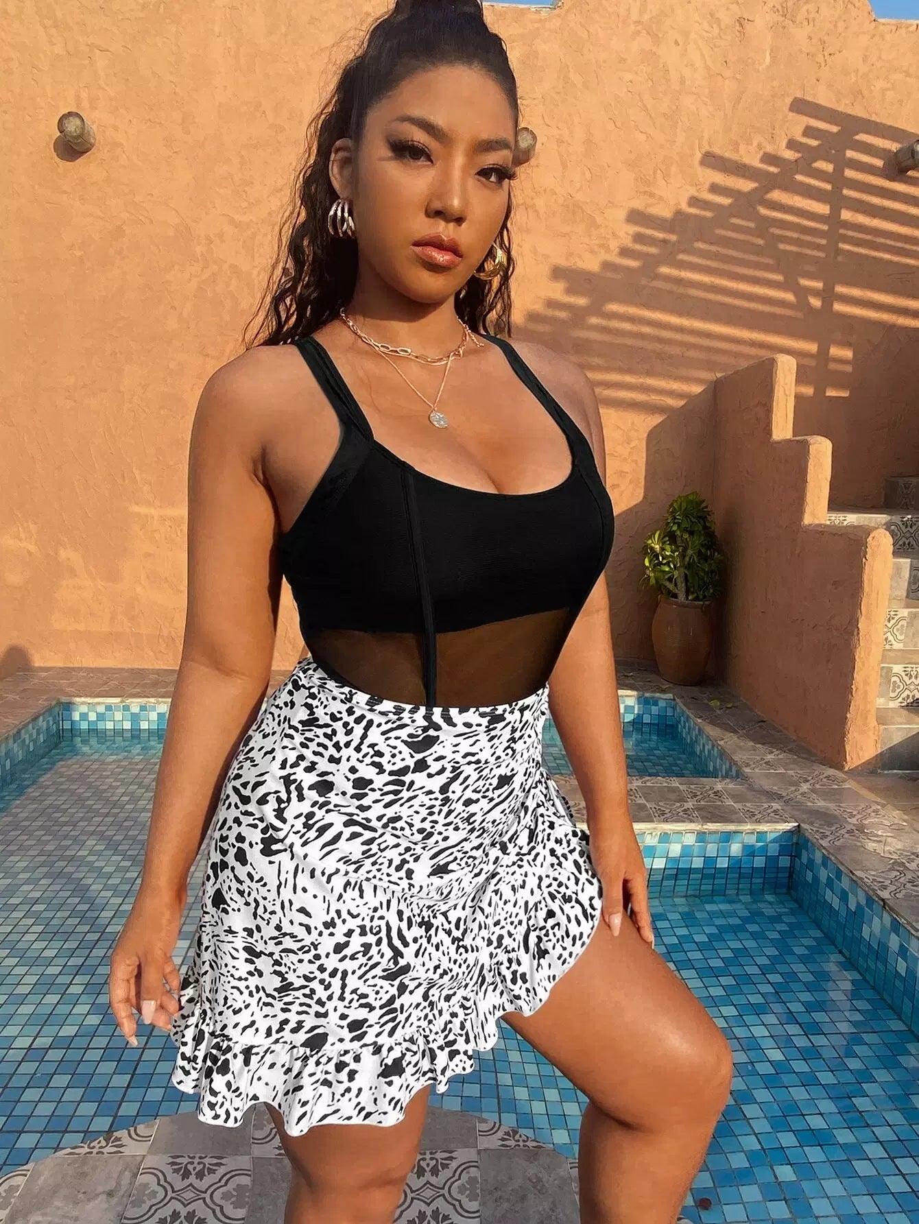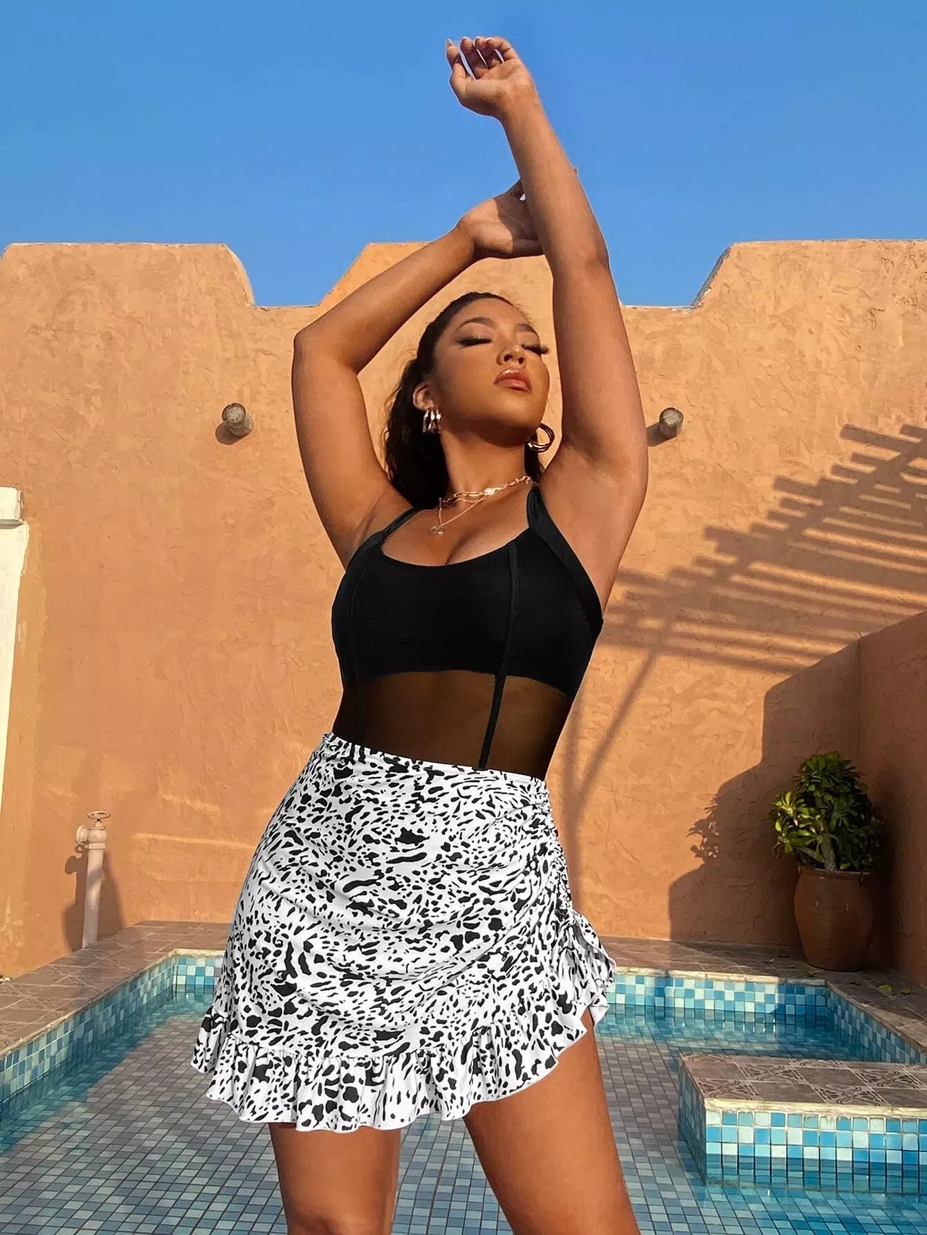 Plus Mesh One Piece Swimsuit & Beach Skirt