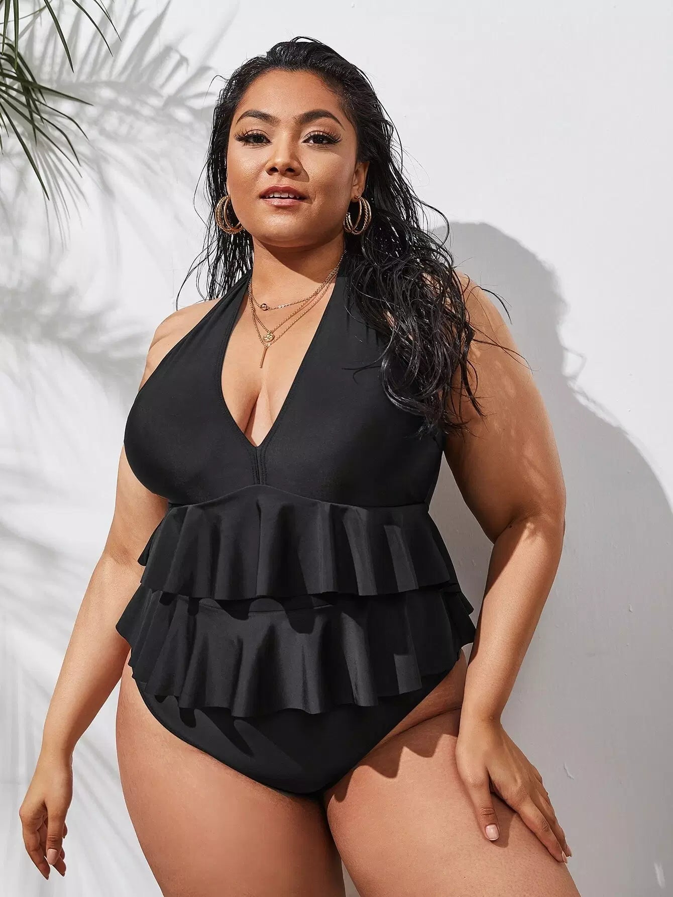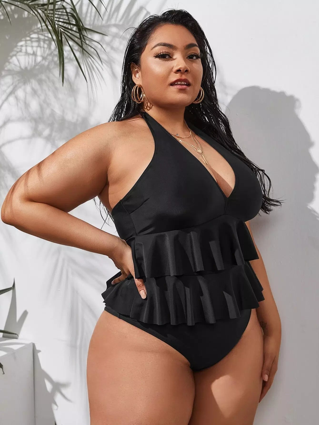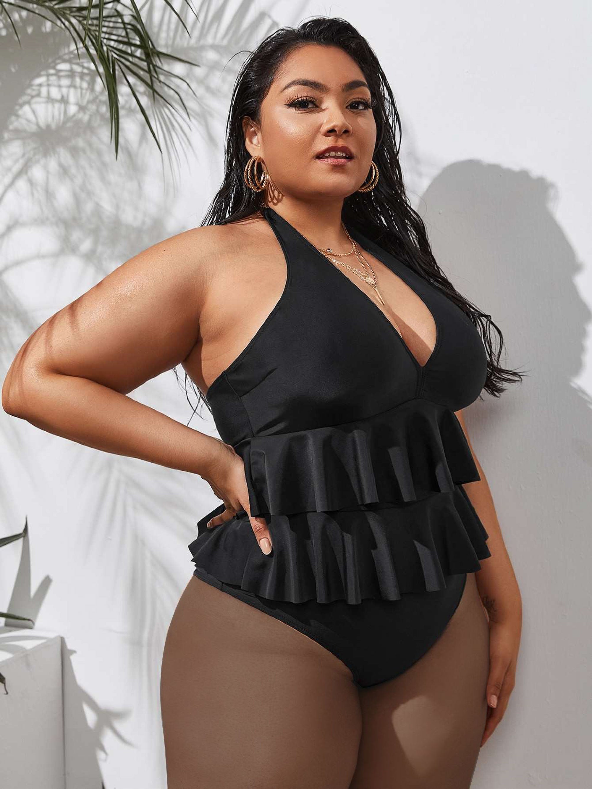 Plus Ruffle Hem One Piece Swimsuit