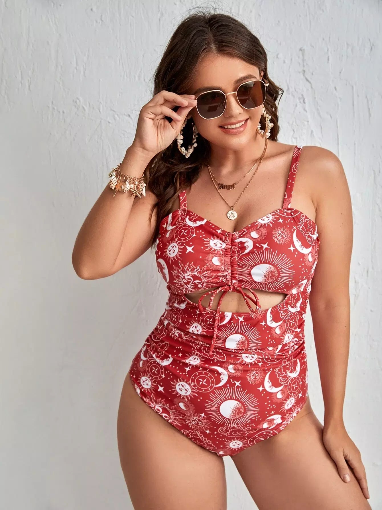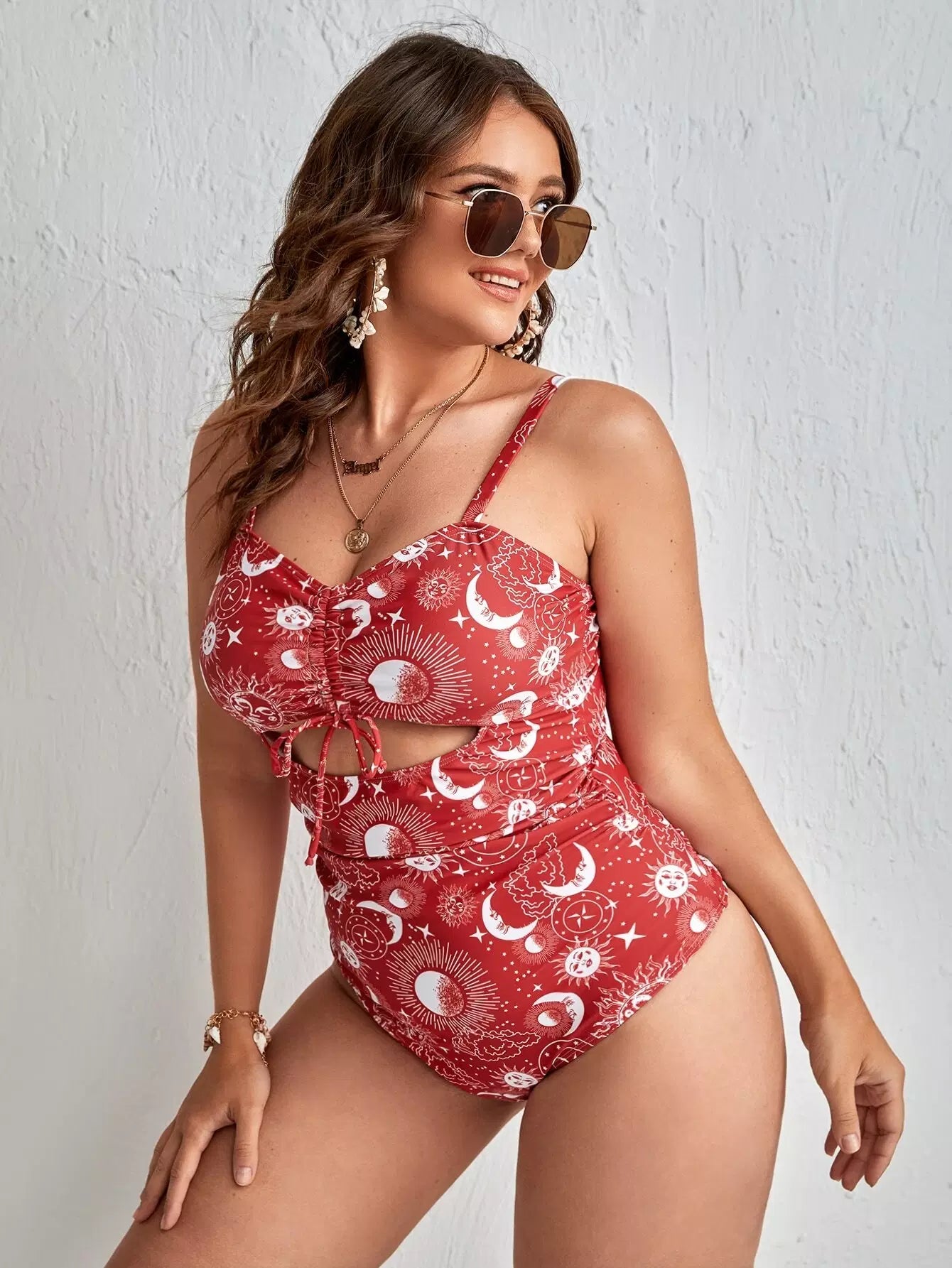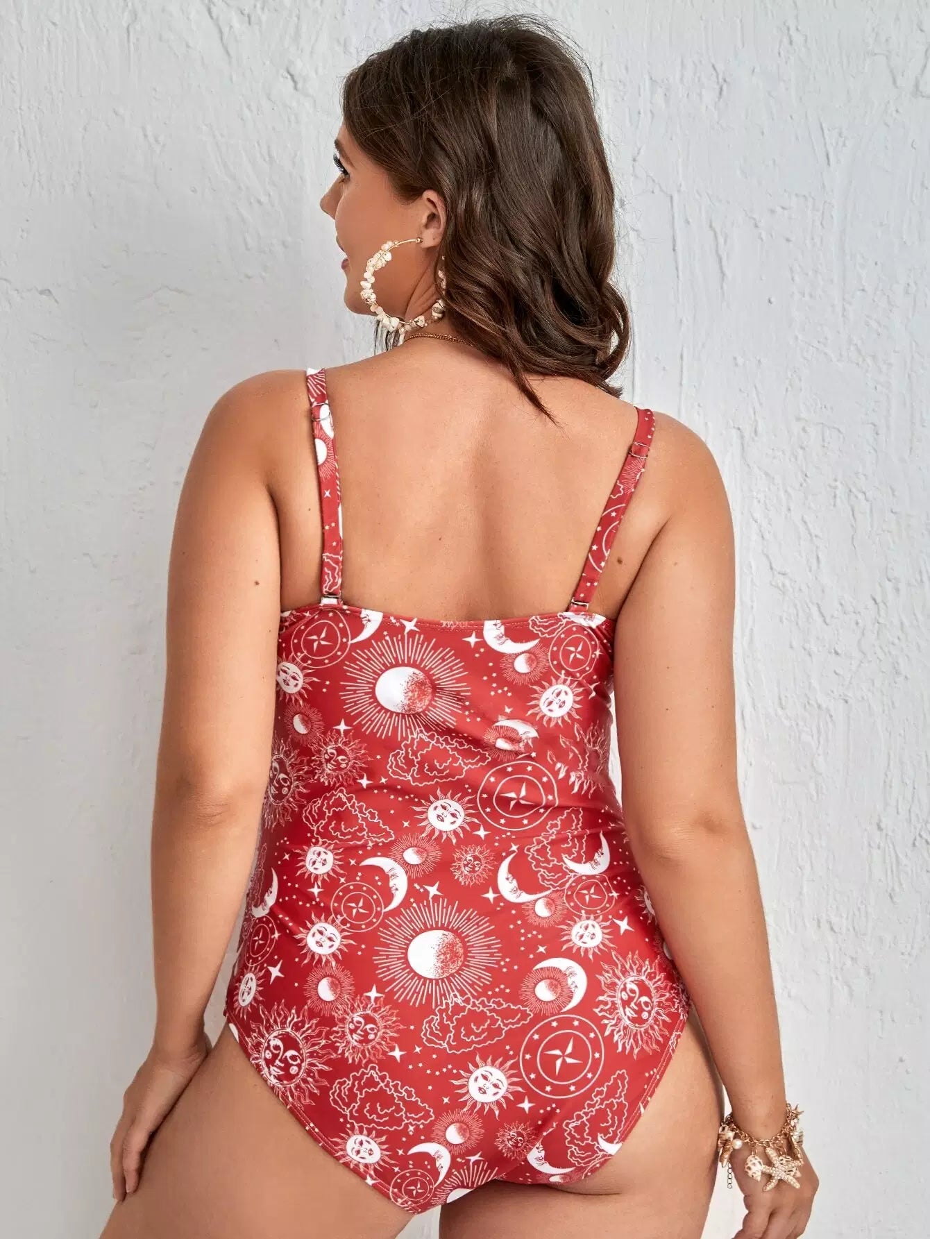 Plus Sun & Moon Print Cut-out One Piece Swimsuit
