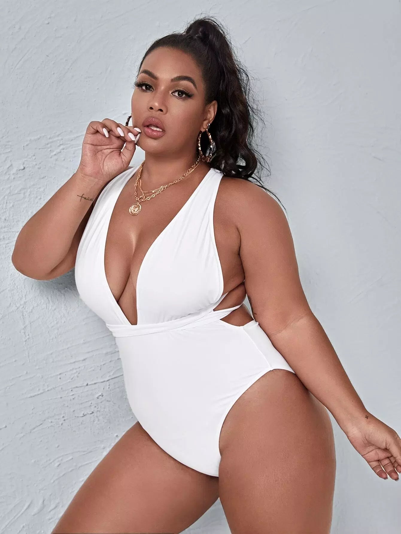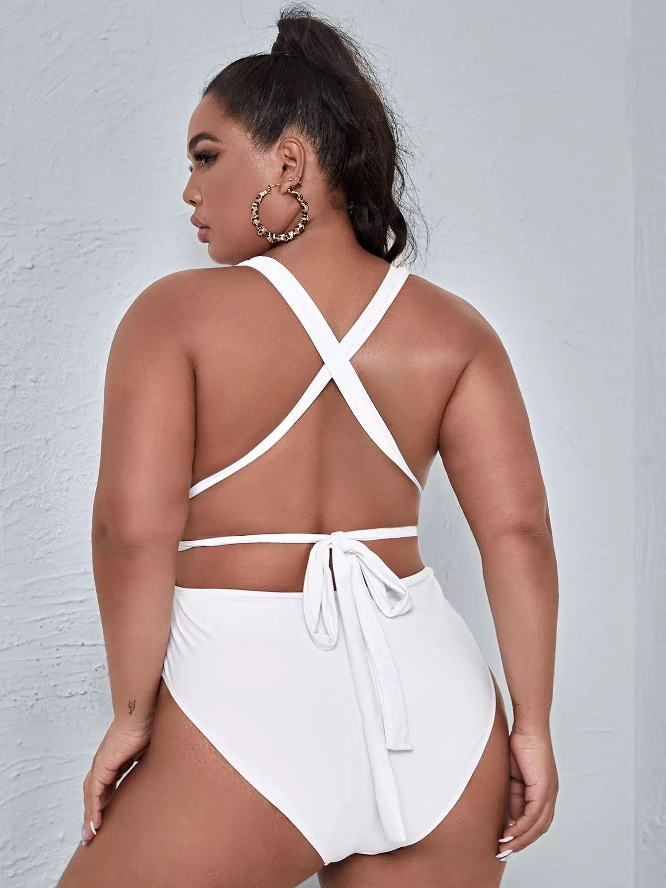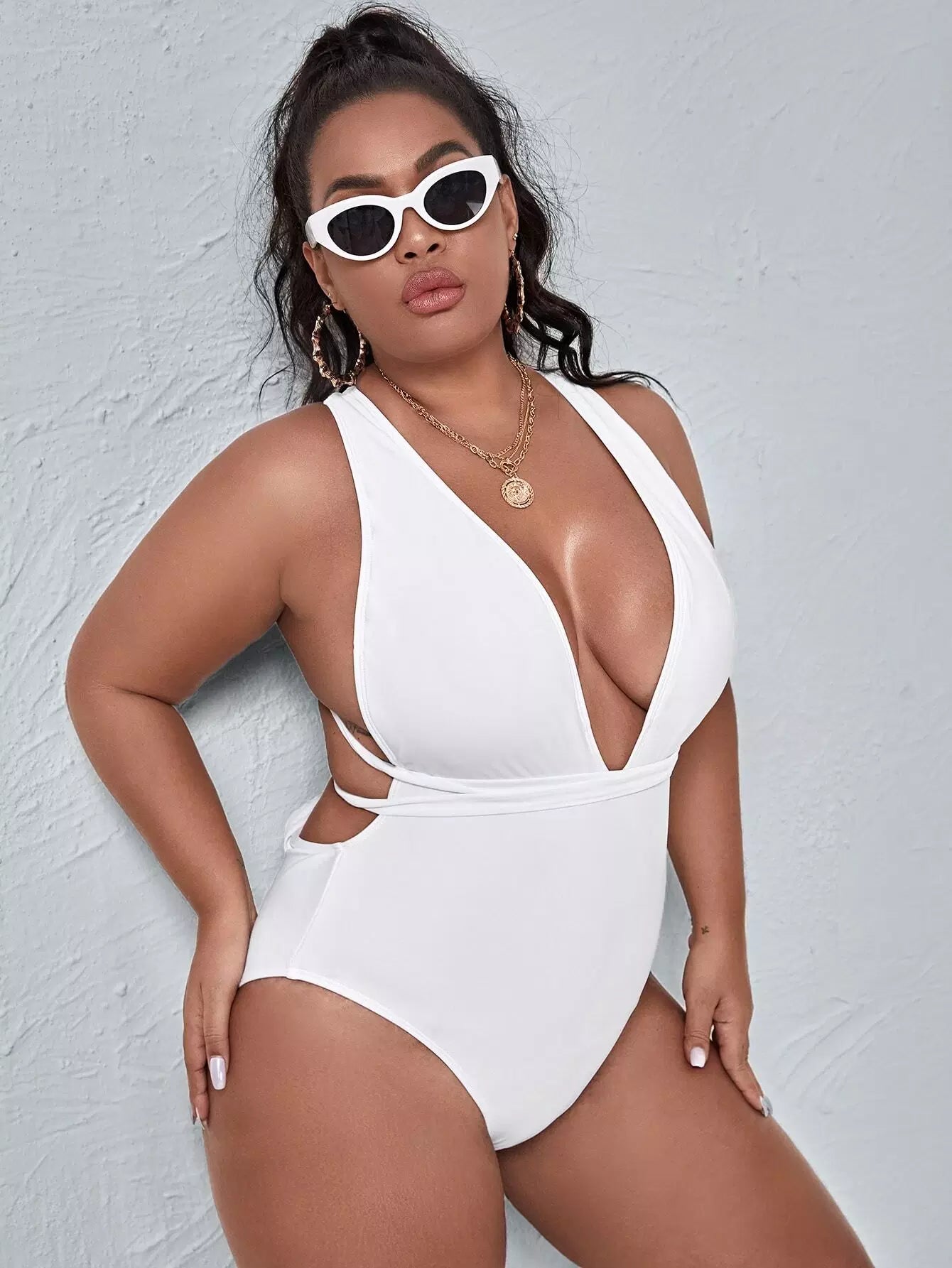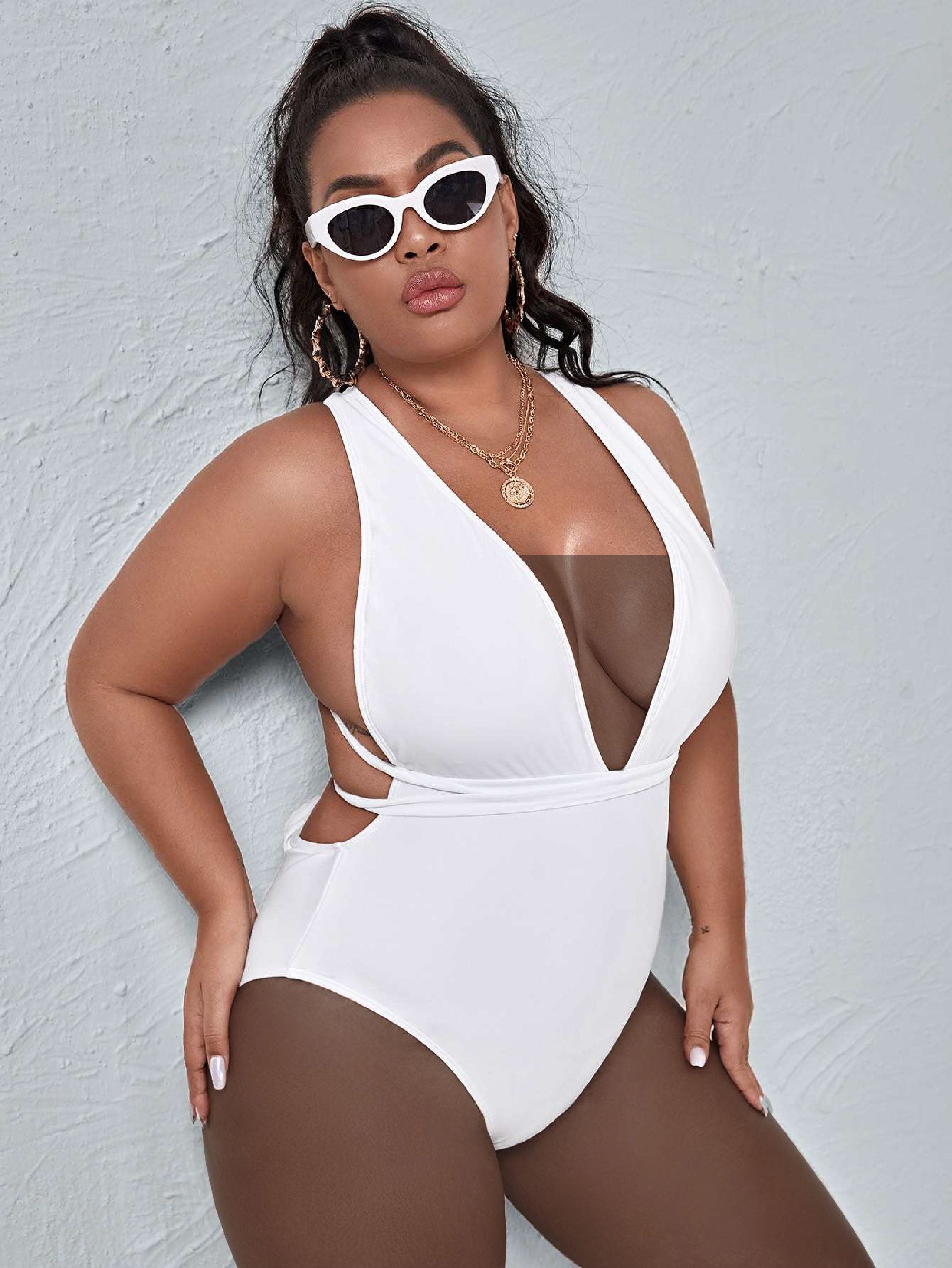 Plus Tie Back Plunging One Piece Swimsuit