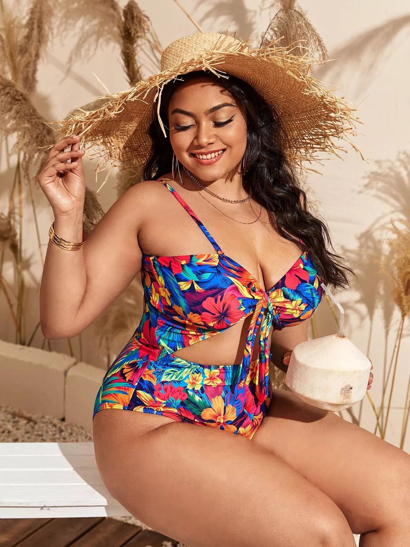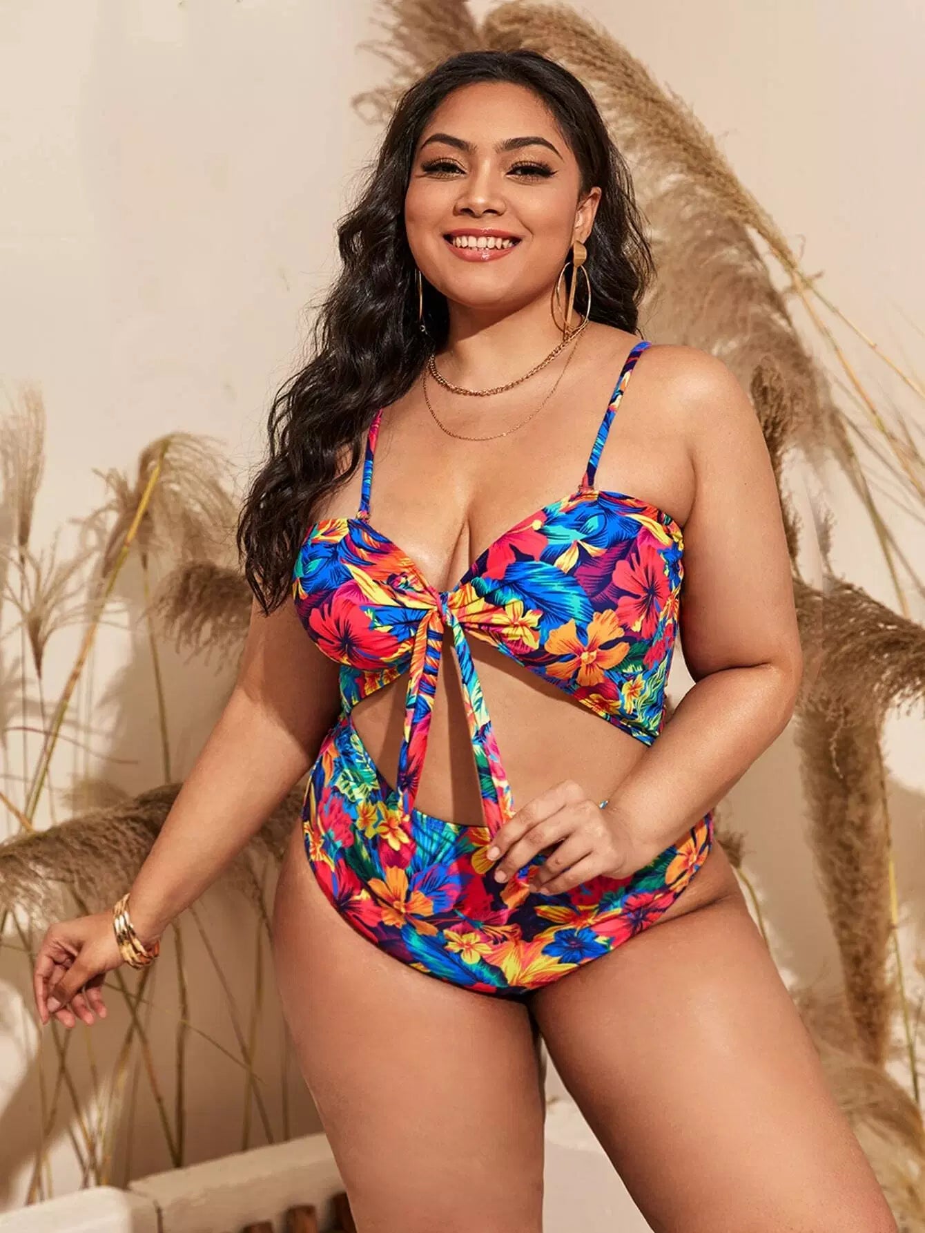 Women - Plus Tropical Knot Front One Piece Swimsuit