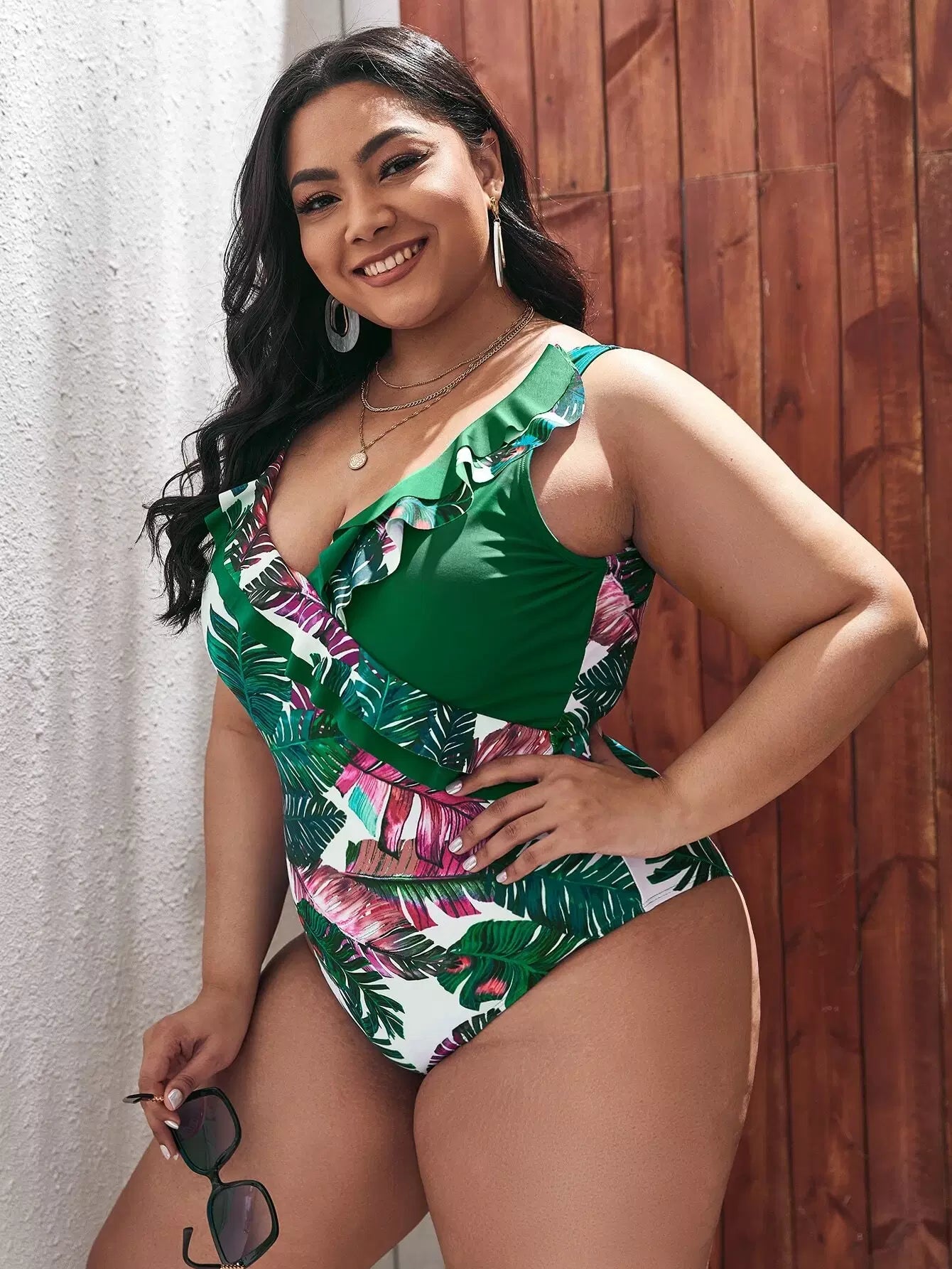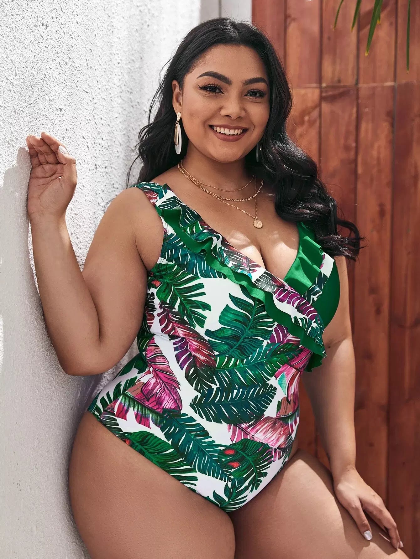 Plus Tropical Print Ruffle One Piece Swimsuit