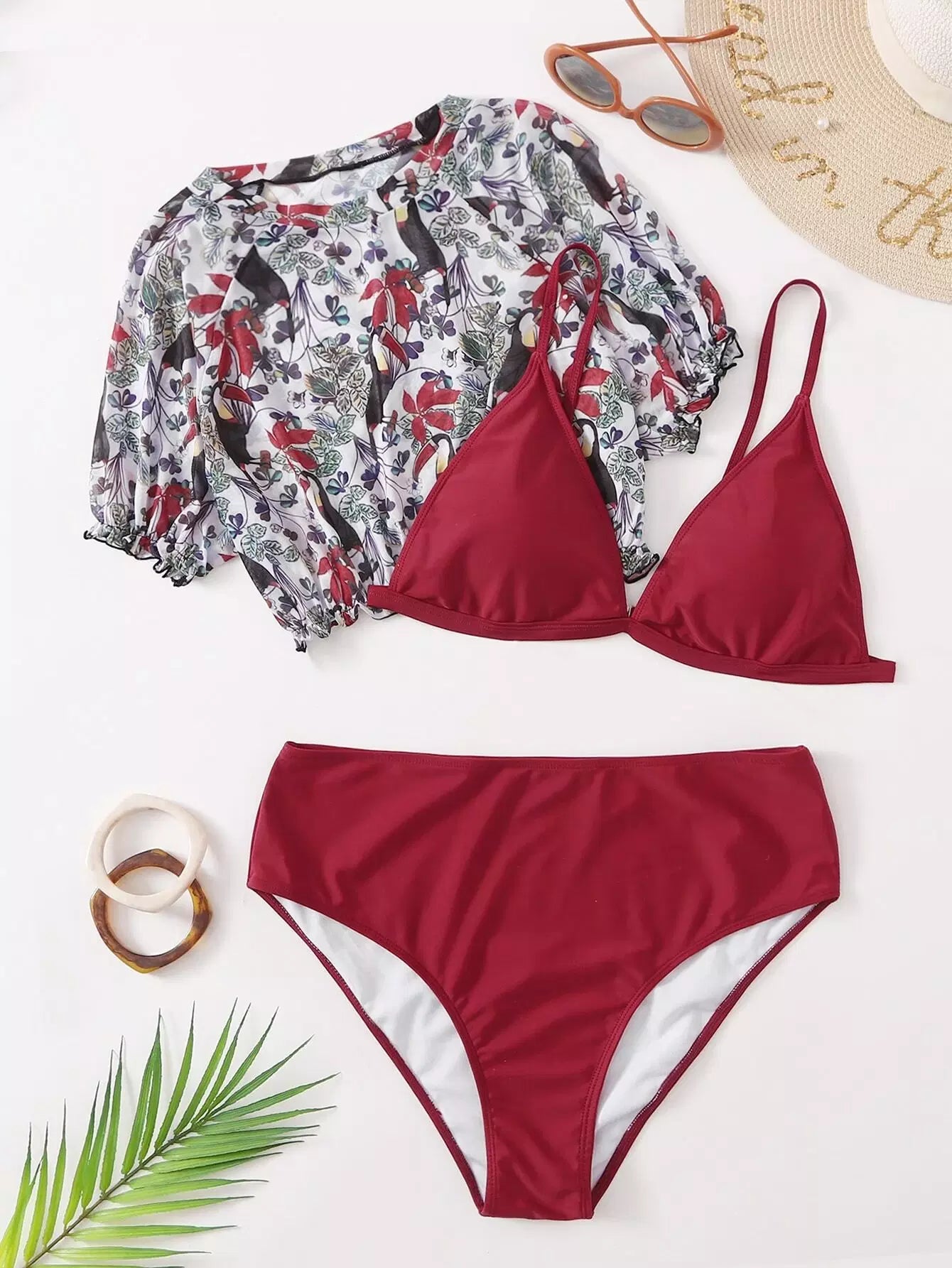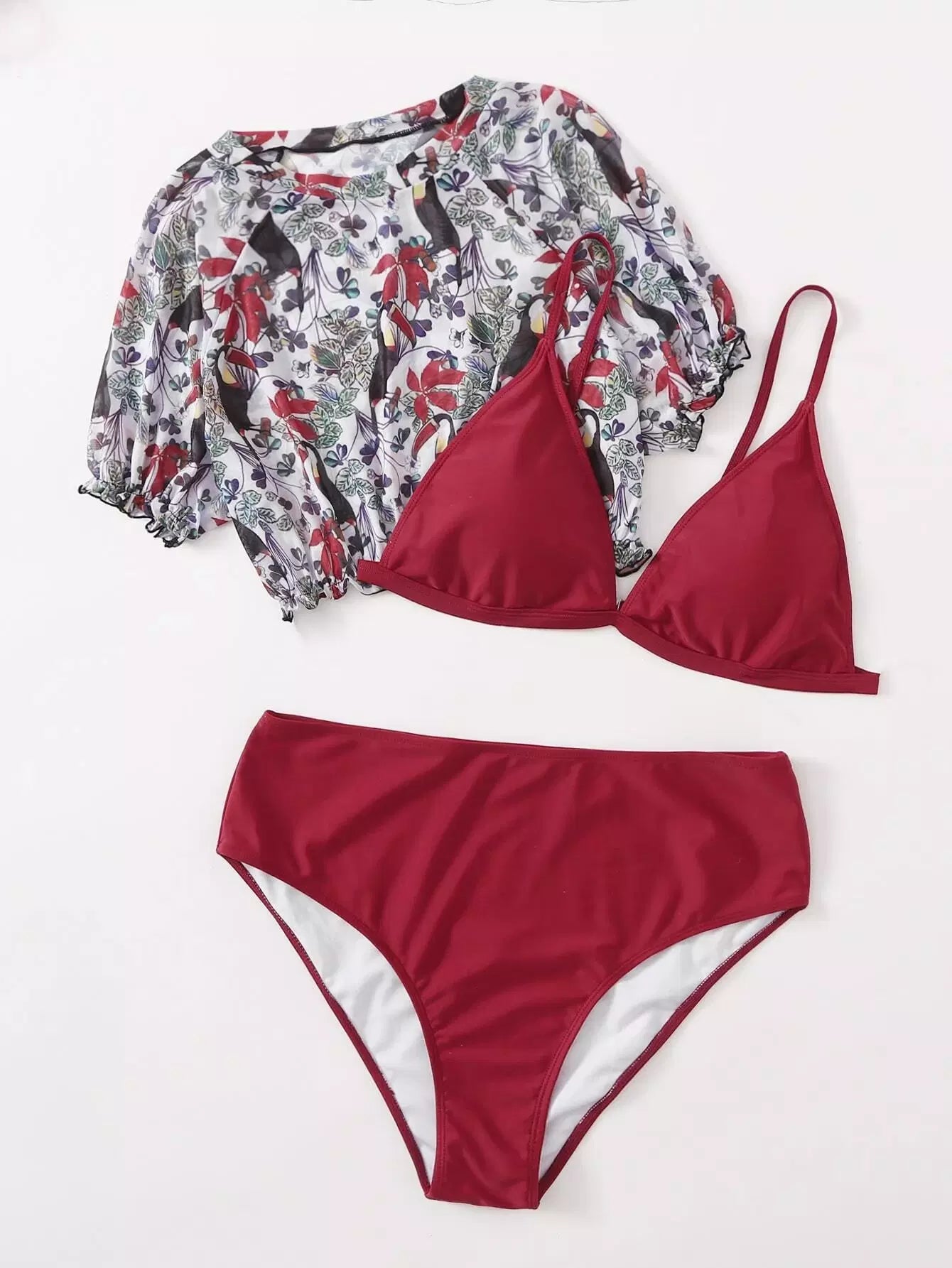 3pack Plus Triangle Bikini Swimsuit & Cover Up