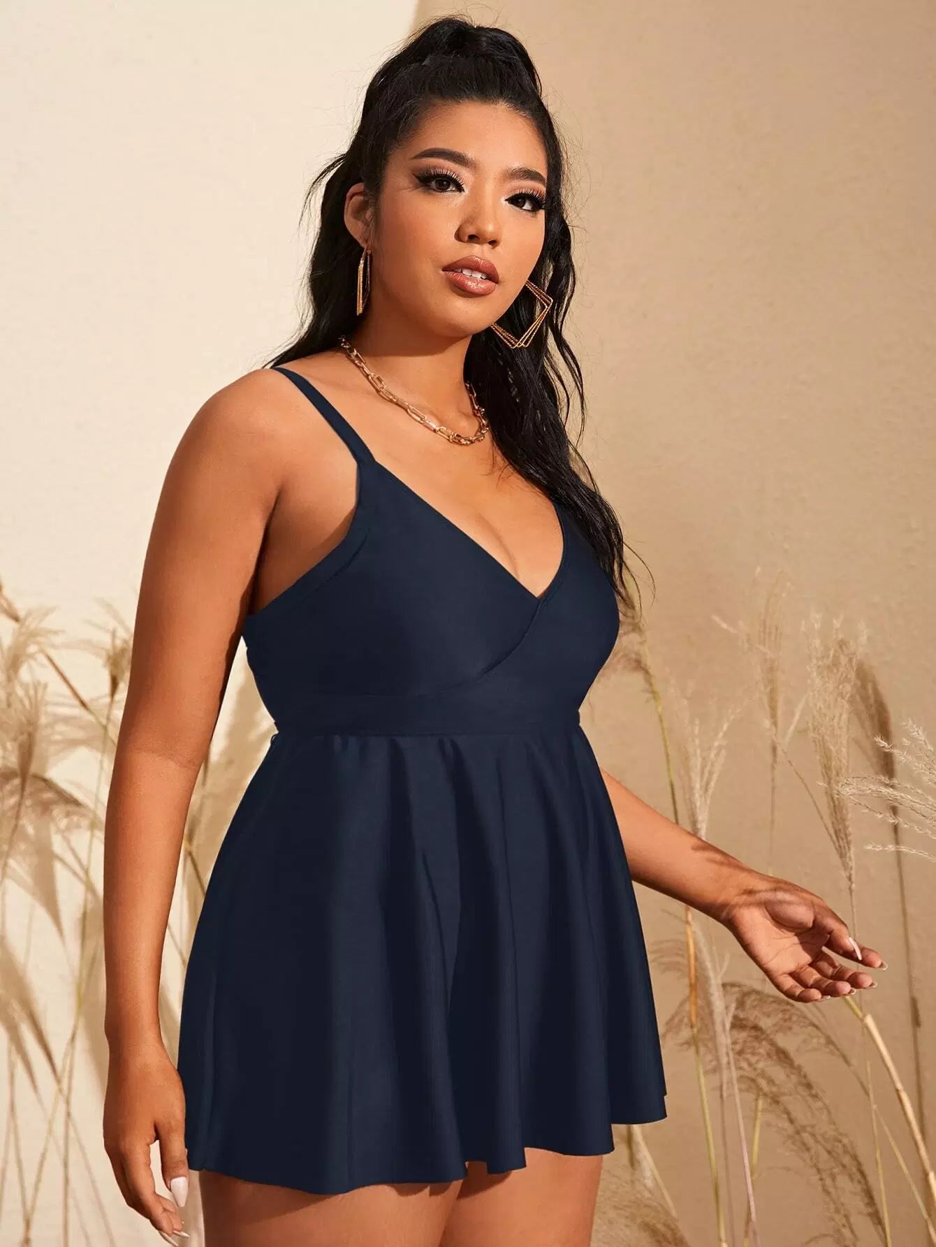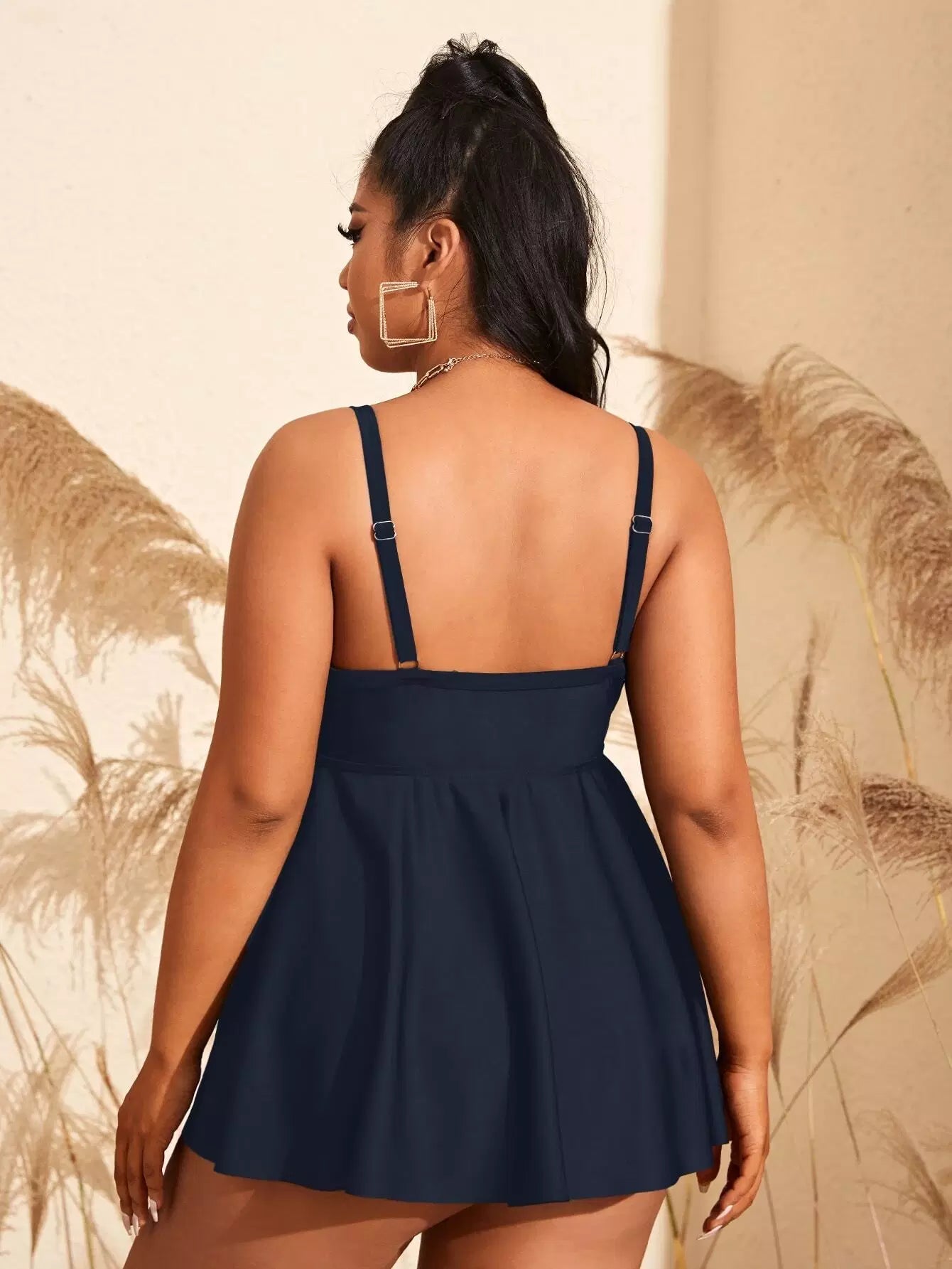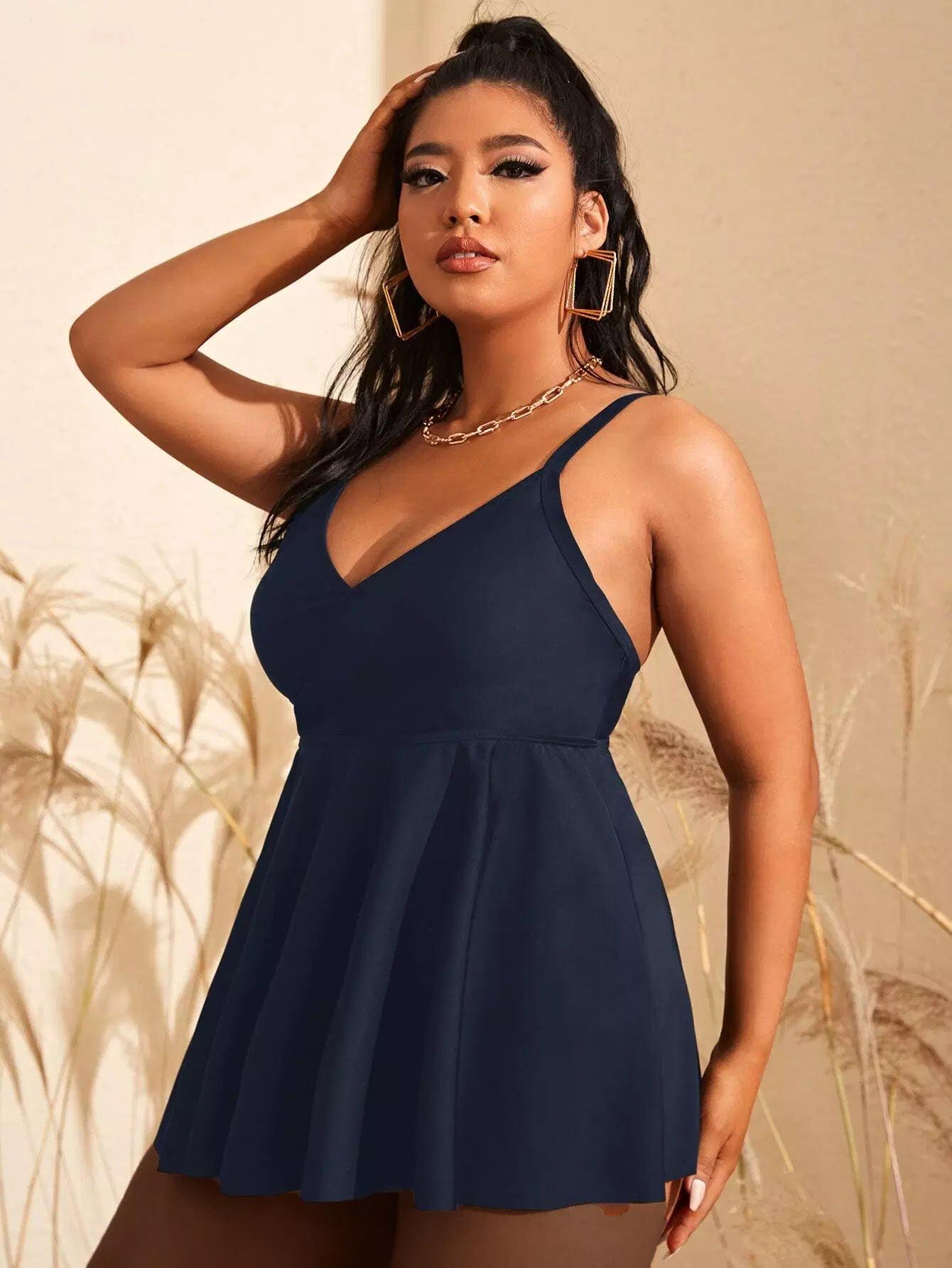 Plus Plain Swim Dress With Panty