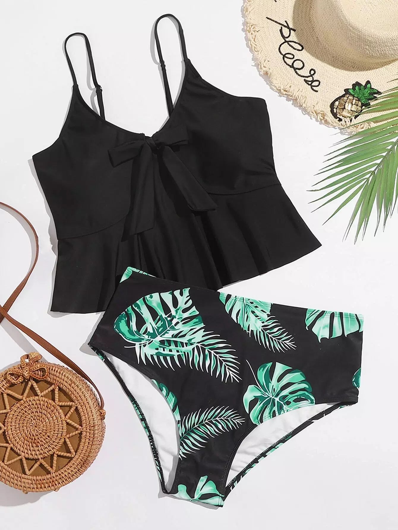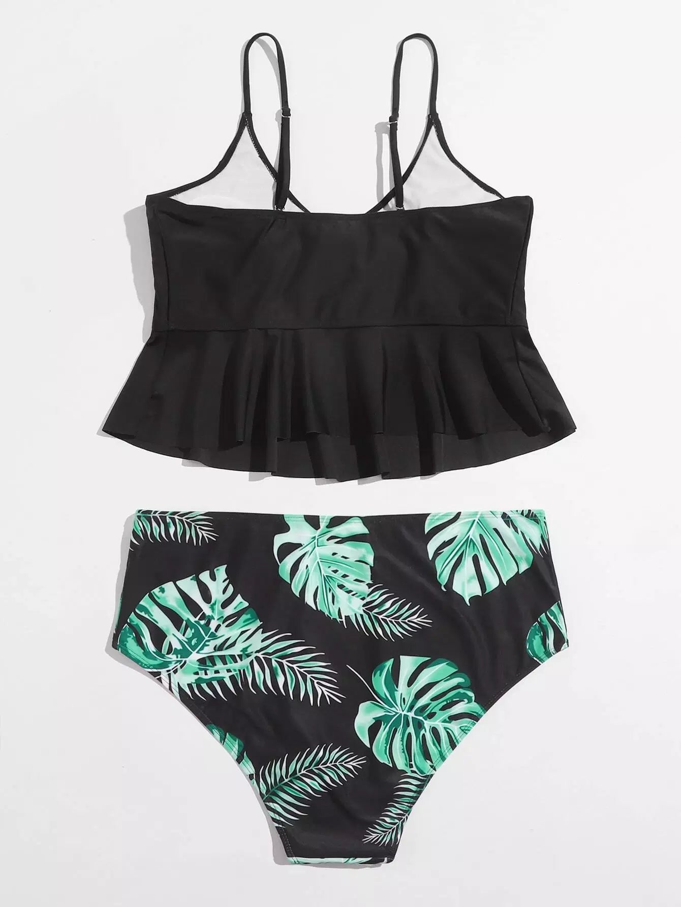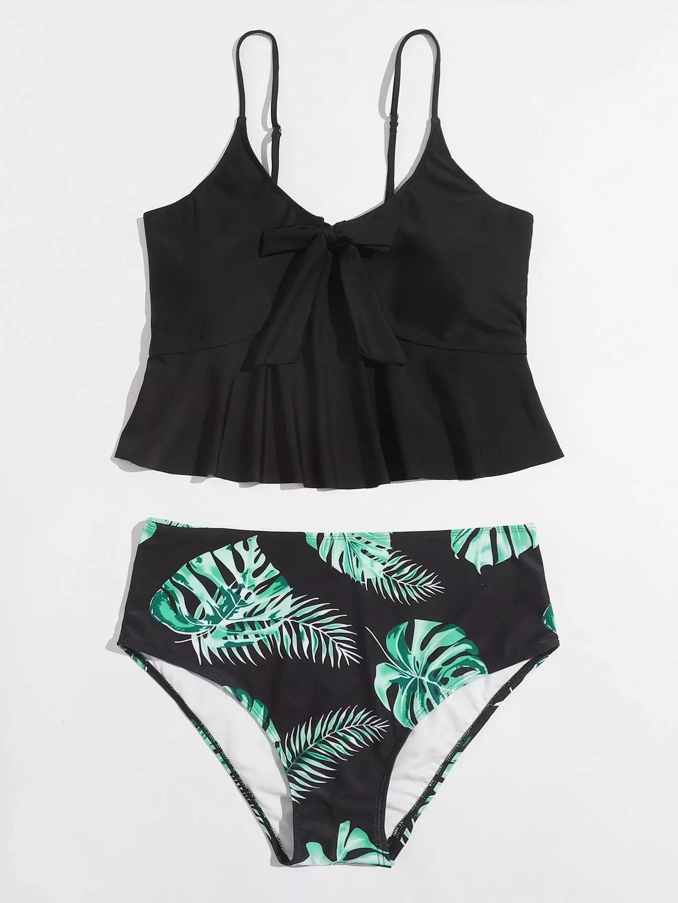 Plus Tropical Ruffle Hem Knot Bikini Swimsuit
