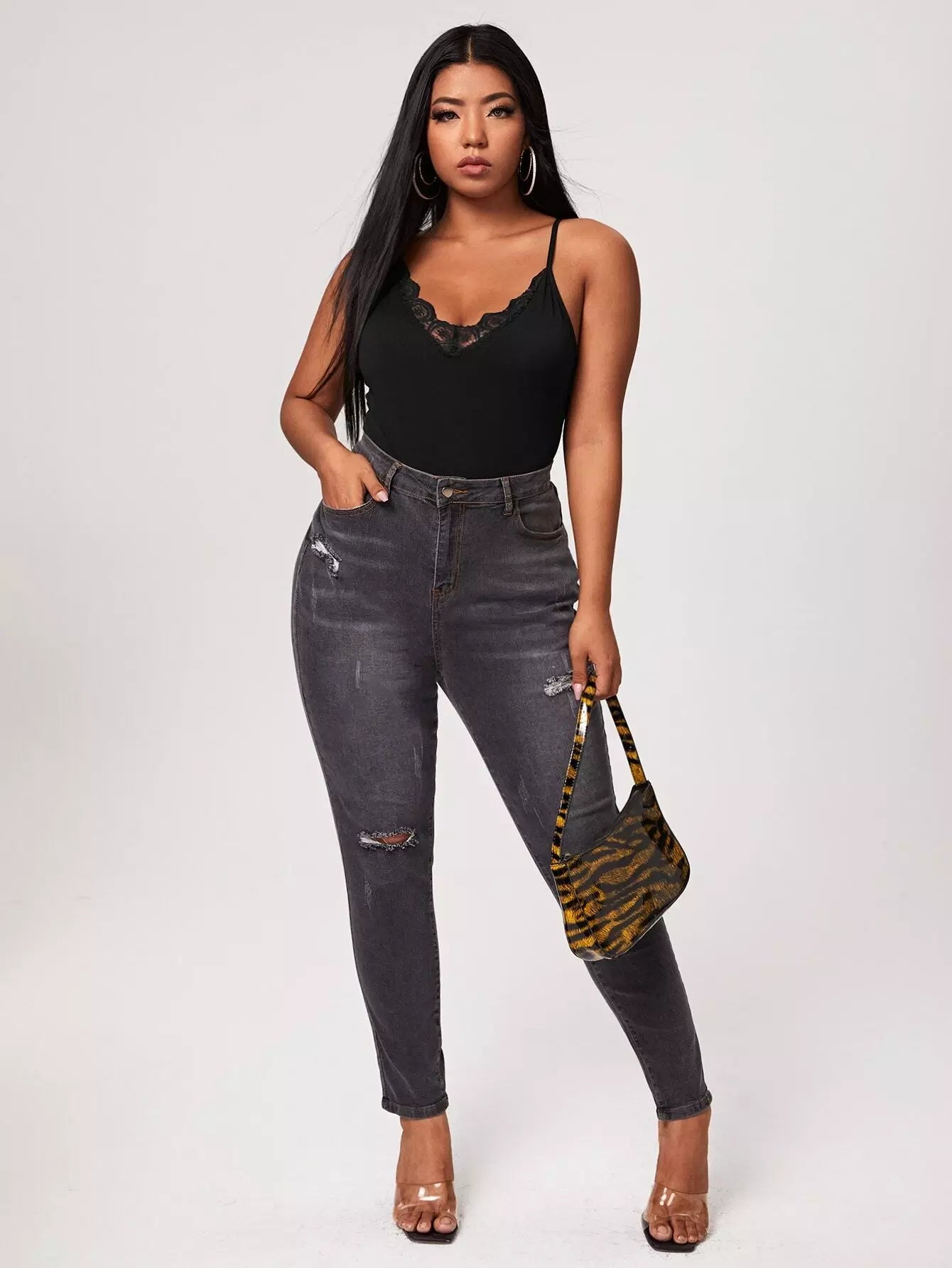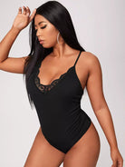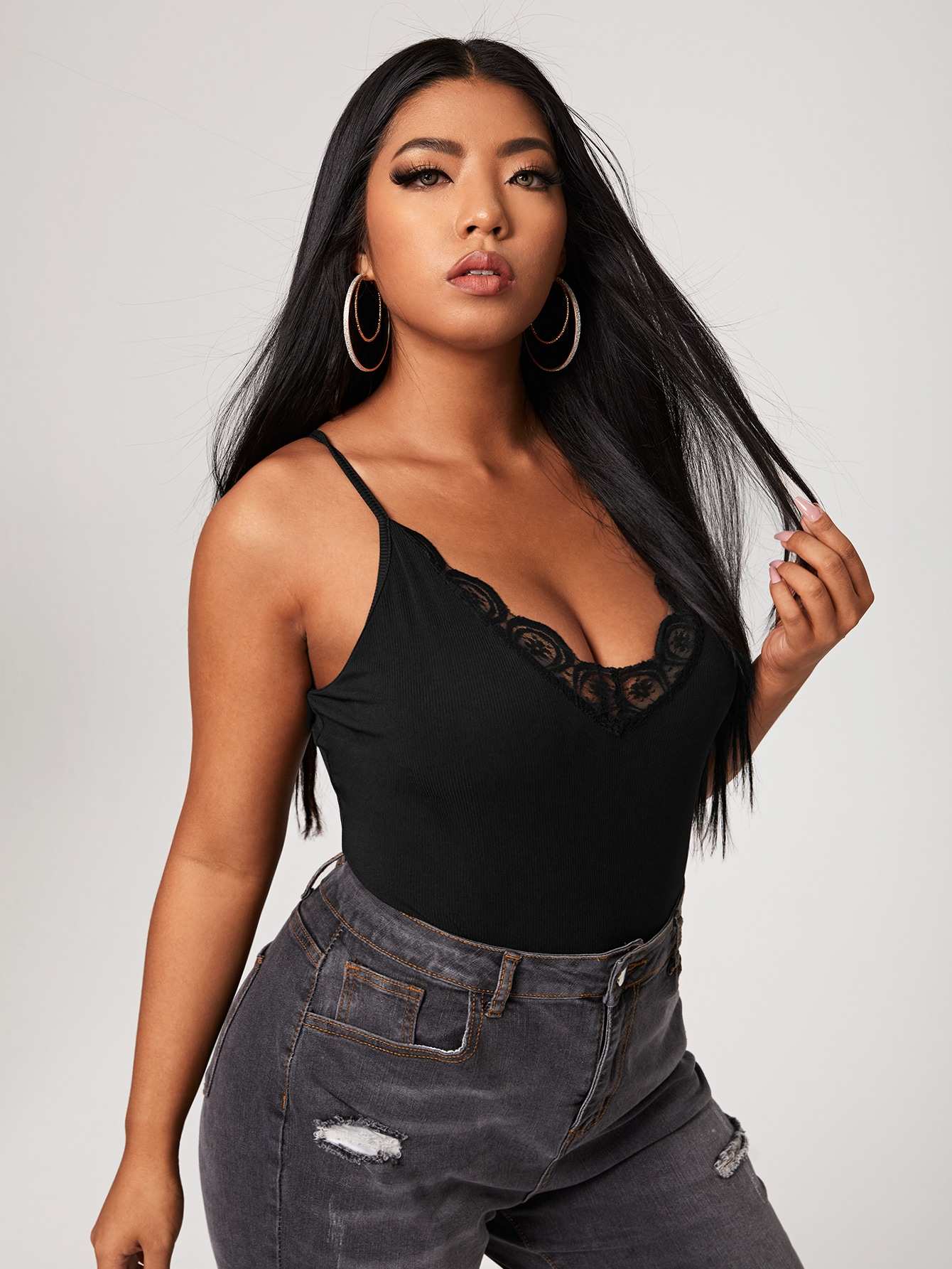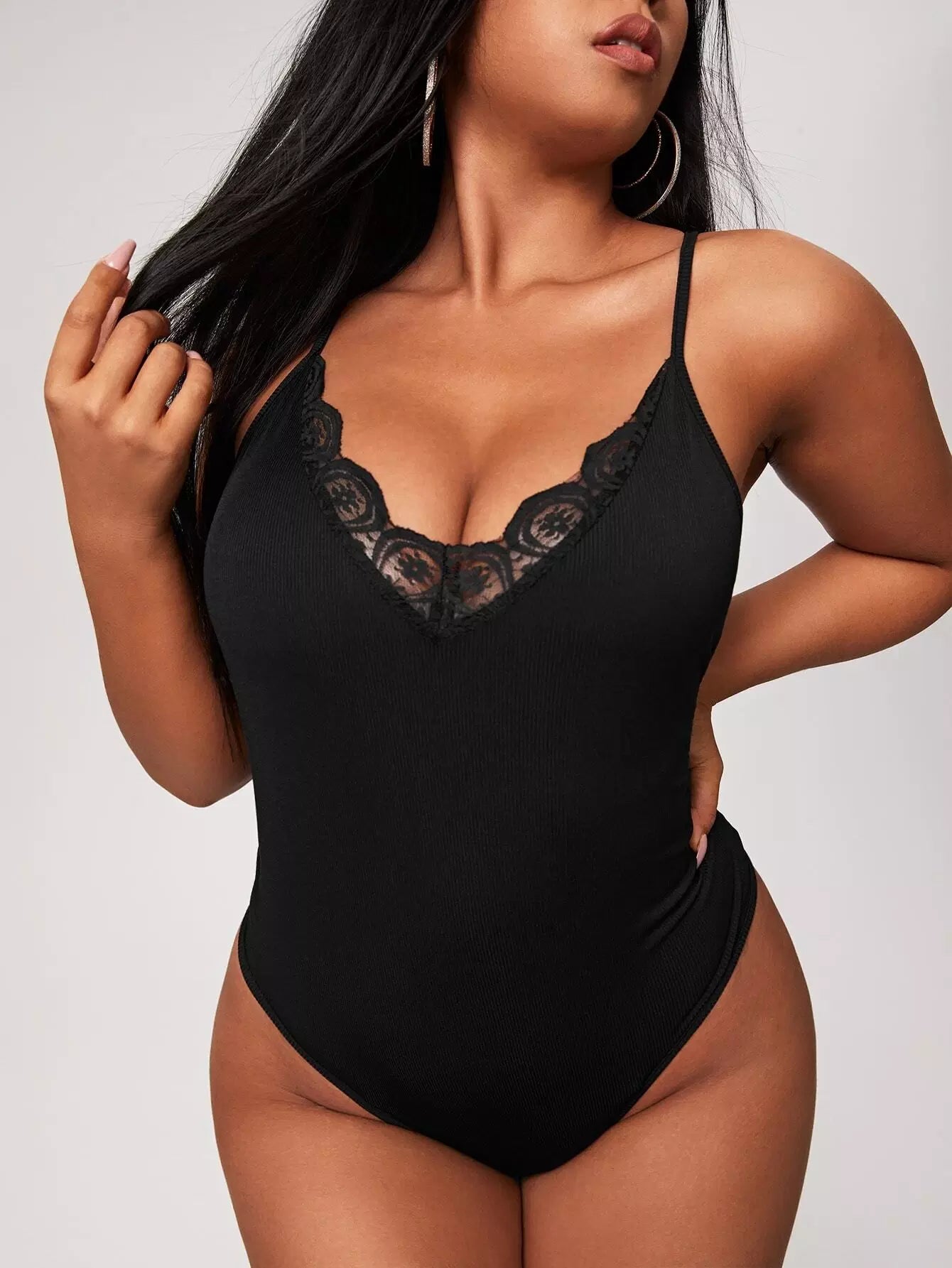 Plus Contrast Lace Slim Fit Cami Bodysuit