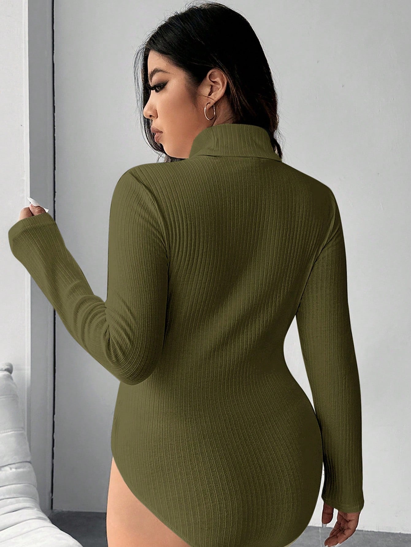 women SHEIN Tall CURVE Plus Size Casual Solid High Neck Bodysuit