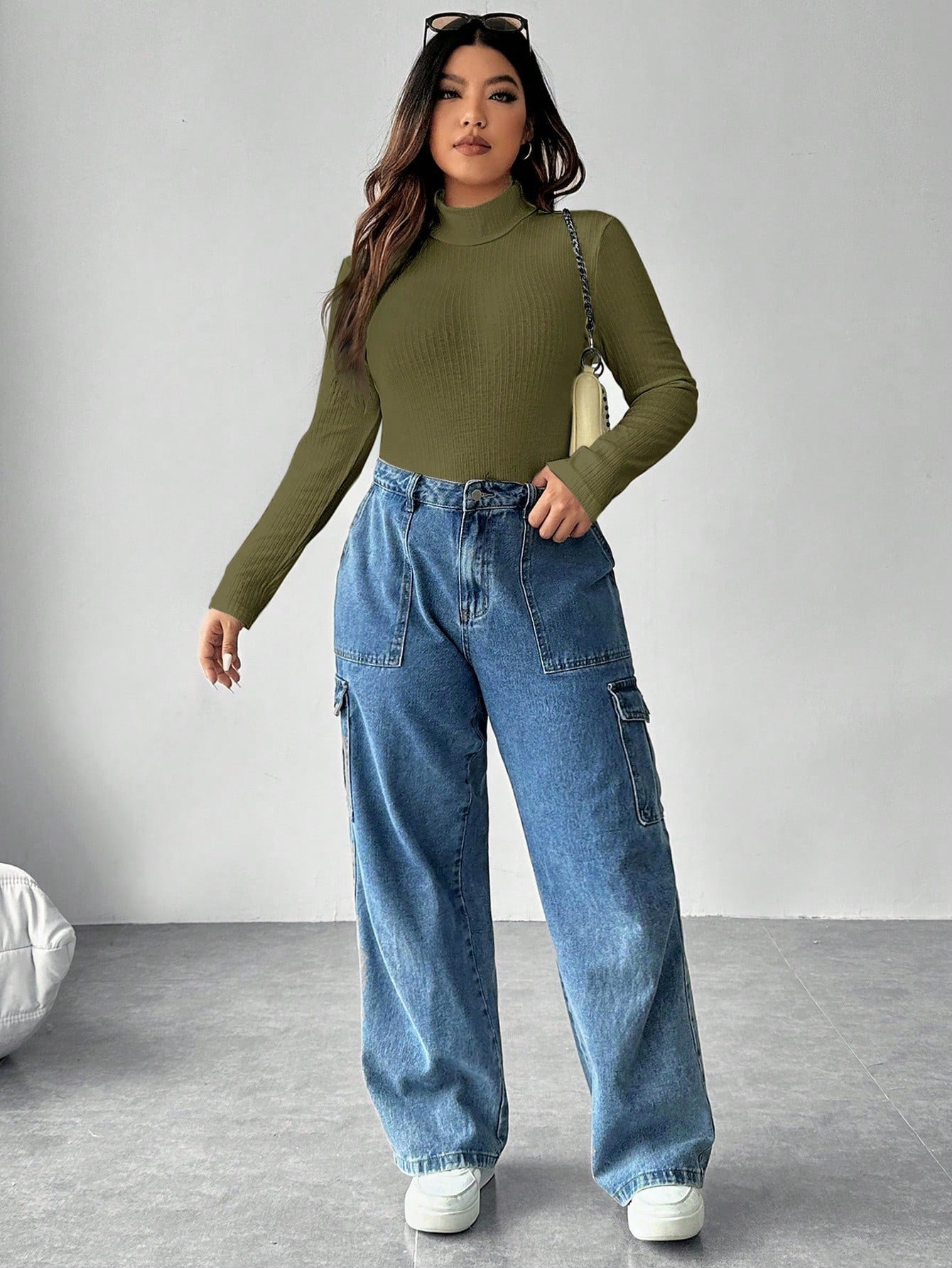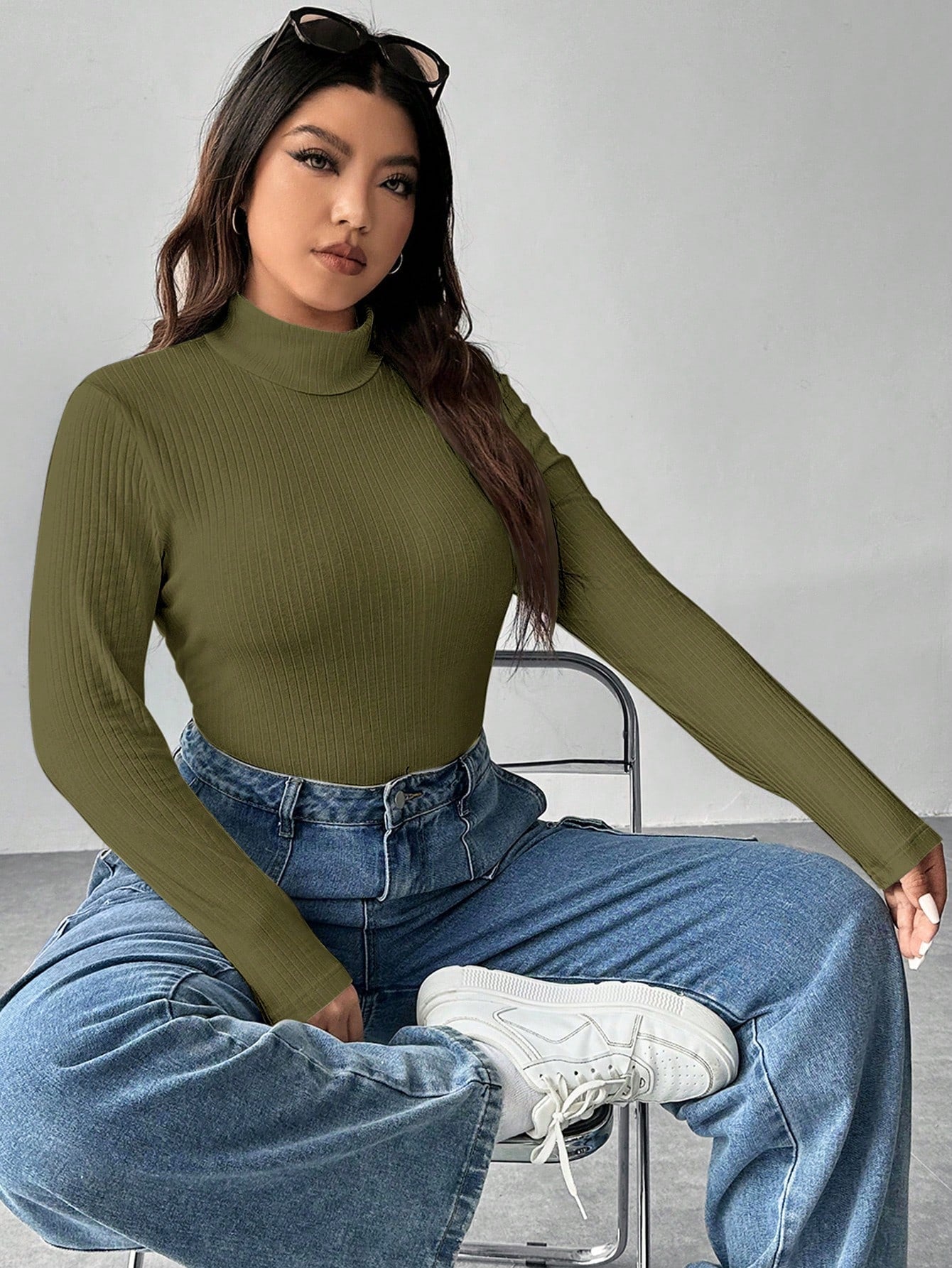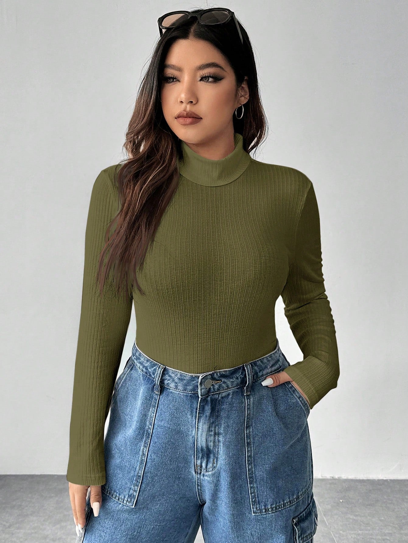 SHEIN Tall CURVE Plus Size Casual Solid High Neck Bodysuit
