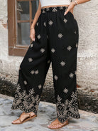 Clasi Plus Size Casual Holiday Foot Positioning Flower Cotton Embroidered Wide-Leg Pants Loose Pants,Vacation