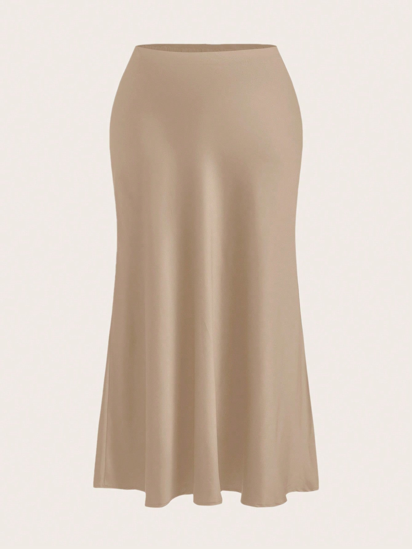 Firerie Plus Size Elegant Loose-Fit Black Summer Midi Skirt For Women, Suitable For Leisure, Afternoon