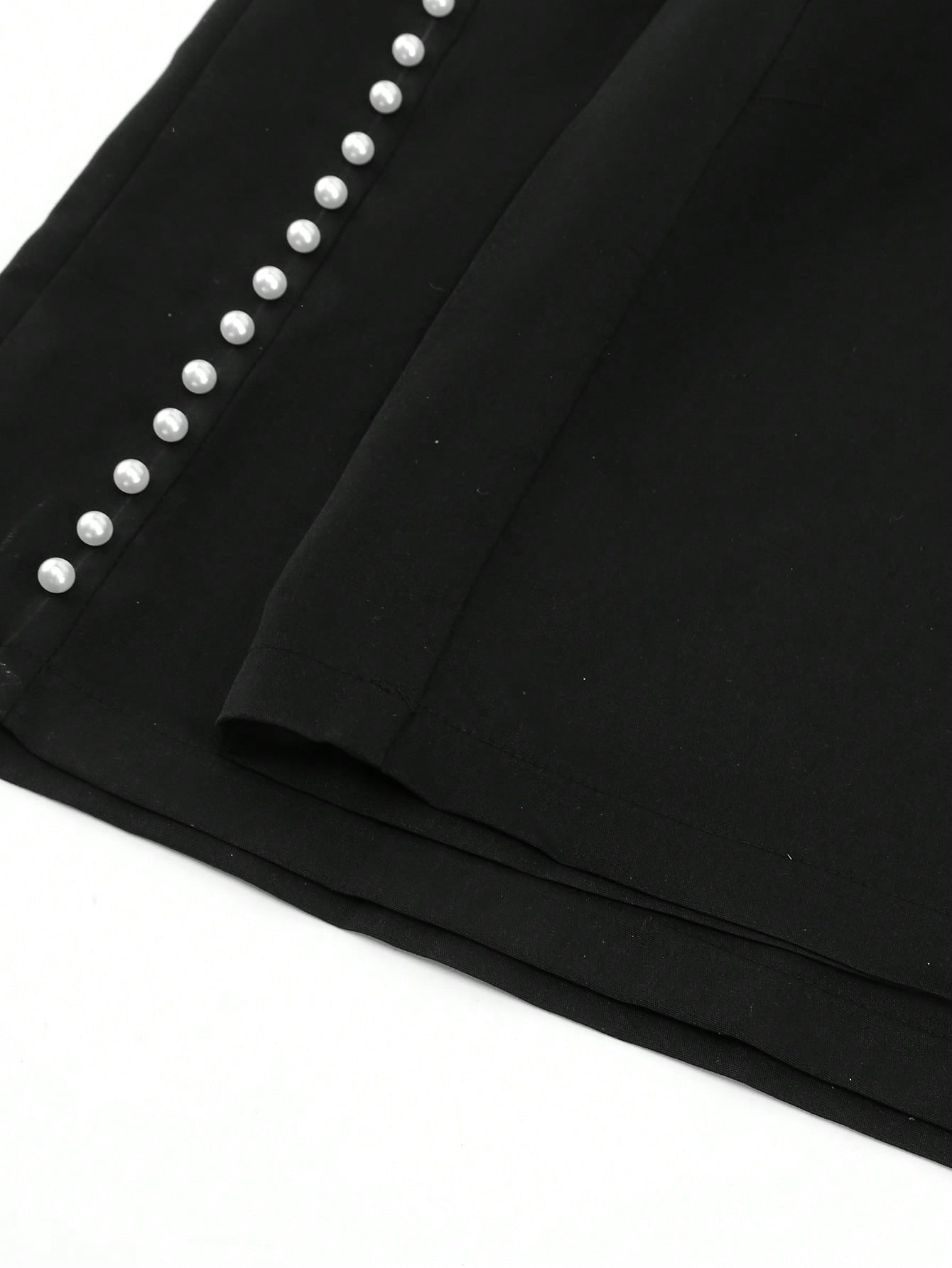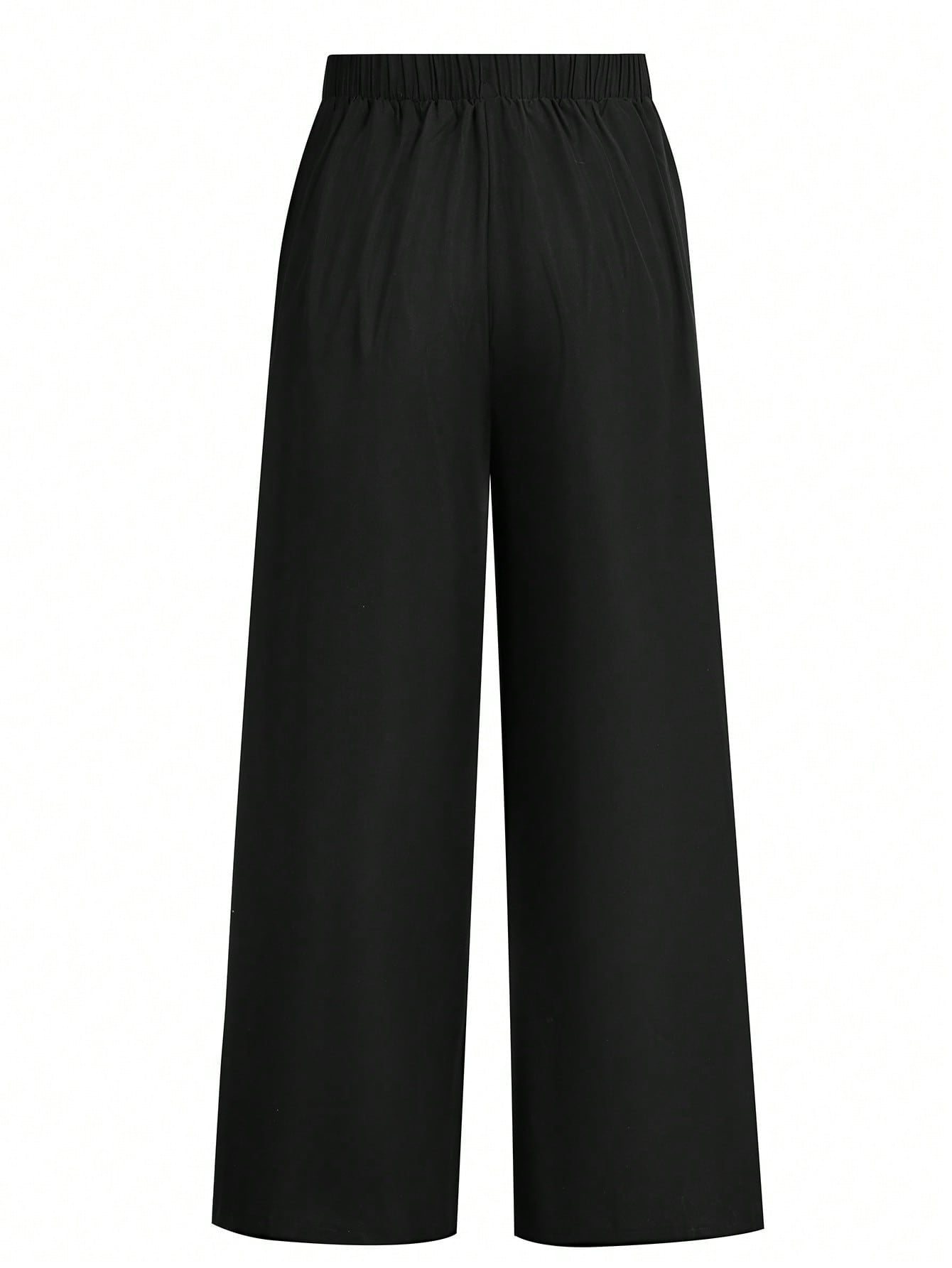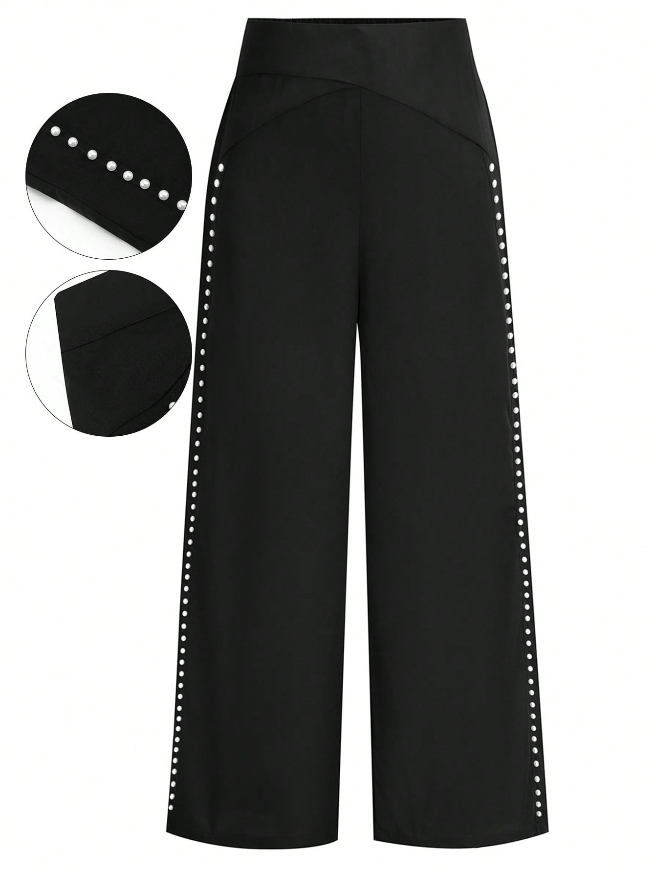 Lacomfia Plus Size Women Wide Leg Loose Pearl Top Elegant Long Pants