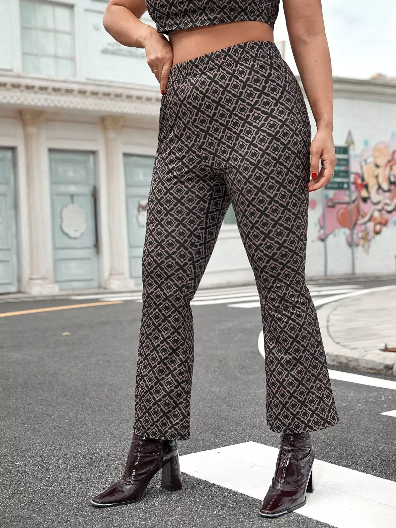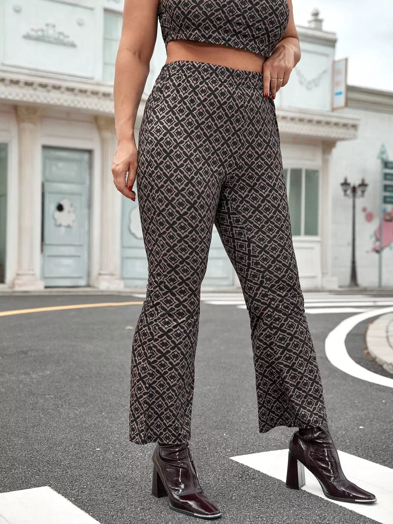 Plus Allover Print Flare Leg Pants