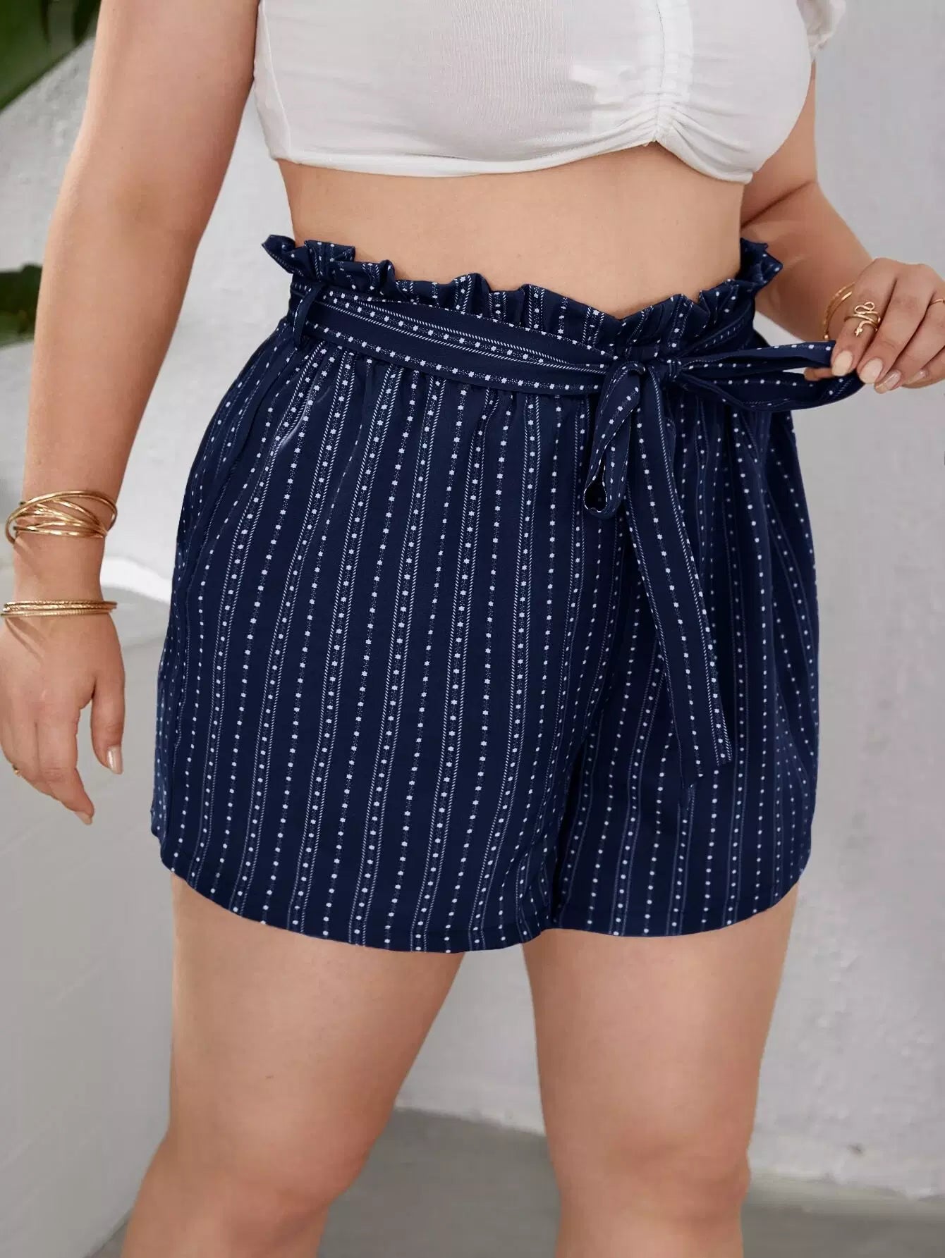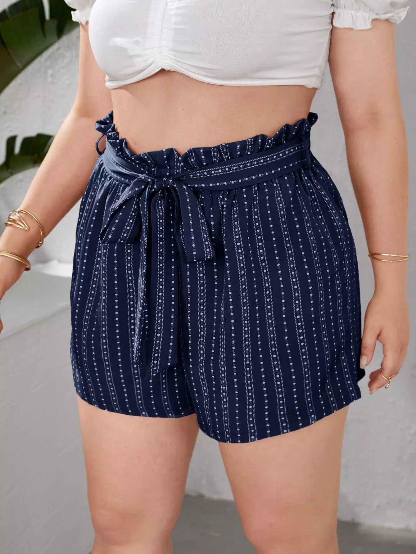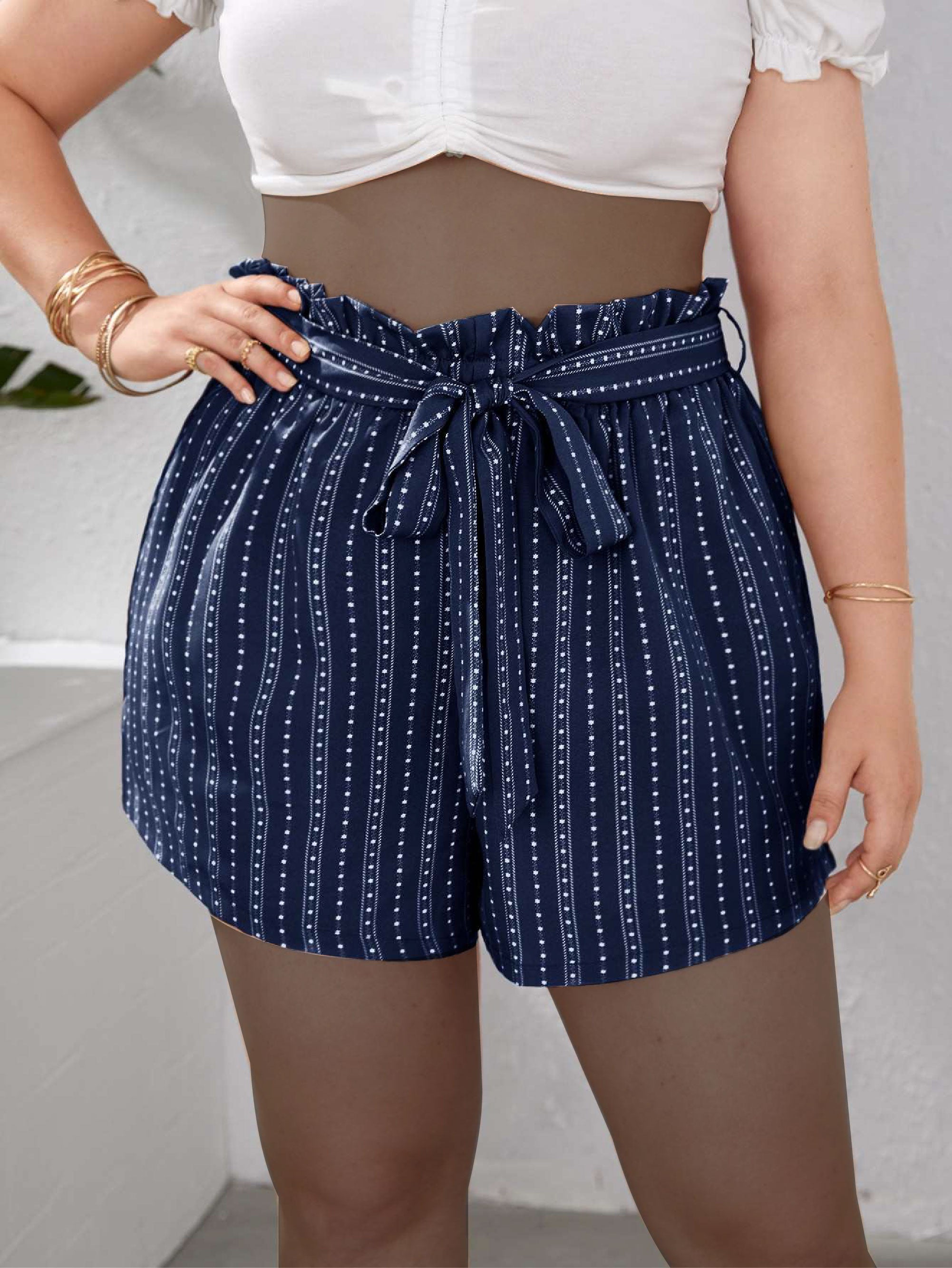 Plus Ditsy Floral Paperbag Waist Shorts Without Belt