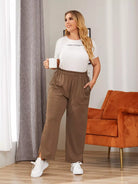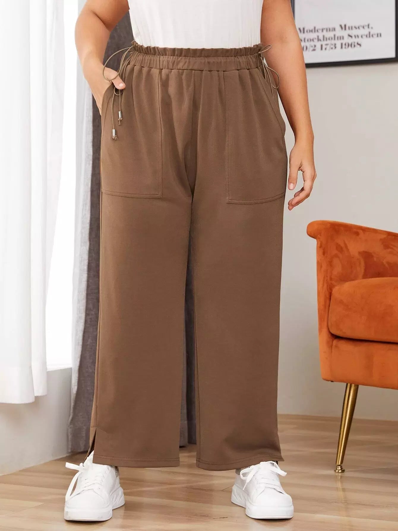 Plus Drawstring Paperbag Waist Slant Pockets Slit Hem Pants