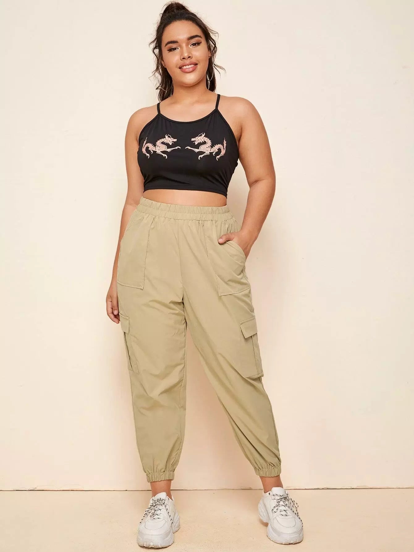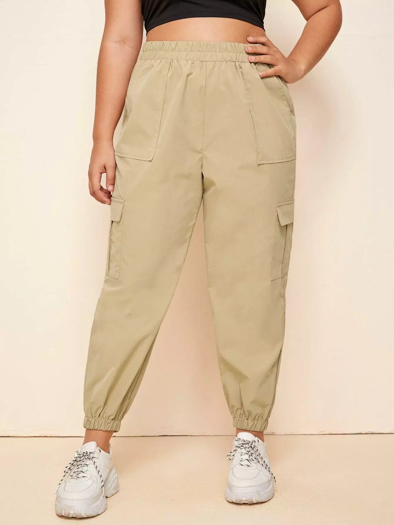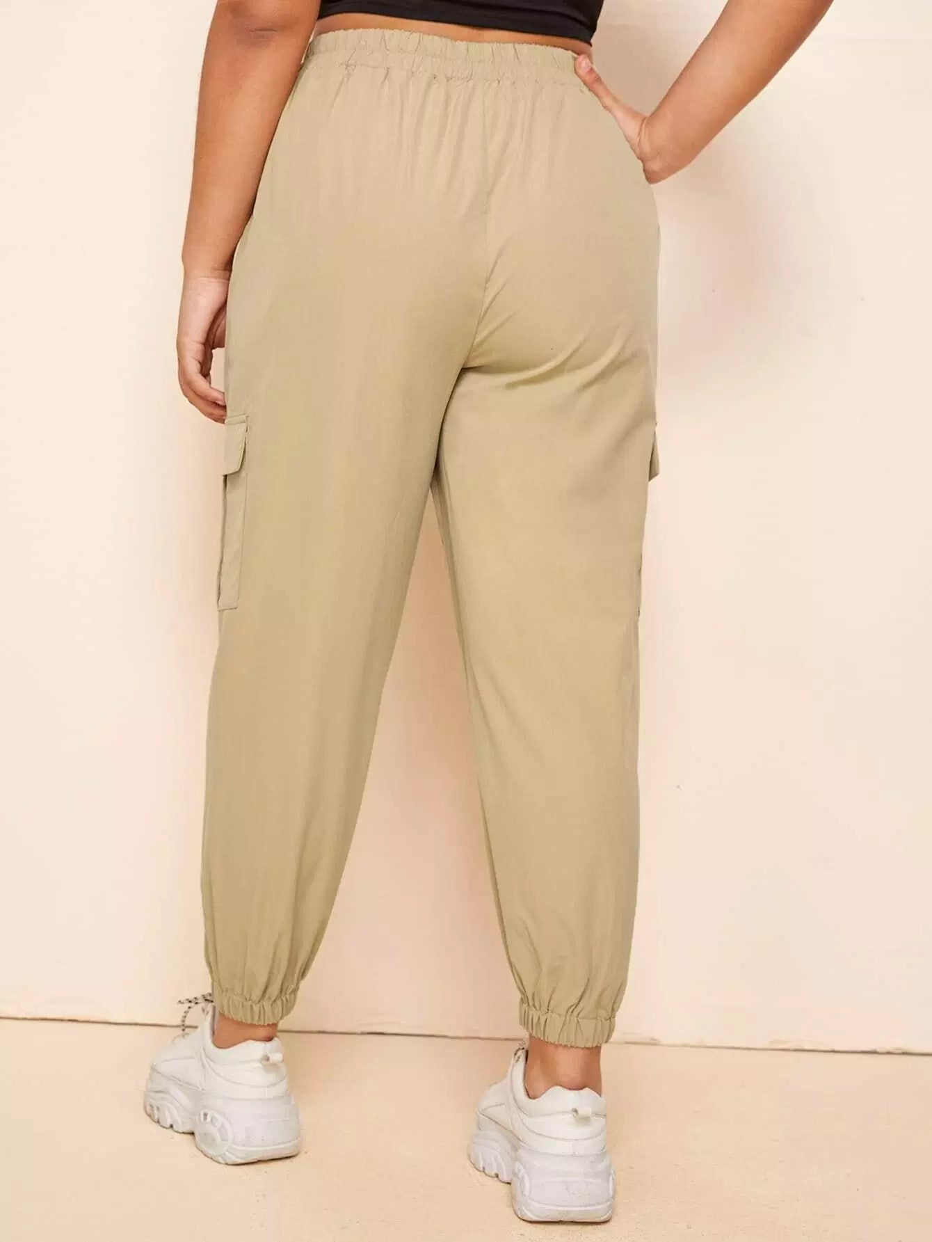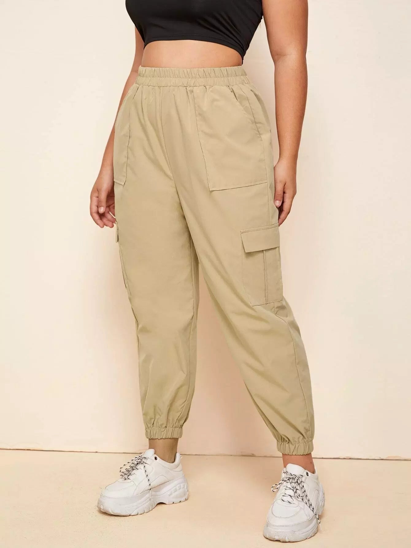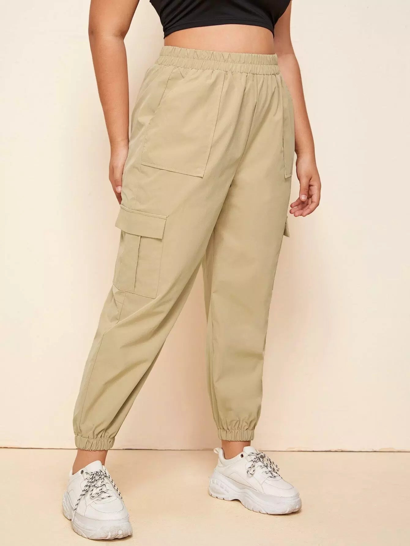 Plus Elastic Waist Flap Pocket Cargo Pants