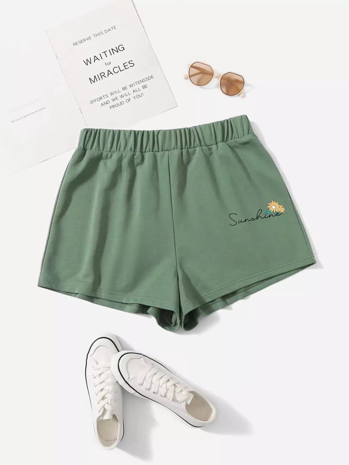 Plus Letter & Floral Print Shorts